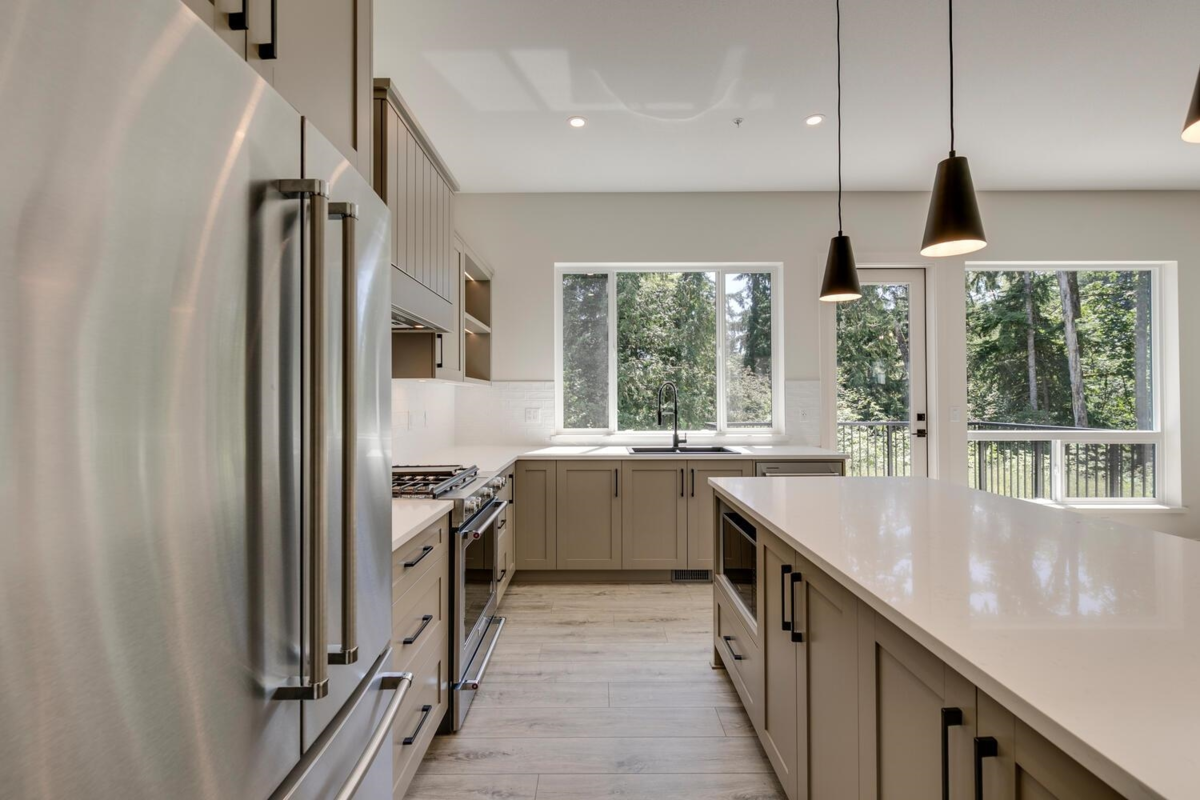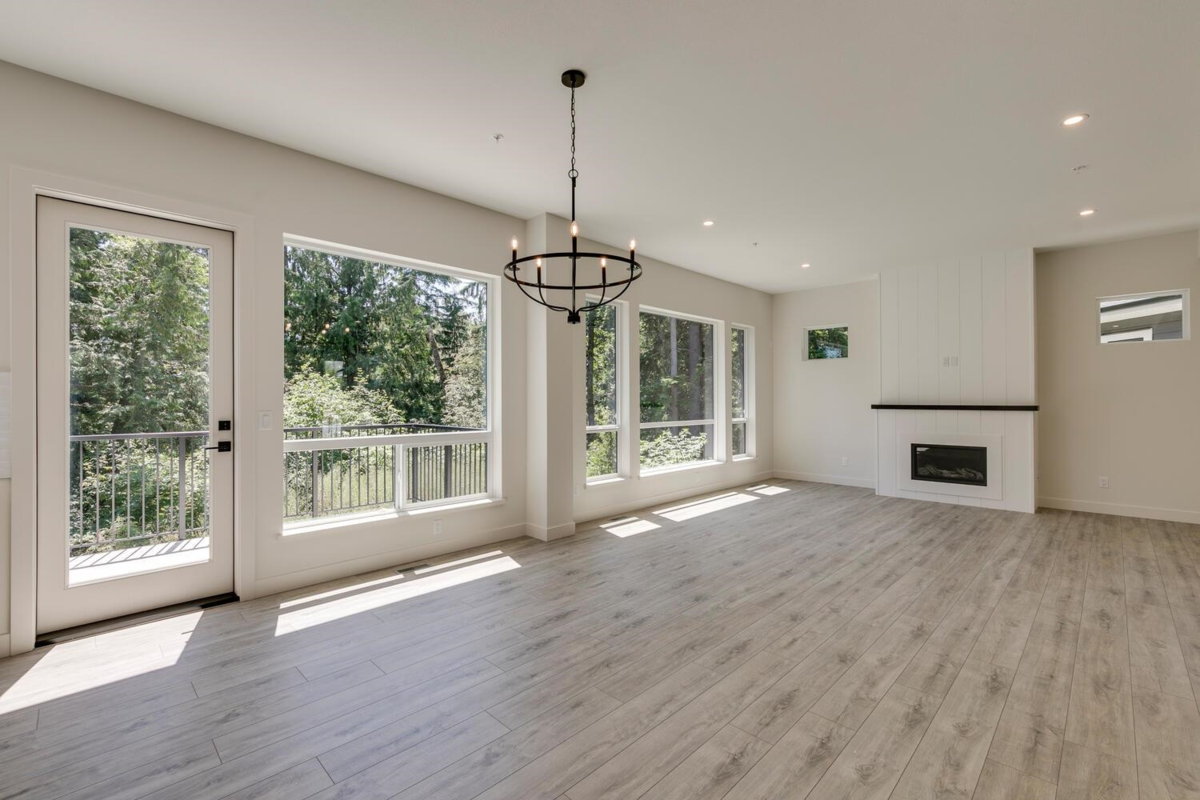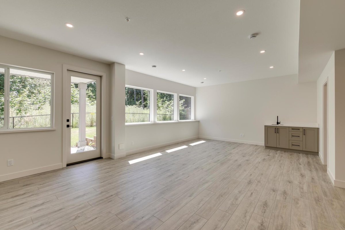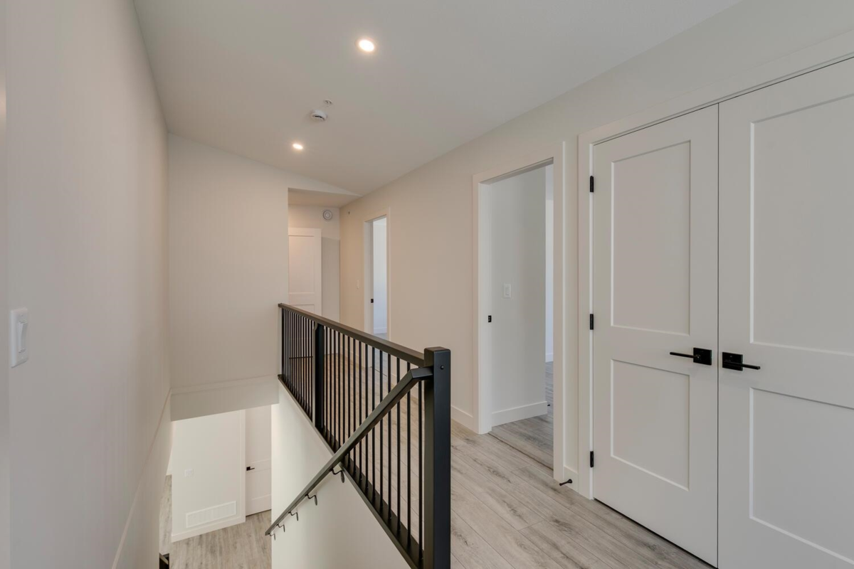Step into luxury living at Nelson & Grove, where this beautifully crafted 6-bedroom, 4-bathroom home blends comfort, elegance, and function. Nestled at the end of a quiet cul-de-sac on a rare pie-shaped lot, it backs onto a tranquil greenbelt—offering privacy and peaceful views. Inside, vaulted ceilings, wide plank floors, quartz surfaces, and sleek tile define the space. The chef’s kitchen features stainless steel appliances, custom cabinetry, and a large quartz island. Expansive windows flood the home with natural light. Upstairs includes four bedrooms, including a serene primary suite with a spa-style 5-piece ensuite, walk-in shower, heated floors, and generous closet. The bright, walk-out basement offers two more bedrooms, a full bath, and a wet bar—perfect for entertaining!