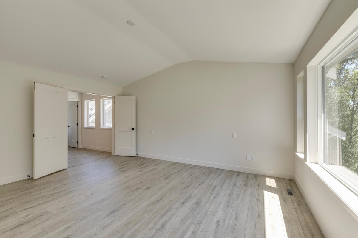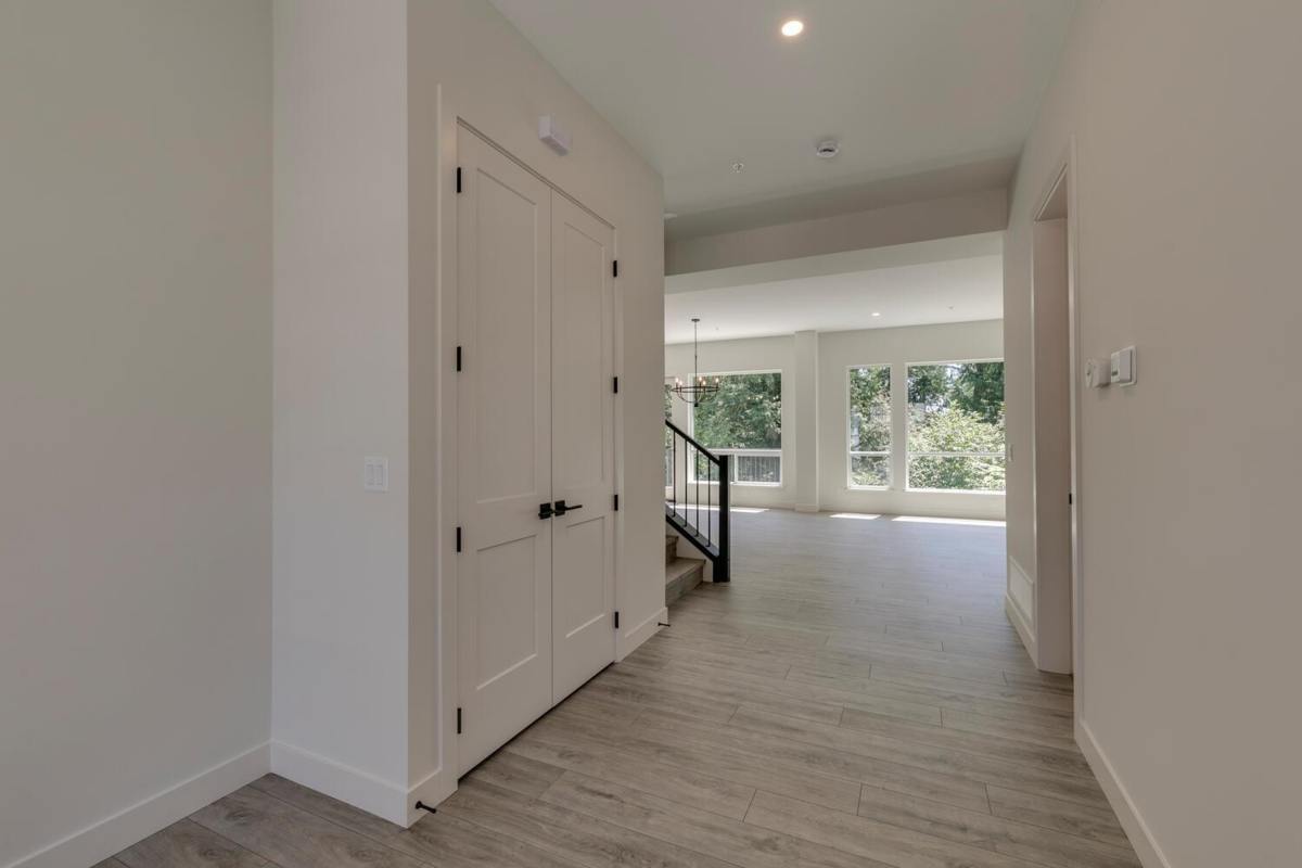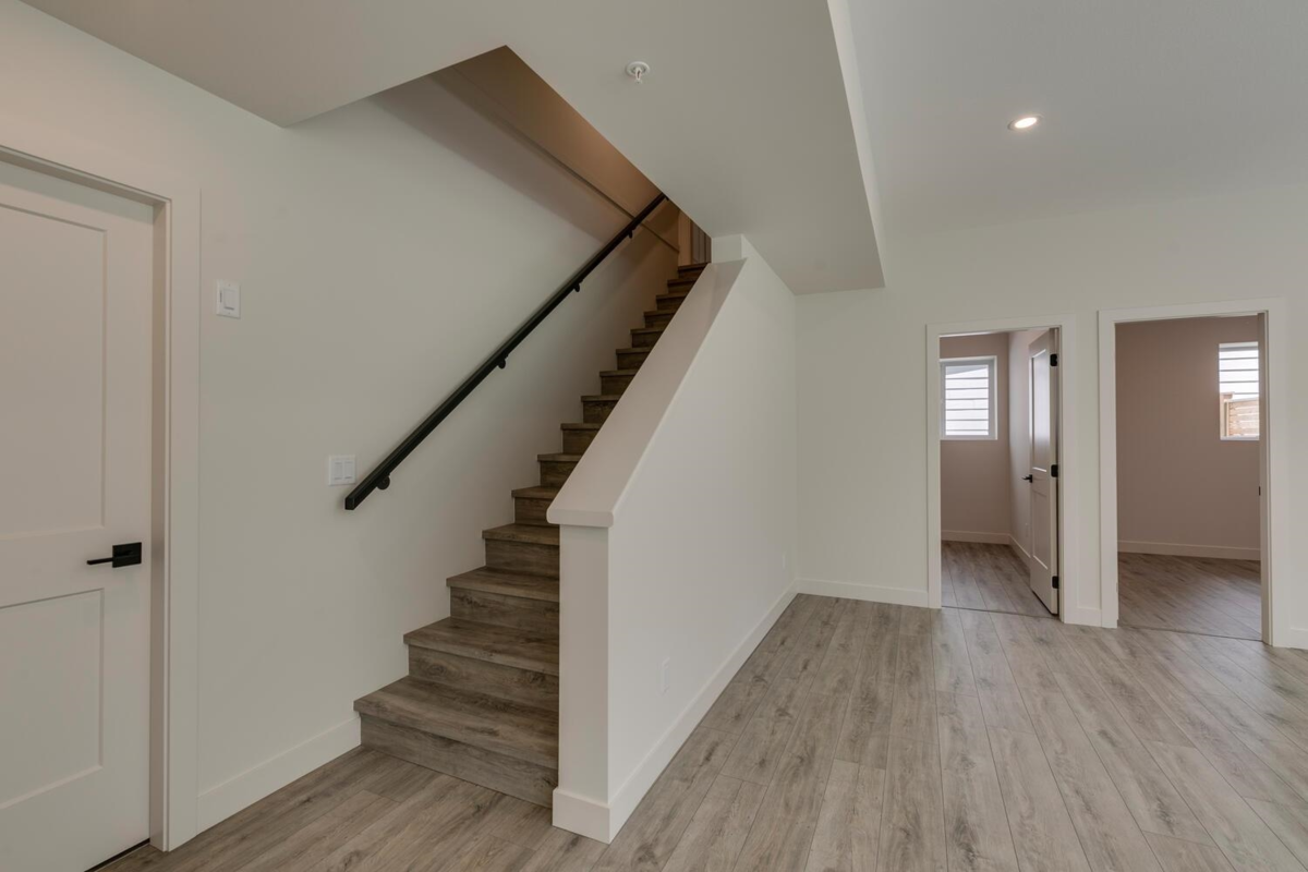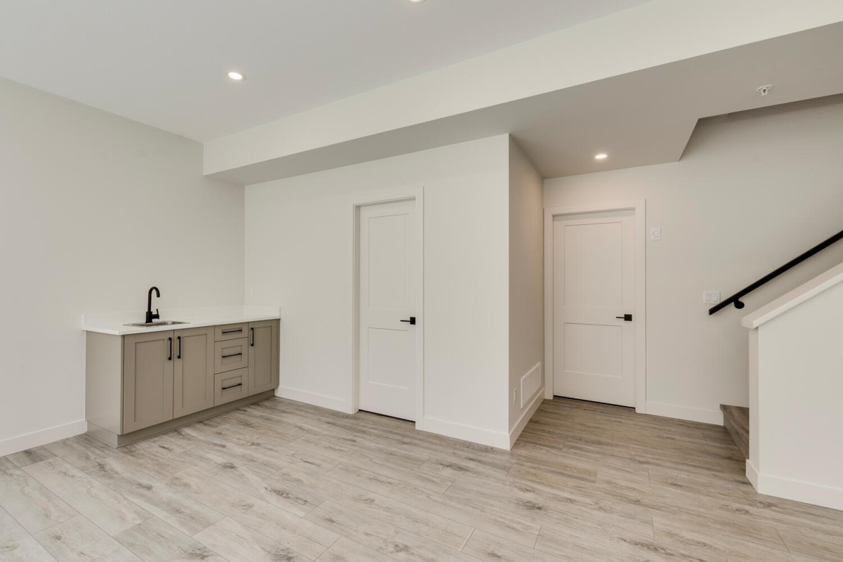 Step into luxury living at Nelson & Grove, where this beautifully crafted 6-bedroom, 4-bathroom home blends comfort, elegance, and function. Nestled at the end of a quiet cul-de-sac on a rare pie-shaped lot, it backs onto a tranquil greenbelt—offering privacy and peaceful views. Inside, vaulted ceilings, wide plank floors, quartz surfaces, and sleek tile define the space. The chef’s kitchen features stainless steel appliances, custom cabinetry, and a large quartz island. Expansive windows flood the home with natural light. Upstairs includes four bedrooms, including a serene primary suite with a spa-style 5-piece ensuite, walk-in shower, heated floors, and generous closet. The bright, walk-out basement offers two more bedrooms, a full bath, and a wet bar—perfect for entertaining!