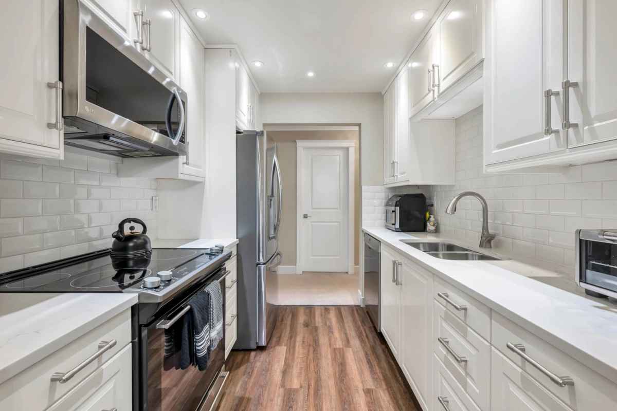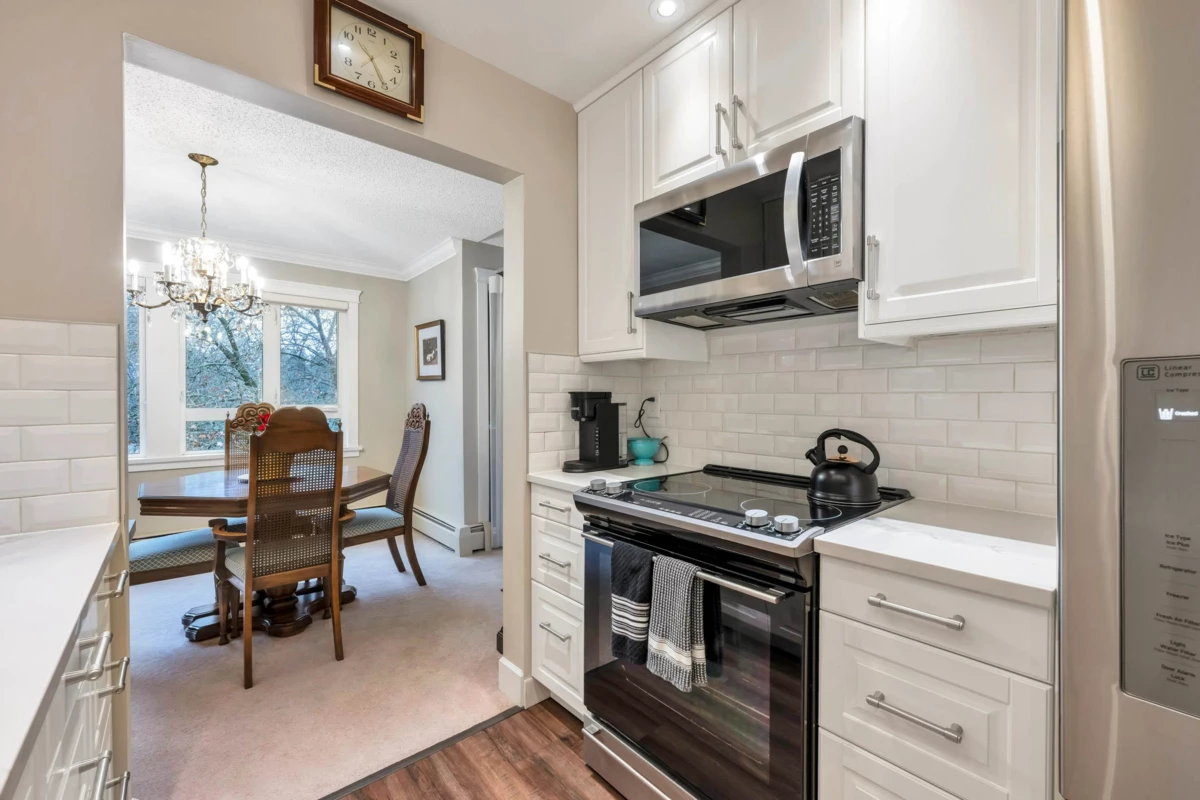 Come see this PRISTINE 2 bedroom, 2 bathroom, TOP FLOOR, CORNER Unit, on a tree lined well established quiet neighborhood in Richmond. This beautifully modernized move in ready home is perched virtually up in the trees allowing you to look down into the still park bellow. Primarily facing South, you can enjoy the serenity of the greenspace from your 2 private decks. This home is ultra cozy & warm, and features updated everything - flooring, paint, kitchen, AC. & bathrooms. Everything was done in a top quality manner for the owner to enjoy the past few years. Move in without lifting a finger, and enjoy! Lastly; all amenities are close - shopping, restaurants, schools, parks, and convenient proximity to the Knight & Oak bridges for easy commutes to Vancouver. Call now to view this beauty!