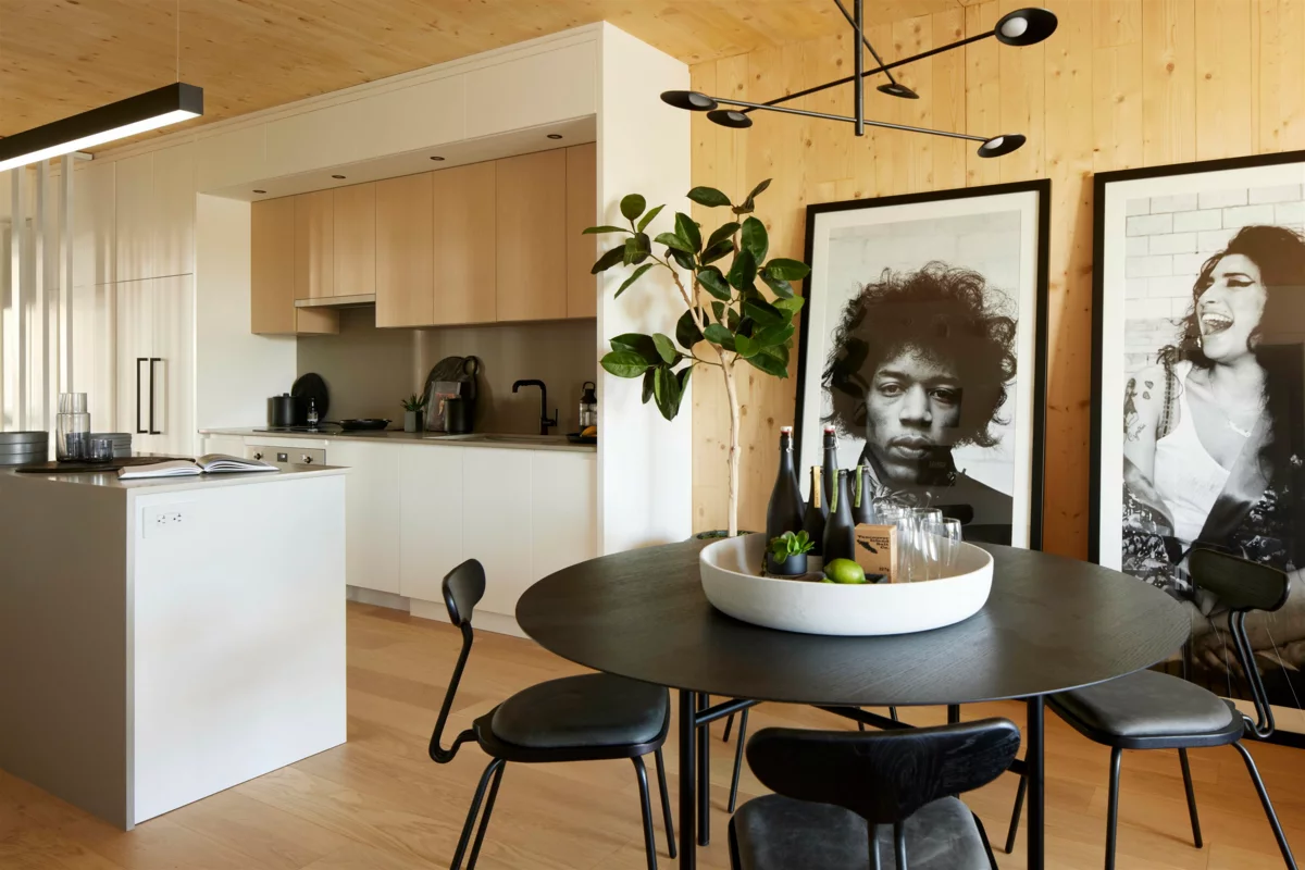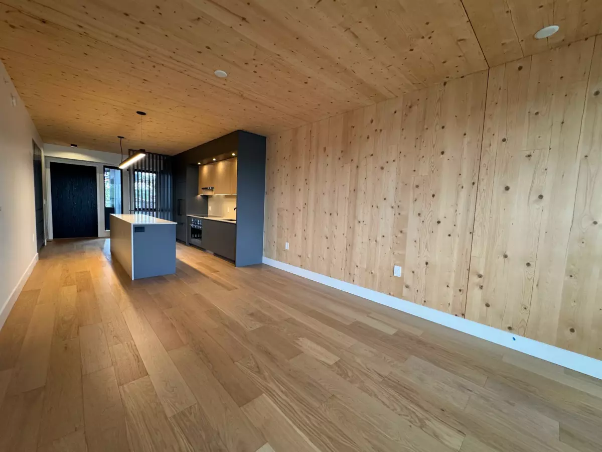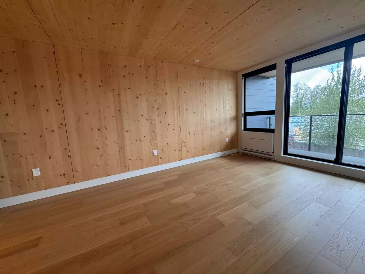 NEW PRICING & MOVE-IN READY! This spacious 876 SF 1BR home at Timber House by Aragon offers modern, high-design living with only one shared common wall + a 205 SF balcony. Interiors feature exposed CLT panels, wide-plank oak floors, black roller blinds & A/C. The sleek kitchen includes integrated F&P + Smeg appliances, quartz counters, matte black hardware & built-in pantry w/ slide-out storage. Spa-inspired bath has heated floors, floating vanity w/ LED lighting. Building amenities include: a courtyard, gym, BBQ area, dog wash, garden area, 1 parking (EV-ready opt), 1 storage. Steps to the boardwalk, 12 min to DT New West, 30 min to YVR, 35 min to DT Van. OPEN HOUSE EVERY SAT TO MON 1–4PM OR BY APPT.
