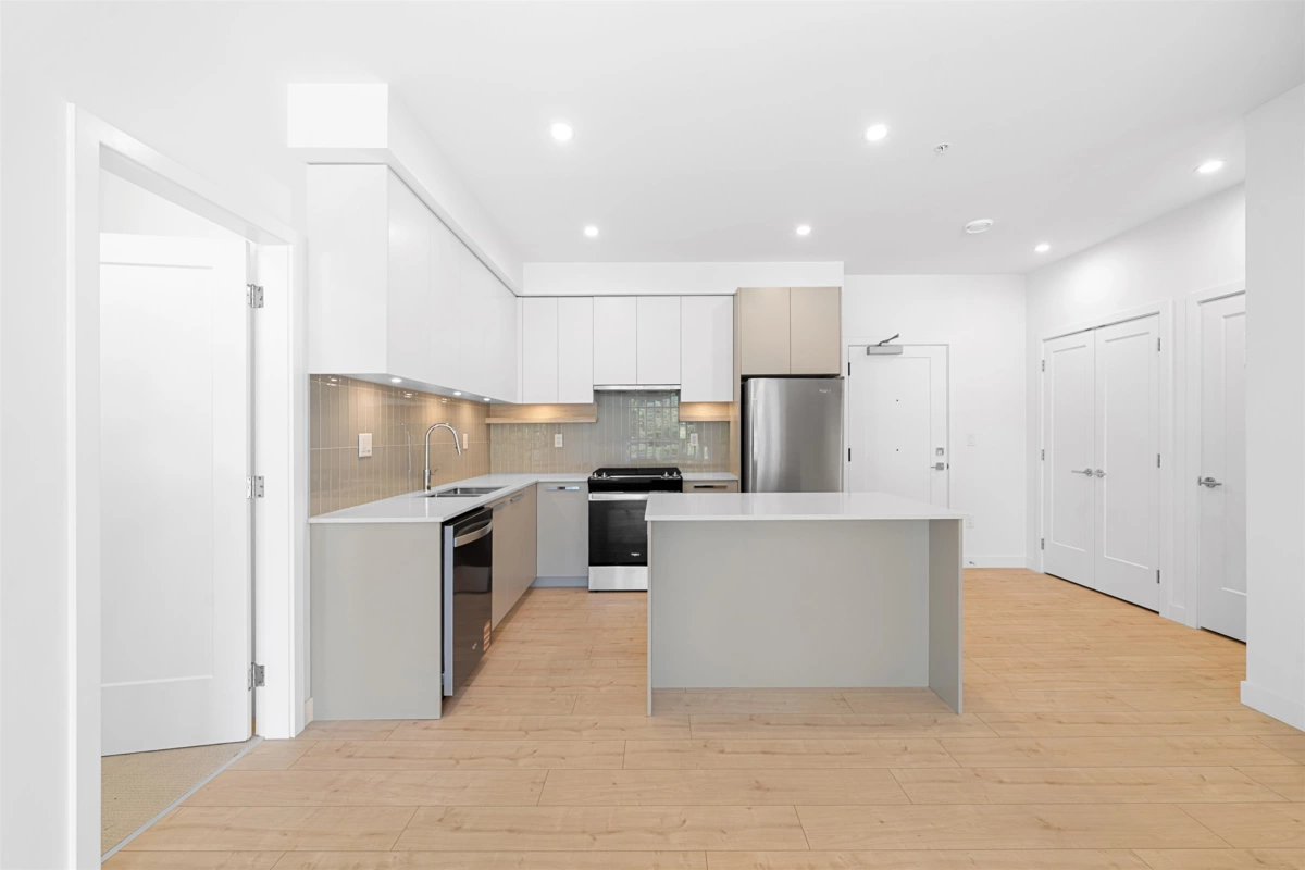 BRAND NEW unit in Silva 1! Spacious 2 Bed, 2 Bath unit with street-facing views! TONS OF STORAGE with multiple closets and a storage locker. Comes with solarium enclosure system on the balcony allowing you to enjoy all the seasons from your outdoor living space! Premium finish with stainless steel appliances featuring a GAS STOVE, quartz countertops, wide-plank flooring, in-suite laundry, walk-in closet, double sink bathrooms, and a MINI-OFFICE which can be converted to additional storage. Breathtaking amenities include a modern courtyard, fitness center, co-working space, social lounges, community kitchen and much more. One of a kind building in Newton's vibrant neighborhood! Comes with one parking & one locker!