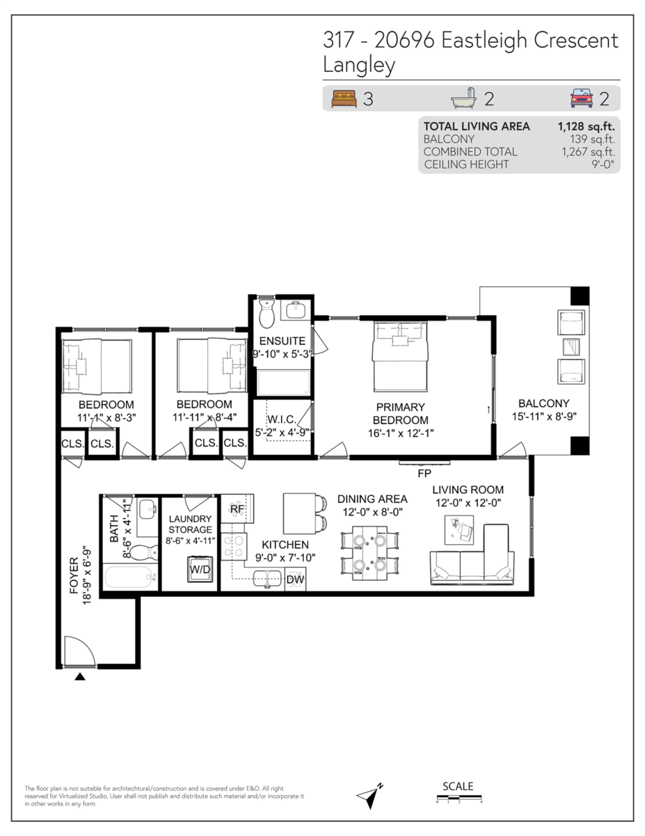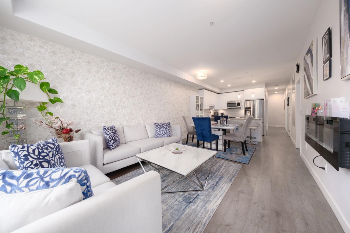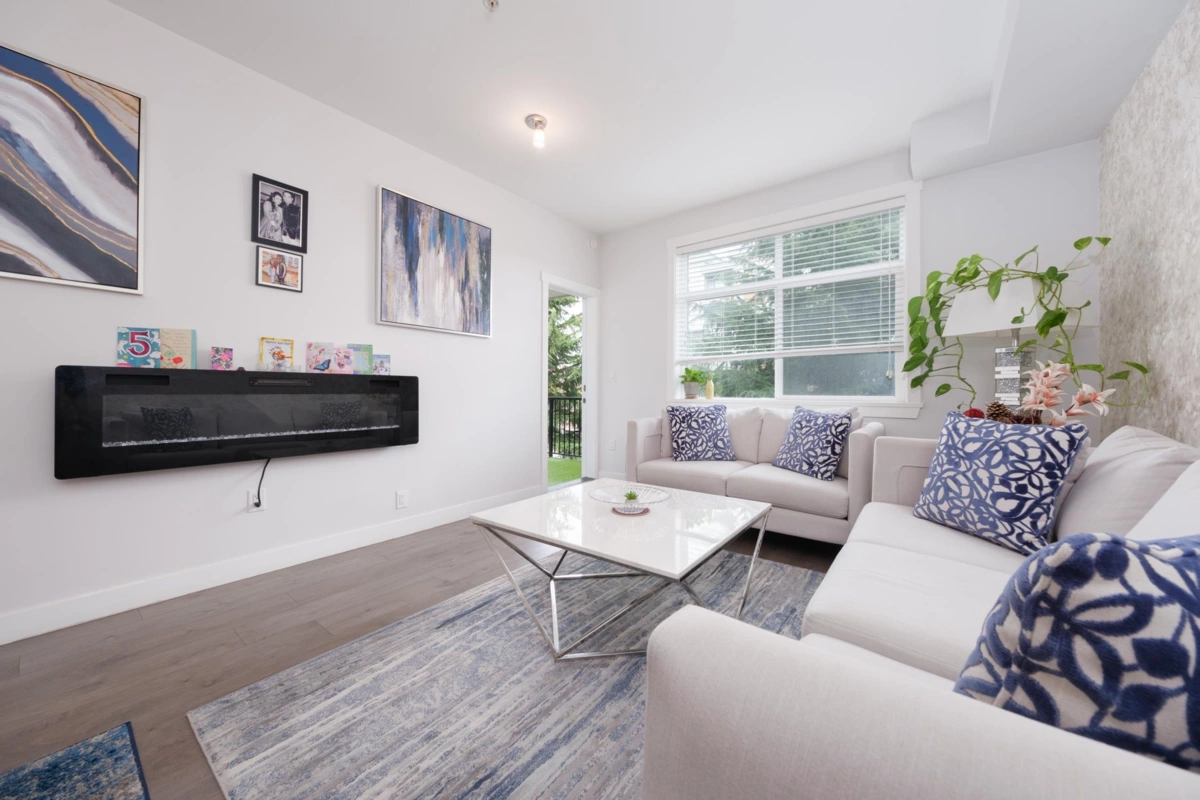 Welcome to The Georgia in Langley City! This rare, 3-bedroom, 2-bath northwest corner unit offers 1,128 sq.ft. of stylish living, furnished with luxury furniture. Built by Whitehall Homes, it features 9' ceilings, granite countertops, air conditioning, two parking stalls, EV charging, a gym, daycare across the street, and a kids' play area. Prime location - just 7 minutes to the future SkyTrain and 5 minutes to Kwantlen University, Costco, and Willowbrook Mall, with scenic trails nearby. Walk Score of 91. School catchments: Douglas Park Elementary, HD Stafford Middle, and Langley Secondary. A fantastic opportunity to live or invest in Langley! Its Available. Open House 30 Nov Sunday 3-5pm