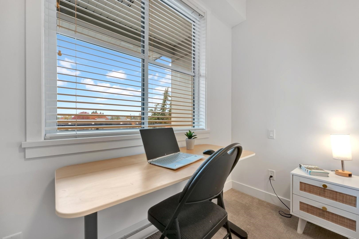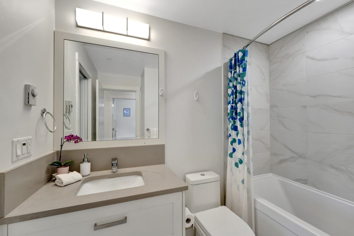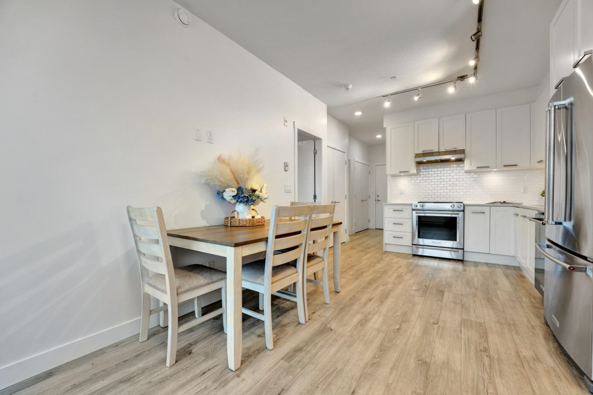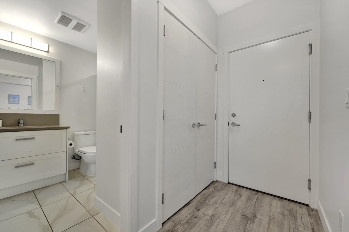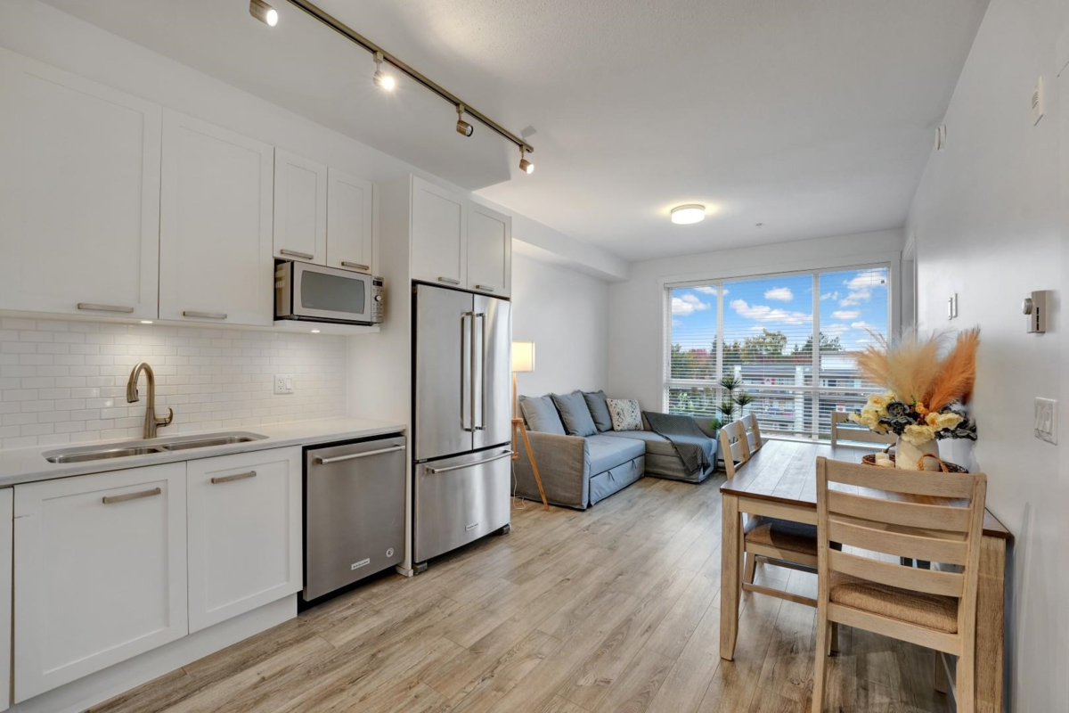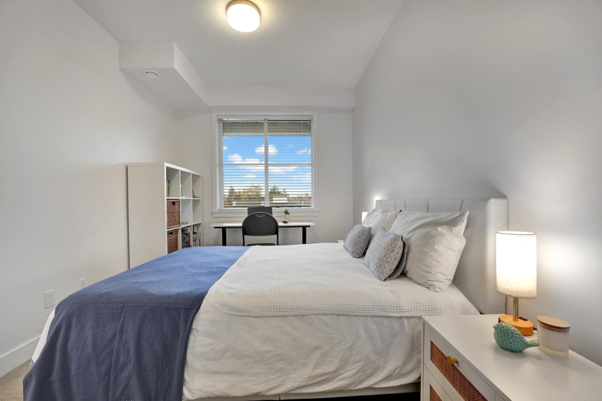 Welcome to The Civic by Creada Developments, where modern living meets unbeatable convenience in the heart of Langley City! This immaculate 1 bedroom + den (currently used as a 2nd bedroom) offers a bright, open layout with 9-ft ceilings, large west-facing windows and an oversized balcony. The stylish kitchen features quartz countertops and stainless steel appliances. The building offers an amenity room with games area, guest suite, bike storage, secure parking and a private courtyard with playground. Pets welcome - 1 cat or 1 dog, with no size restrictions. Steps to shops, dining, recreation, and the future SkyTrain (2028). This home shows like new and is perfect for first-time buyers, downsizers or investors!