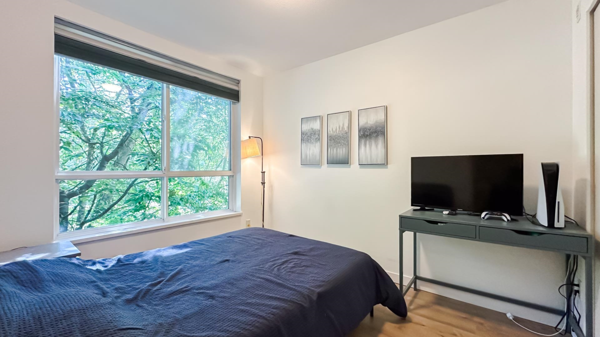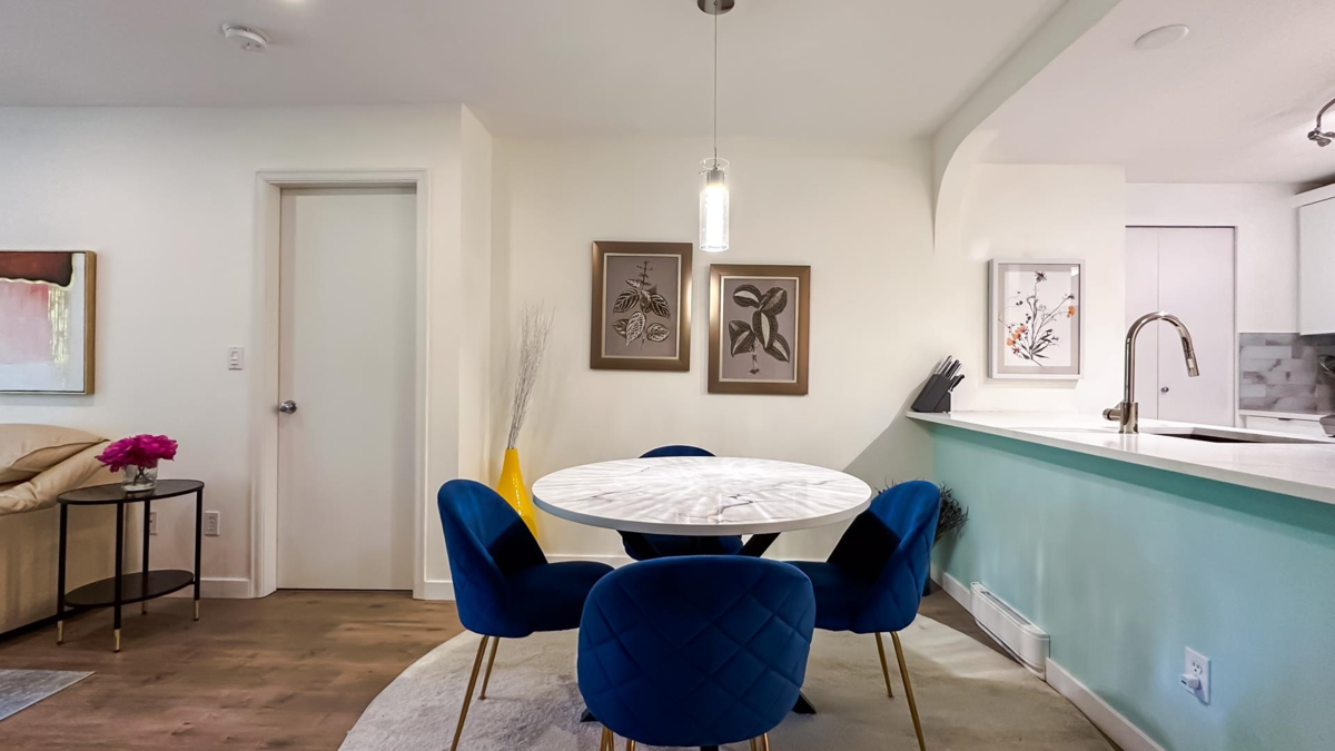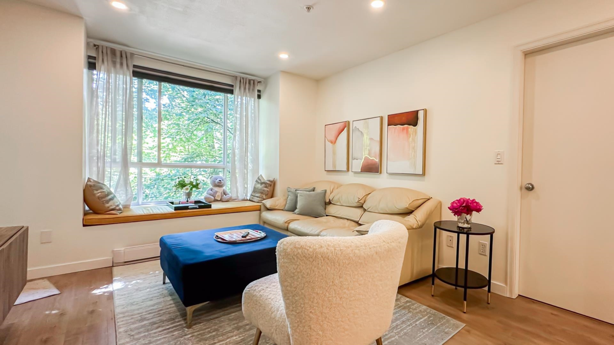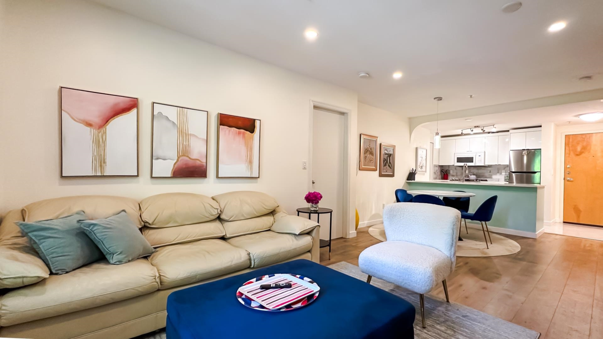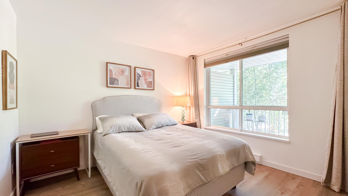 Welcome to this bright and beautifully renovated 2-bedroom, 1-bath condo offers 779 sq ft of thoughtfully designed, open-concept space in the heart of Burnaby. Step into a spacious living and dining area perfect for entertaining, and enjoy a sleek, modern kitchen with plenty of cabinet space. The generously sized primary bedroom features a walk-in closet, while the versatile second bedroom works great as a guest room, office, or nursery. Relax on your private 77 sq ft balcony, and enjoy the convenience of in-suite laundry. Located in a peaceful, walkable neighbourhood, you're just minutes from parks, shopping, and SkyTrain access. Perfect for first-time buyers, downsizers, or savvy investors!
