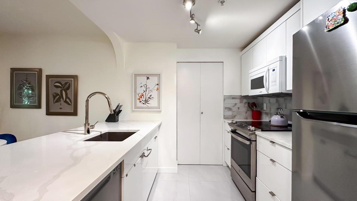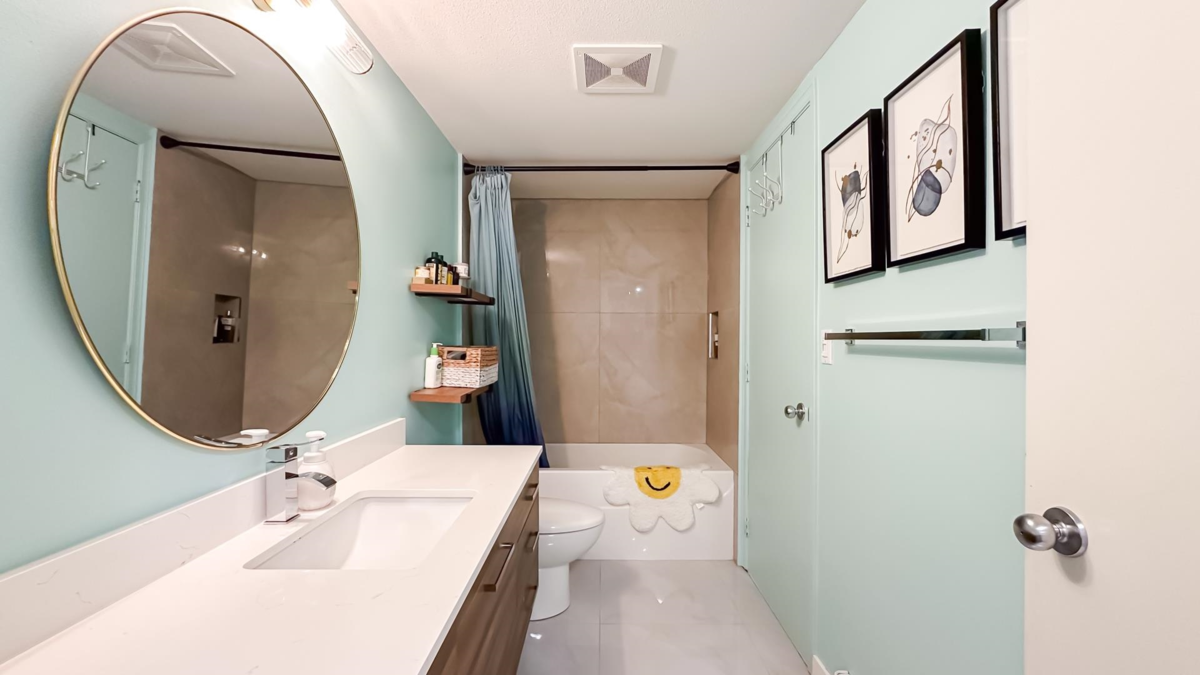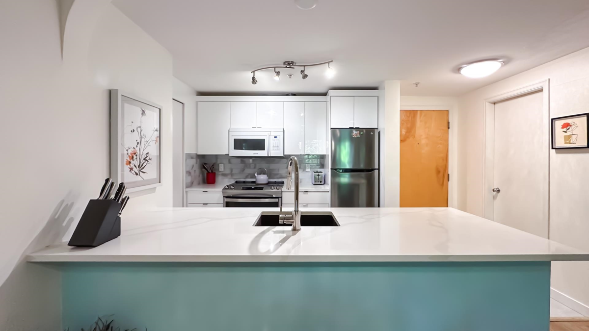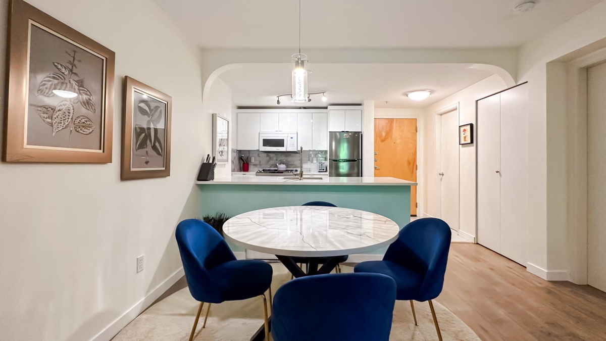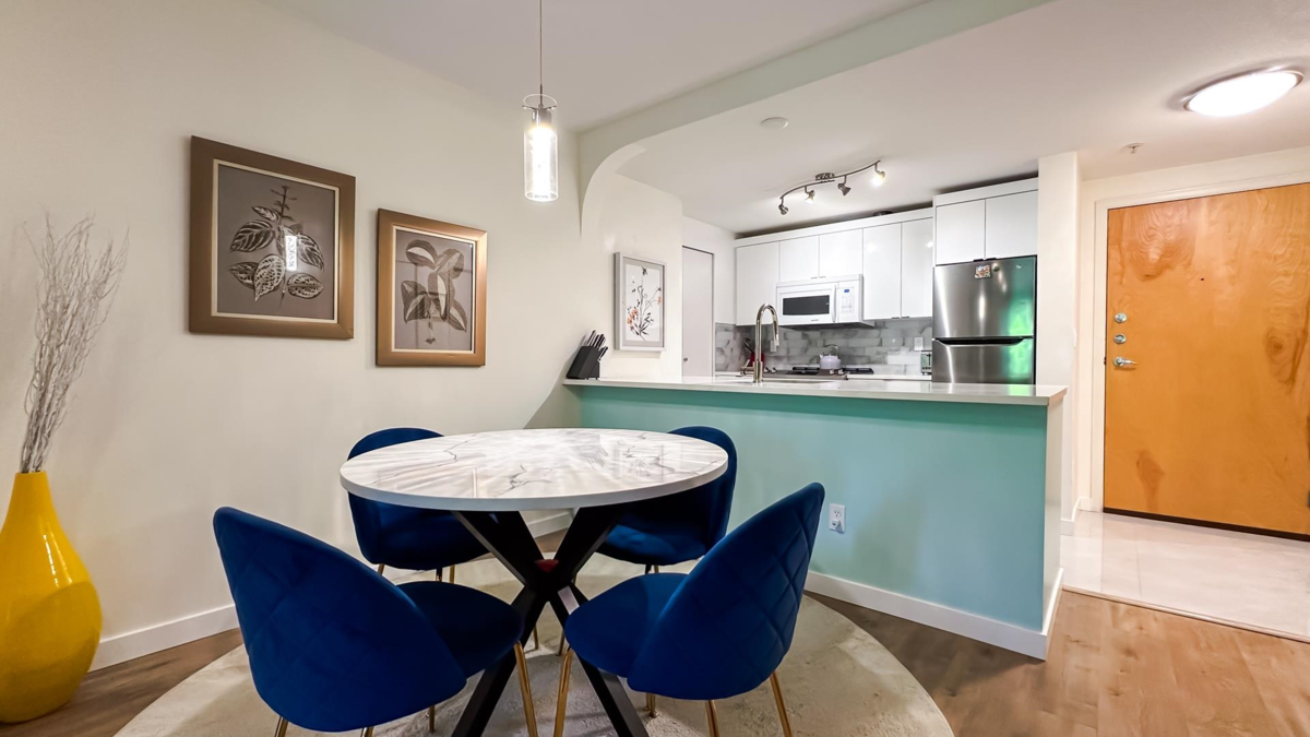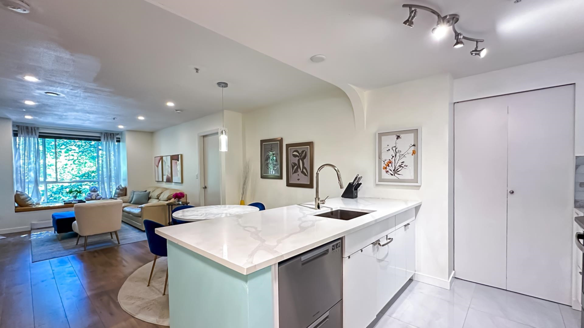 Welcome to this bright and beautifully renovated 2-bedroom, 1-bath condo offers 779 sq ft of thoughtfully designed, open-concept space in the heart of Burnaby. Step into a spacious living and dining area perfect for entertaining, and enjoy a sleek, modern kitchen with plenty of cabinet space. The generously sized primary bedroom features a walk-in closet, while the versatile second bedroom works great as a guest room, office, or nursery. Relax on your private 77 sq ft balcony, and enjoy the convenience of in-suite laundry. Located in a peaceful, walkable neighbourhood, you're just minutes from parks, shopping, and SkyTrain access. Perfect for first-time buyers, downsizers, or savvy investors!