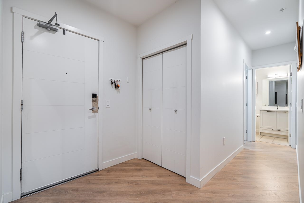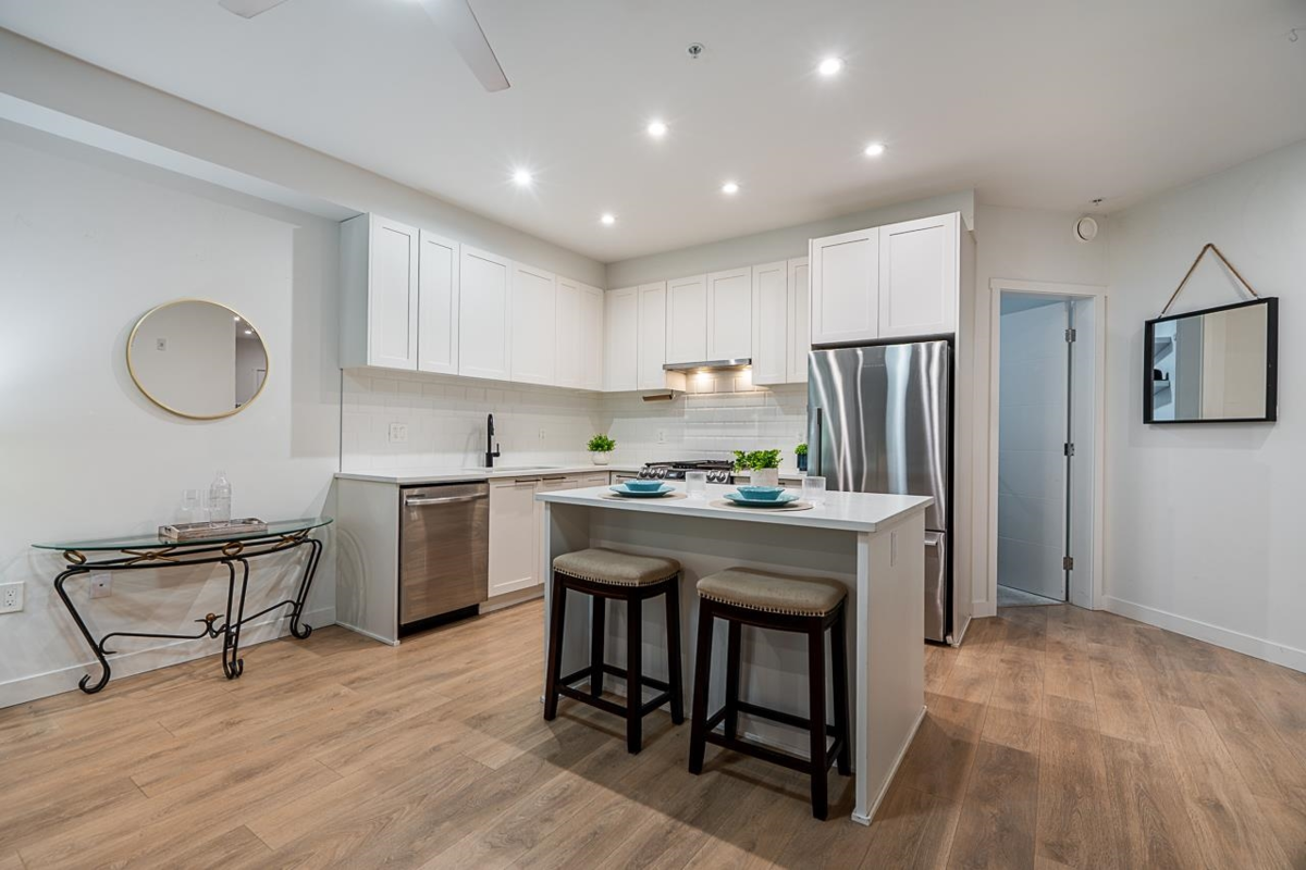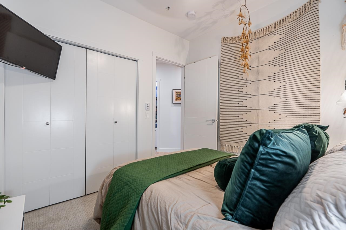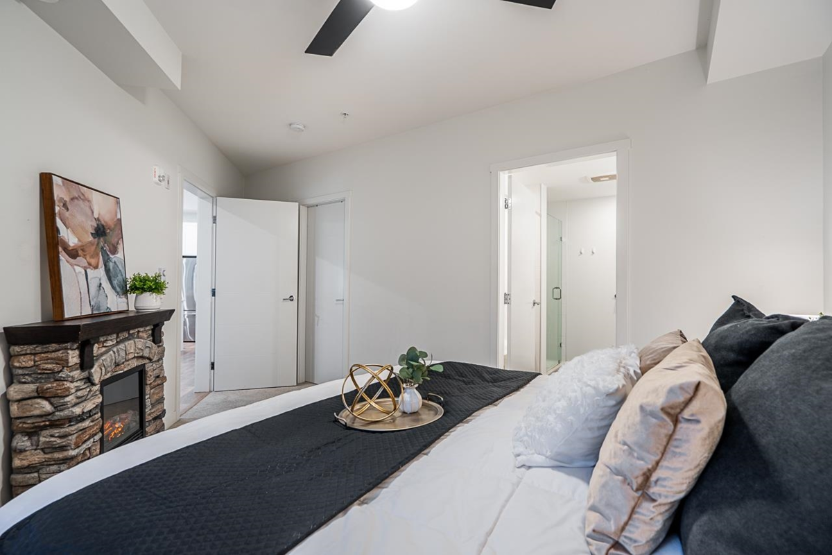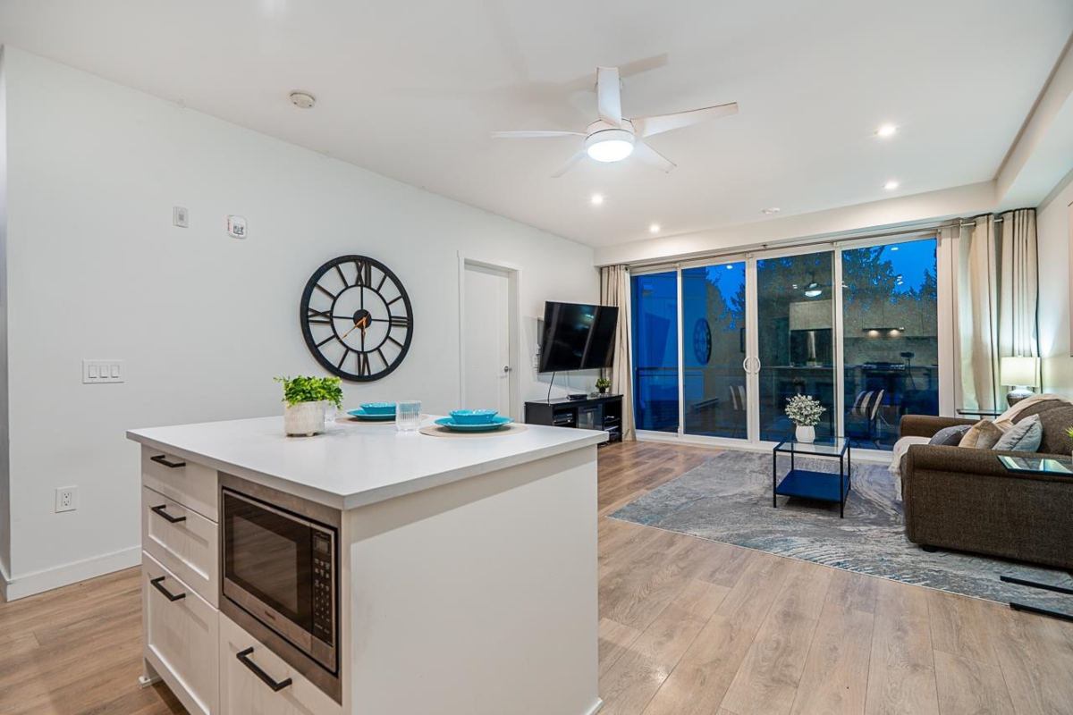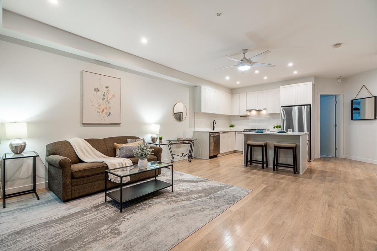 Stylish and spacious GREAT ROOM plan with a VIEW OF THE COURTYARD—could easily be converted to 3 bedrooms! Features include STAINLESS STEEL appliances, QUARTZ countertops, sleek kitchen cabinetry, and a large in-suite storage room. Comes with 2 PARKING STALLS and is just a short walk to the FUTURE SKYTRAIN—buy now, profit later! Enjoy easy access to Hwy 1, Alex Fraser Bridge & the US border. Rentals allowed, no age restrictions, 2 PETS ANY SIZE—families welcome!