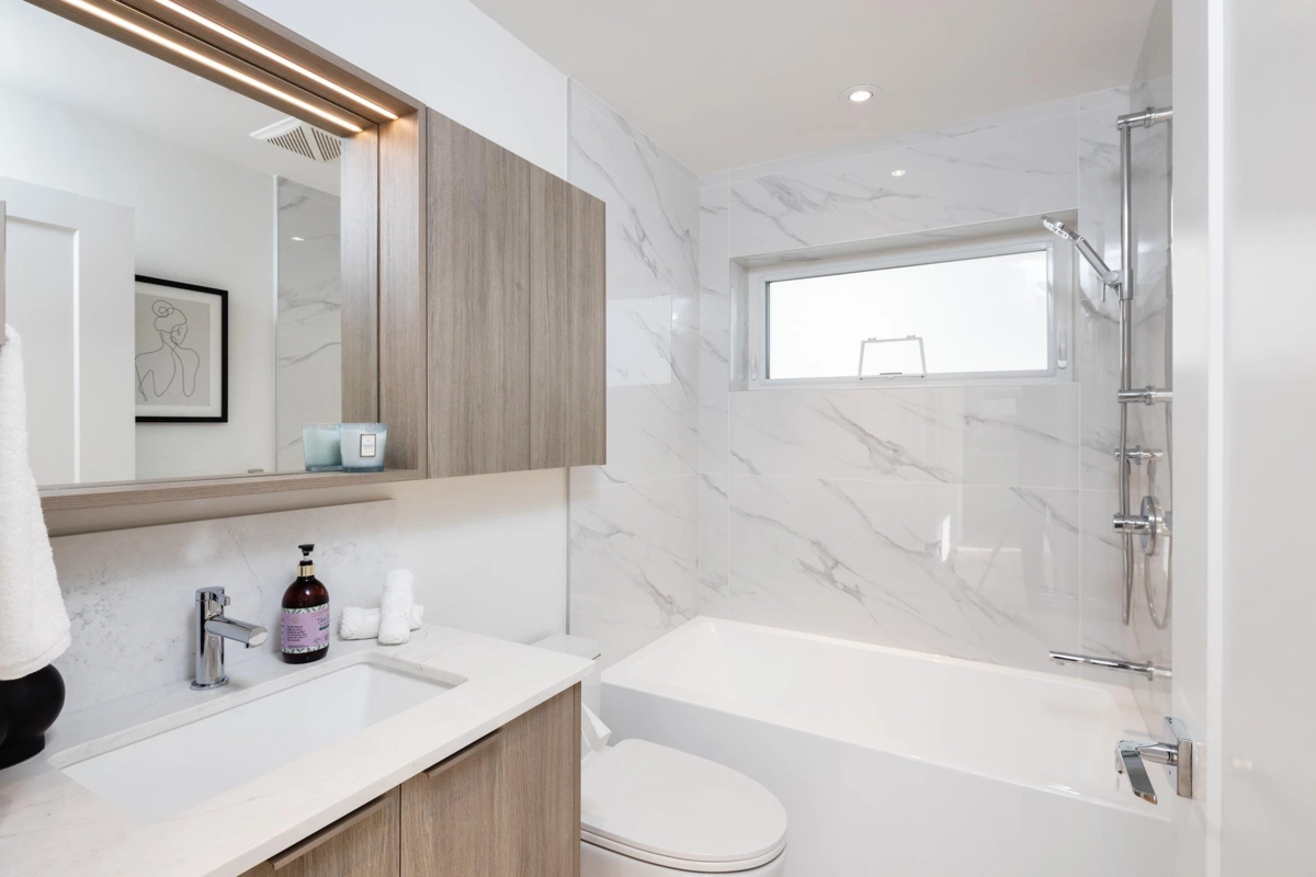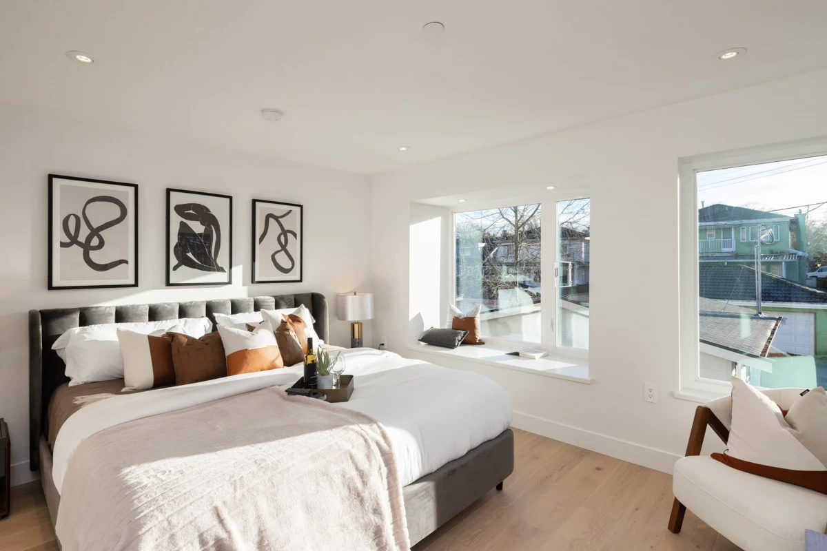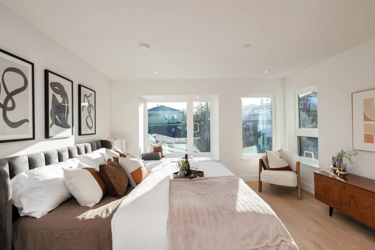 Lovely brand new home in one of Vancouver’s most coveted neighbourhoods—steps from Queen Elizabeth Park, Hillcrest Community Centre, Eric Hamber Secondary and other top-tier schools. Custom built home w/ Japandi design, fancy millwork, engineered hardwood floors, radiant in-floor heating & AC. Enter via a sunken foyer into your 10' tall open concept LDK with double sliding patio doors to your fully fenced backyard. 2 bed 2 bath on 2nd floor, including 5pcs master ensuite w/ walk-in shower and freestanding tub. Vaulted ceiling on 3rd floor bedroom & bathroom - among the largest of its kind. Ample storages on each floor, plus a crawlspace. TWO dedicated parking stalls. Move-in ready. Call now! Open house Sat Nov 8 from 2:30 - 4pm