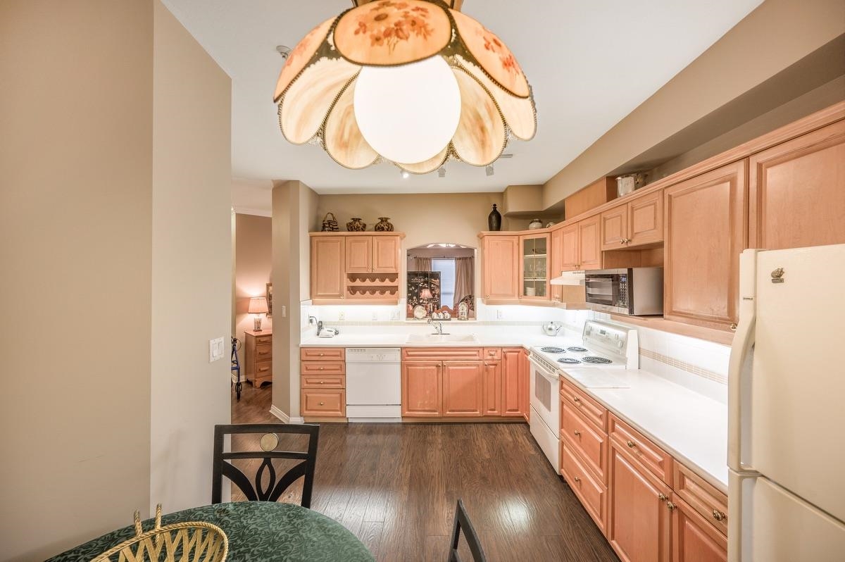 DON'T WAIT - priced to Sell! Welcome to Marlborough House – an exceptional 55+ Polygon-built development in the heart of Coquitlam, offering a perfect carefree living option for seniors! Quiet 2 bedroom, 2 bathroom unit with a view of the courtyard garden. The primary bedroom features an over-sized ensuite with double sinks and a deep soaker tub, and the secondary bedroom has its own full bath. Spacious kitchen with a view to the living and dining rooms. One underground parking and storage locker are included. Prime location—steps to scenic Lafarge Lake, Coquitlam Centre, transit, restaurants and more! Features a Fitness Centre, Indoor Pool, Workshop, Recreation Room, Lounge, Guest Suites and extensive social activities. *One person must be 55 or older and no one under 19.