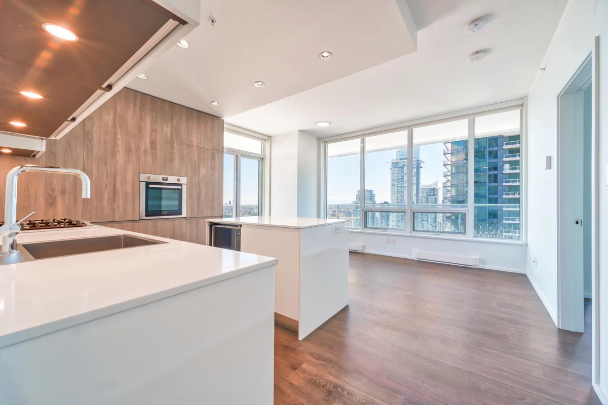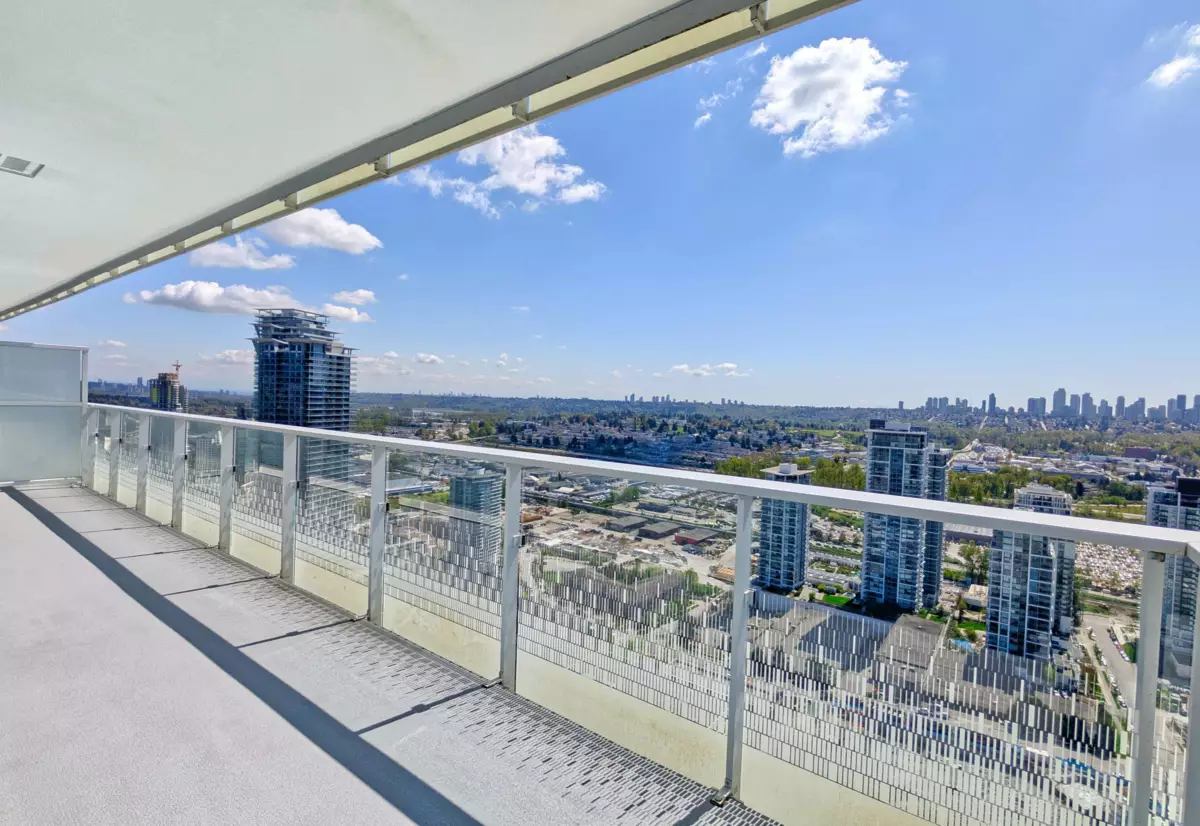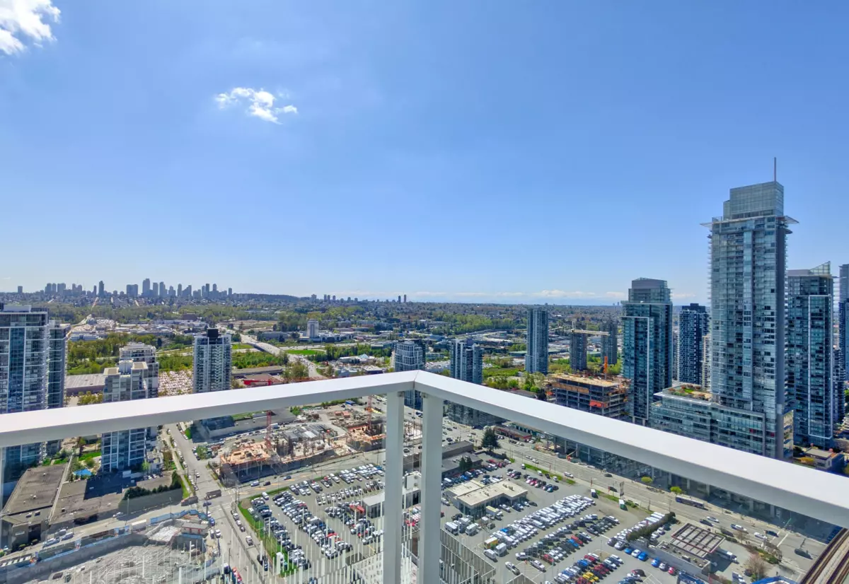 Welcome to Amazing Brentwood Building 3! This 32nd Floor South Facing Corner unit has breathtaking mountains and city views from every room! Built by the renowned Shape Properties known for their excellent quality and craftsmanship. This home features 2 bedrooms 2 bathrooms with 777 sqft of living space, and a large 384 sqft wrap-around outdoor patio with panoramic views. Its gourmet kitchen with Bosch appliances and open layout is perfect for entertaining! Comes with EV parking with FREE charging! Located in the heart of Brentwood this home is steps to shopping, transit, recreation and much more! Book your private showing today! Open house: Nov 23 Sunday 12pm to 1:30pm