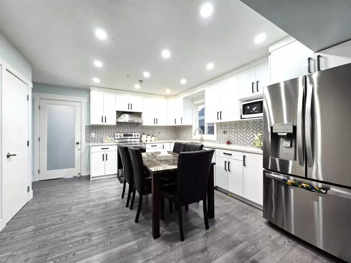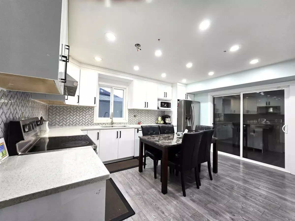 Spacious over 4,000 sq ft. 6 beds/7 baths home on 8422 sq ft. lot with 2-car garage & huge backyard. Main floor features 4 beds & 4 attached baths with bedrooms & an extra full common bathroom, huge living room, kitchen with granite counter tops/ backsplash tiles/ S/s appliances, dining area & spice kitchen. Basement has a legal suite plus media room, storage rooms, rec room, nanny suite with separate entrances. Other features- Good size front sun deck, big backyard, huge covered sun deck at the back, tons of parking, walk to Mouat School & Rotary Stadium. Close to schools, shopping, recreation, public transit, restaurants, malls & easy access to freeway.