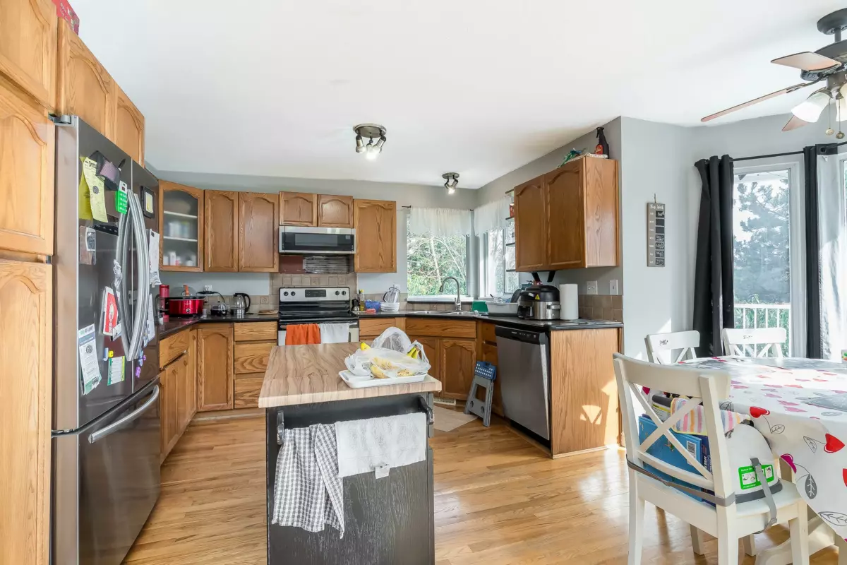 Centrally located on a quiet cul de sac next to a community park. This 4 bed/ 3 bath family home will meet all your family's needs. The vaulted ceiling in the living rm & several lrg windows provide a bright & spacious living space. The kitchen has ample cupboard & counter space, S/S appliances & eating area which leads to a lrg deck for extra outdoor living space. The family rm adjacent to the kitchen, has a fireplace that can provide a cozy, relaxing space. The basement is fully finished with a separate entrance ideal for a potential suite. The lrg rec-room & flex rm provides an abundance of space for family & entertaining. The laundry rm adds convenience & can provide lots of storage space. The outdoor shed & garage provides extra storage options. Close to schools, transit & amenities.