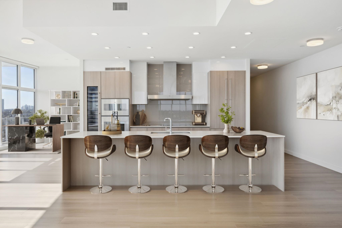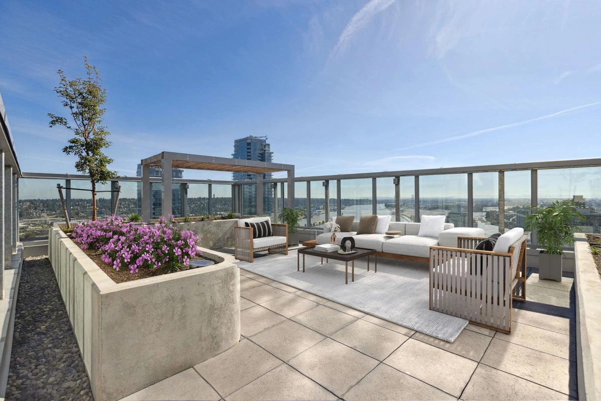 Welcome to the penthouse of 618 Carnarvon. The "PH1" truly is the best of the best at the newly completed "618 Carnarvon" Unrivalled SW 180-degree panoramic views of the mountains, Fraser River, and city skyline. You'll be delighted as soon as you step into the expansive open concept living and family rooms, flooded with natural light. The kitchen is equipped with a top-of-the-line Gaggenau appliance package and a stunning, multifunctional island perfect for hosting gatherings. On the upper level, you'll find your exclusive southwest-facing ~1000 sqft+ private garden roof deck, ready for your summer BBQs. Two parking stalls are included. Incredible value that cannot be found elsewhere. Call today for your private appointment of this luxurious home.