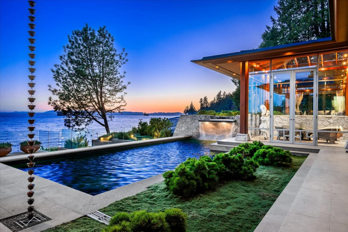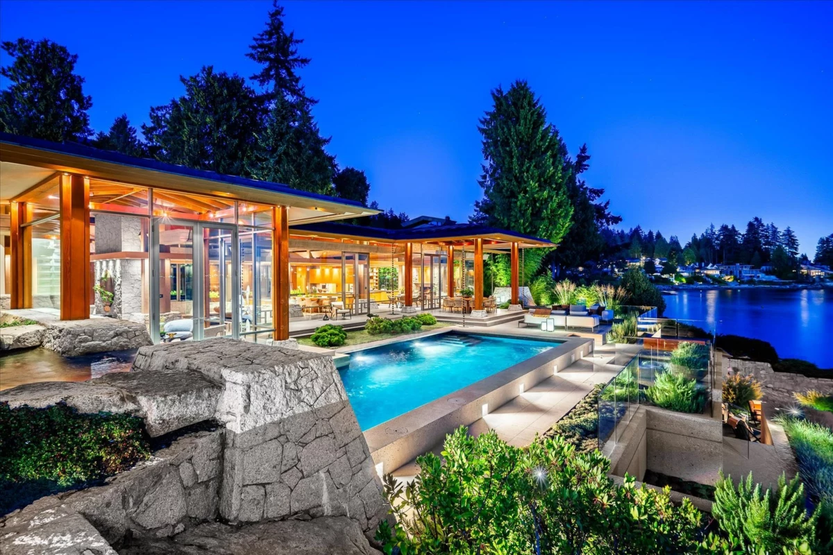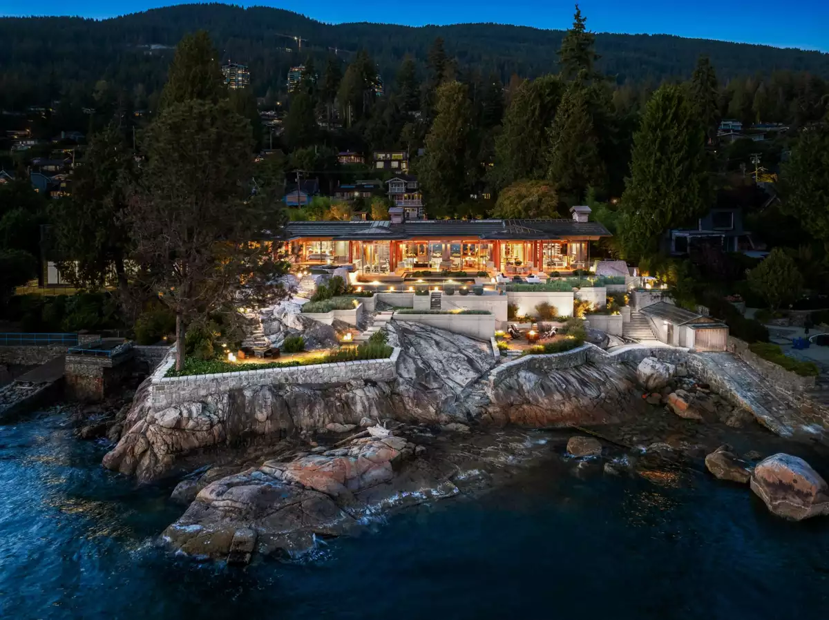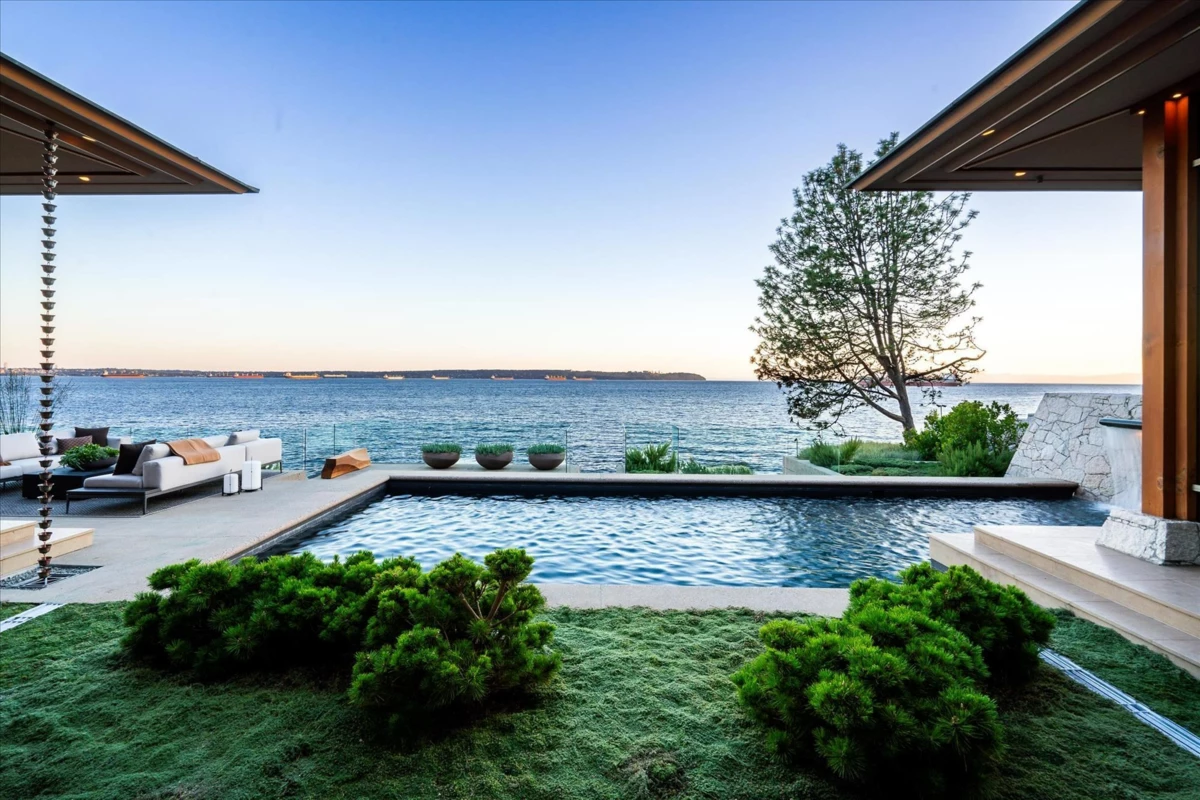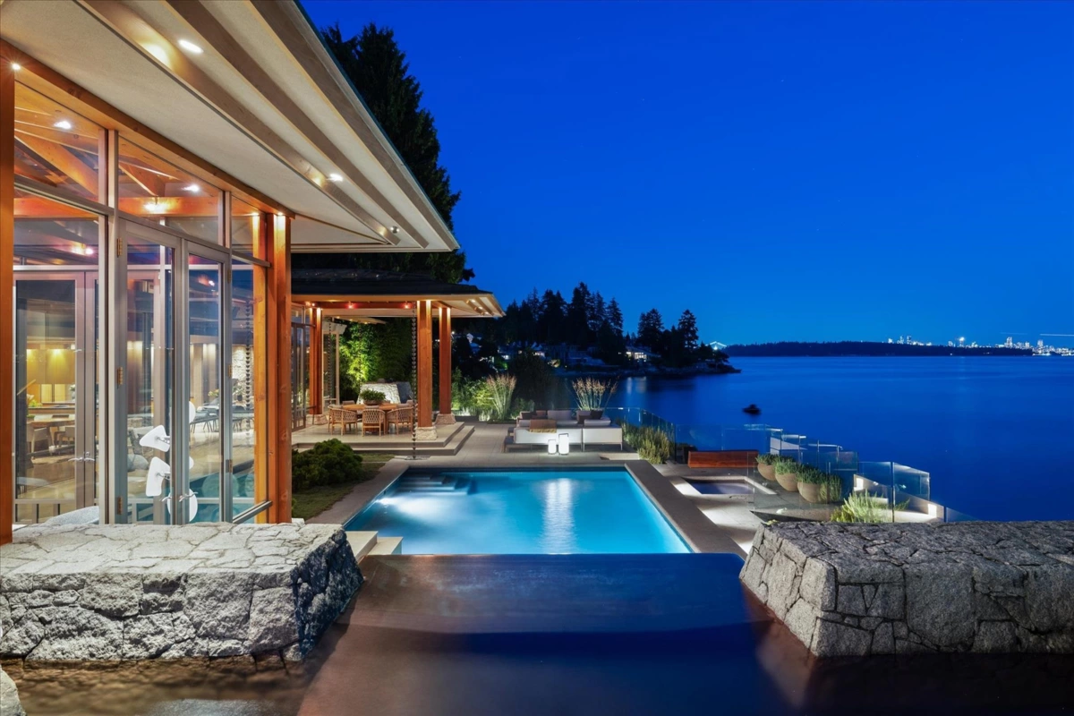 Located in this most coveted West Bay neighborhood of West Vancouver this magnificent residence, designed by architect Russell Hollingsworth, is situated on one of the most prized waterfront properties in Greater Vancouver boasting over 200 feet of natural shoreline. The main residence provides approximately 10,000 square feet of living space on two expansive levels featuring 5 full bedroom suites including a privately situated guest suite. Floor to ceiling windows and glass doors throughout the residence offer a wonderful indoor outdoor oceanfront living experience with complete privacy and unobstructed 180 degree south facing views. This fully gated property is professionally landscaped with oceanside swimming pool, outdoor spa, covered dining terrace and garage parking for 4 vehicles.