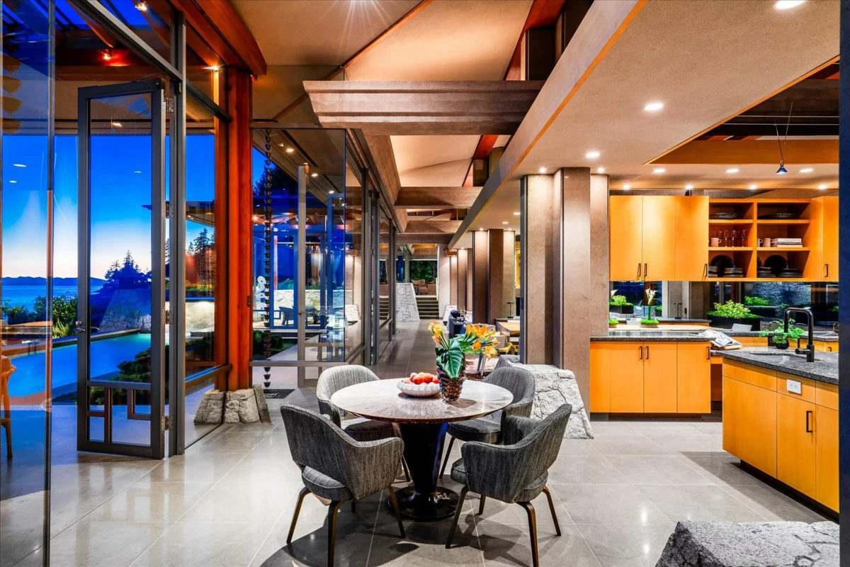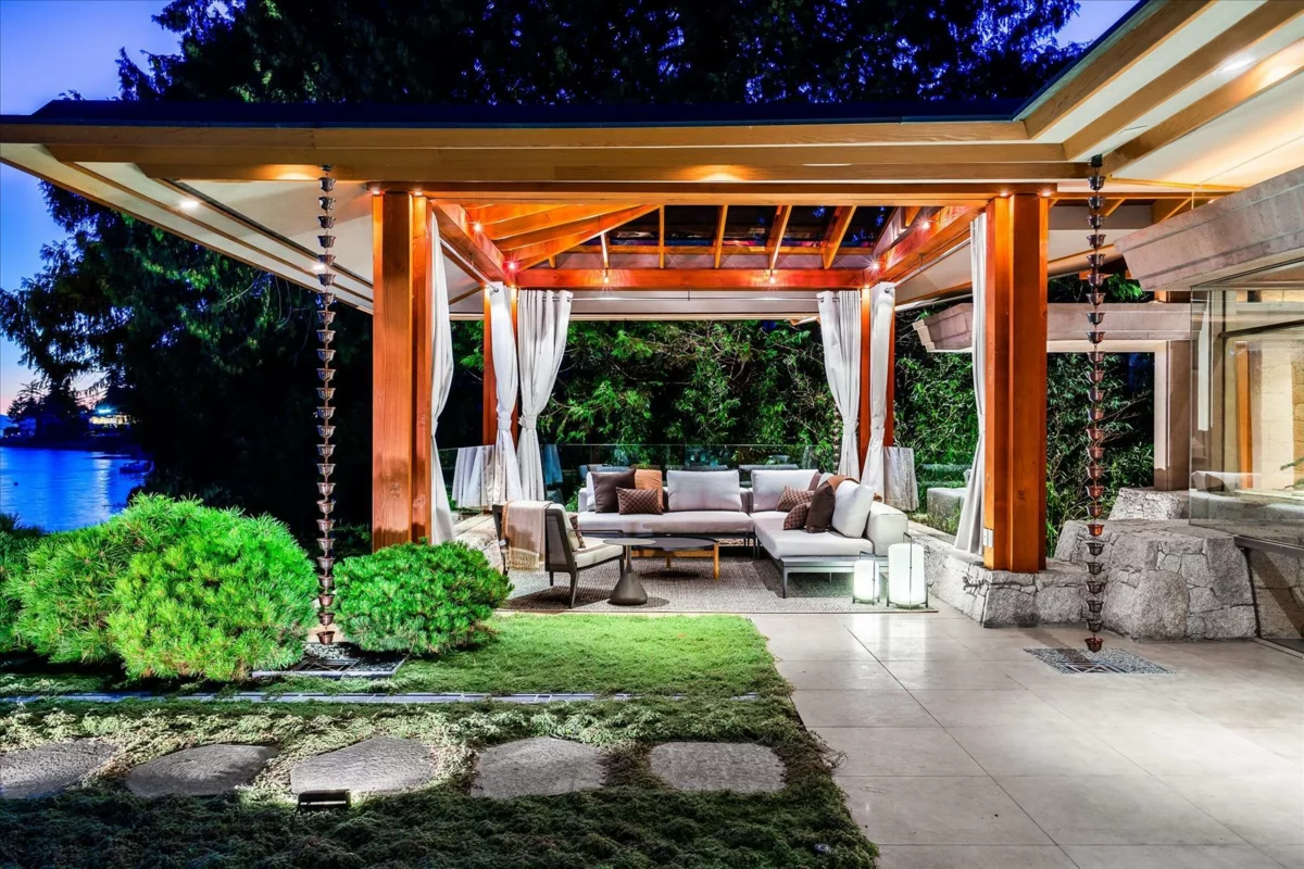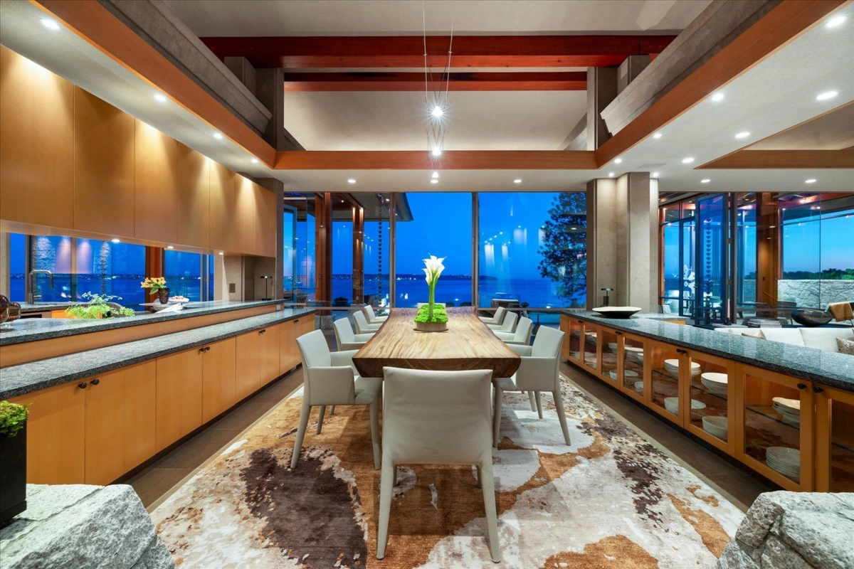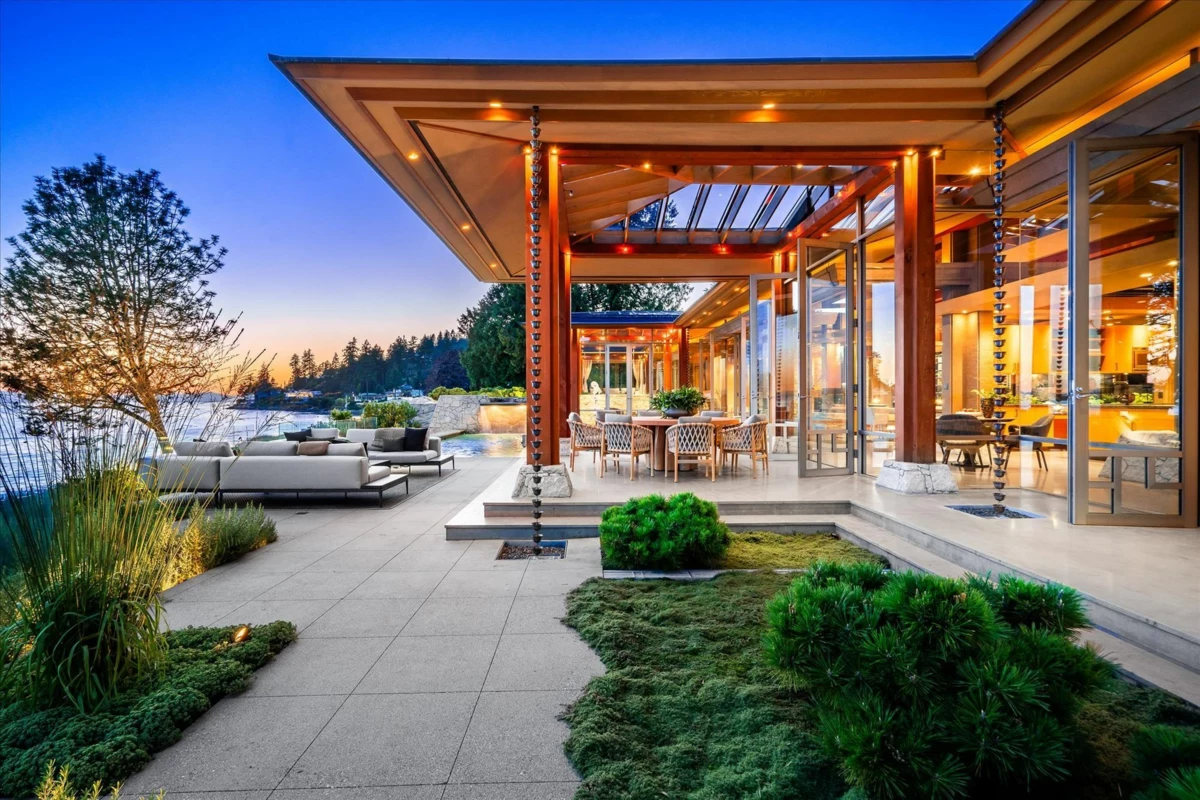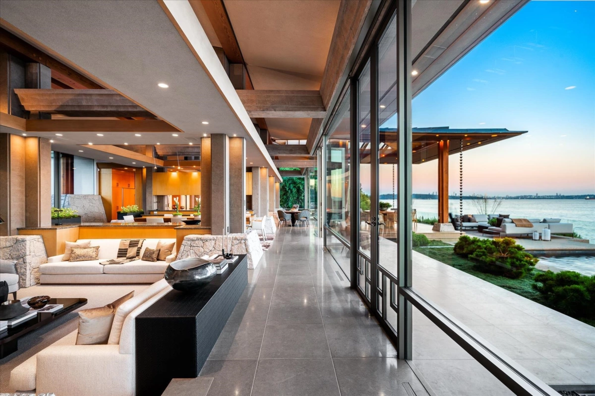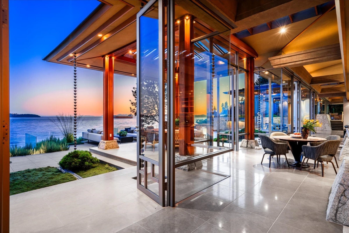 Located in this most coveted West Bay neighborhood of West Vancouver this magnificent residence, designed by architect Russell Hollingsworth, is situated on one of the most prized waterfront properties in Greater Vancouver boasting over 200 feet of natural shoreline. The main residence provides approximately 10,000 square feet of living space on two expansive levels featuring 5 full bedroom suites including a privately situated guest suite. Floor to ceiling windows and glass doors throughout the residence offer a wonderful indoor outdoor oceanfront living experience with complete privacy and unobstructed 180 degree south facing views. This fully gated property is professionally landscaped with oceanside swimming pool, outdoor spa, covered dining terrace and garage parking for 4 vehicles.