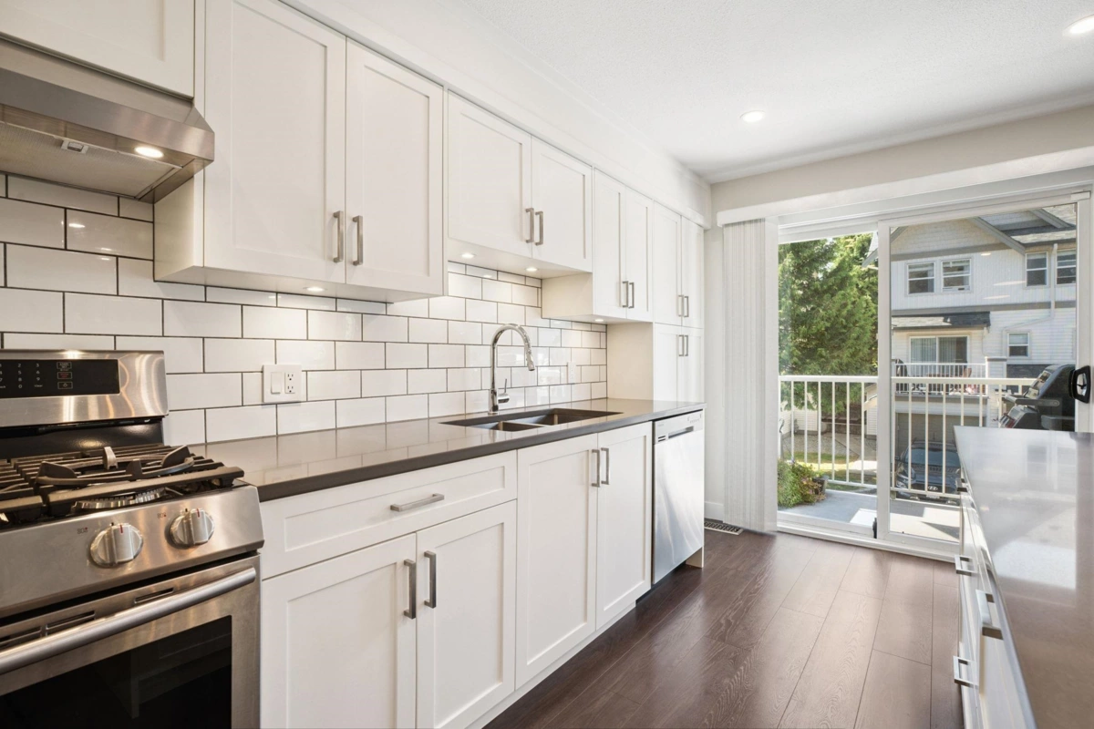 Welcome home to Northview Place in the heart of Port Coquitlam's Riverwood District! Completely renovated from top to bottom in 2019 & lovingly cared for since! This 3 bedroom & flex townhome offers style & functionality with a bright, open living/dining area & a spacious chef's kitchen with quarts countertops, island & stainless steel appliances. Upstairs, the primary suite boasts a walk-in closet & spa-inspired ensuite, with two more large bedrooms. The lower level includes a flex space, ideal for an office, gym or 4th bedroom. Enjoy the fenced yard with grass & balcony for your BBQ. Double garage & ample street parking add convenience. Insuite laundry room with sink. Proactive strata with new roof & new vinyl fence. OPEN HOUSE Sunday November 30 3:00-5:00pm!