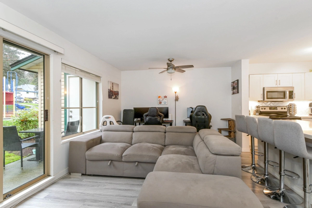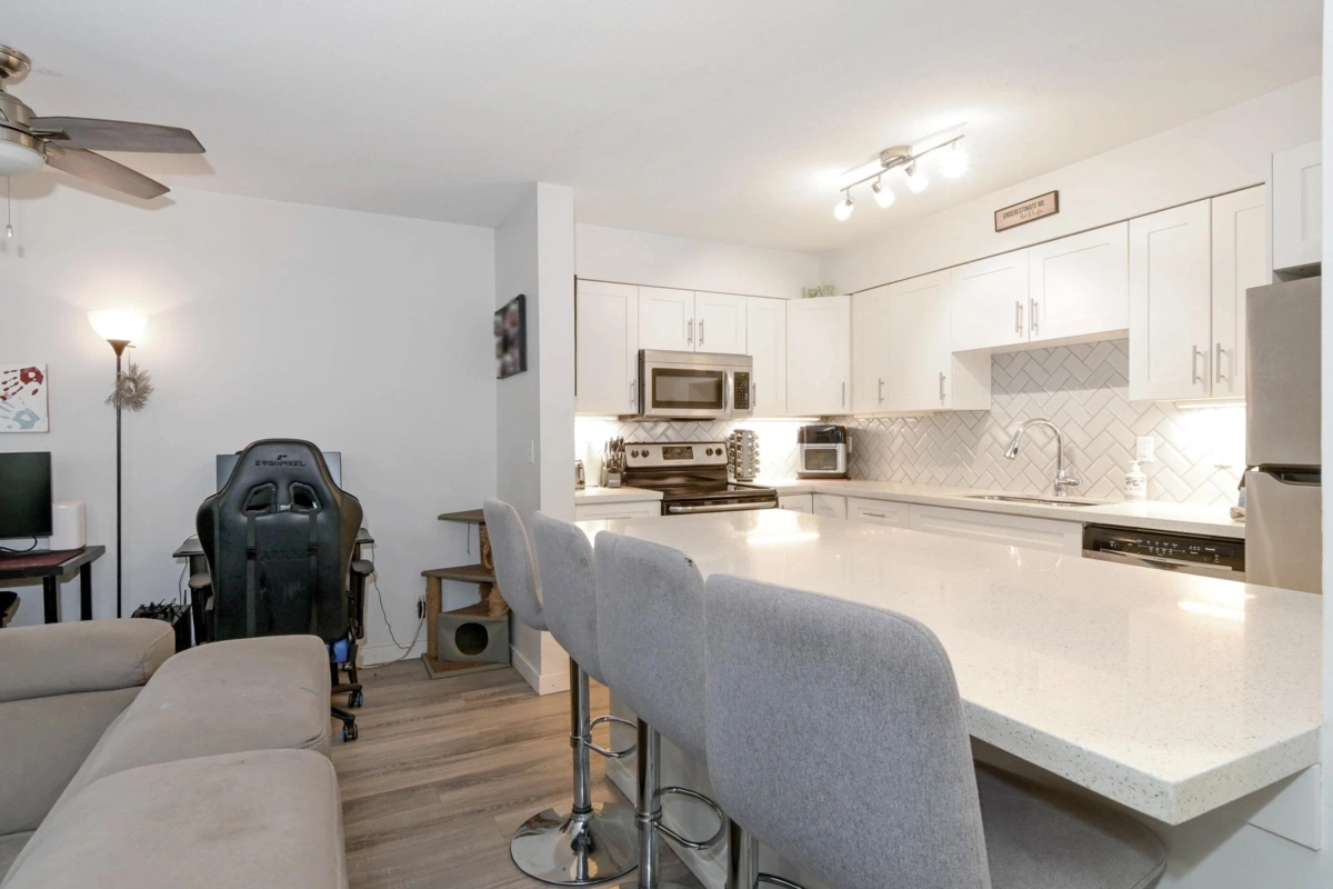 Welcome to Foxborough Hills where the perfect home for FTHB and young families awaits!! This beautifully updated 3 bedroom, 2 full bathroom, townhome offers an open concept main floor perfect for entertaining & daily living, featuring a modern kitchen with quartz countertops, white shaker cabinets, S/S appliances and gas F/P to cozy up to this winter. Kids have too much energy? The playground awaits mere steps from your patio for easy access play and supervision. The neutral colour palette, updated flooring and refreshed bathroom vanities create clean contemporary feel throughout to your bedrooms & bathrooms upstairs. Enjoy single car garage + stall, in a pet friendly (large dogs too!) family oriented complex just steps from West Coast Express and all your daily needs!!