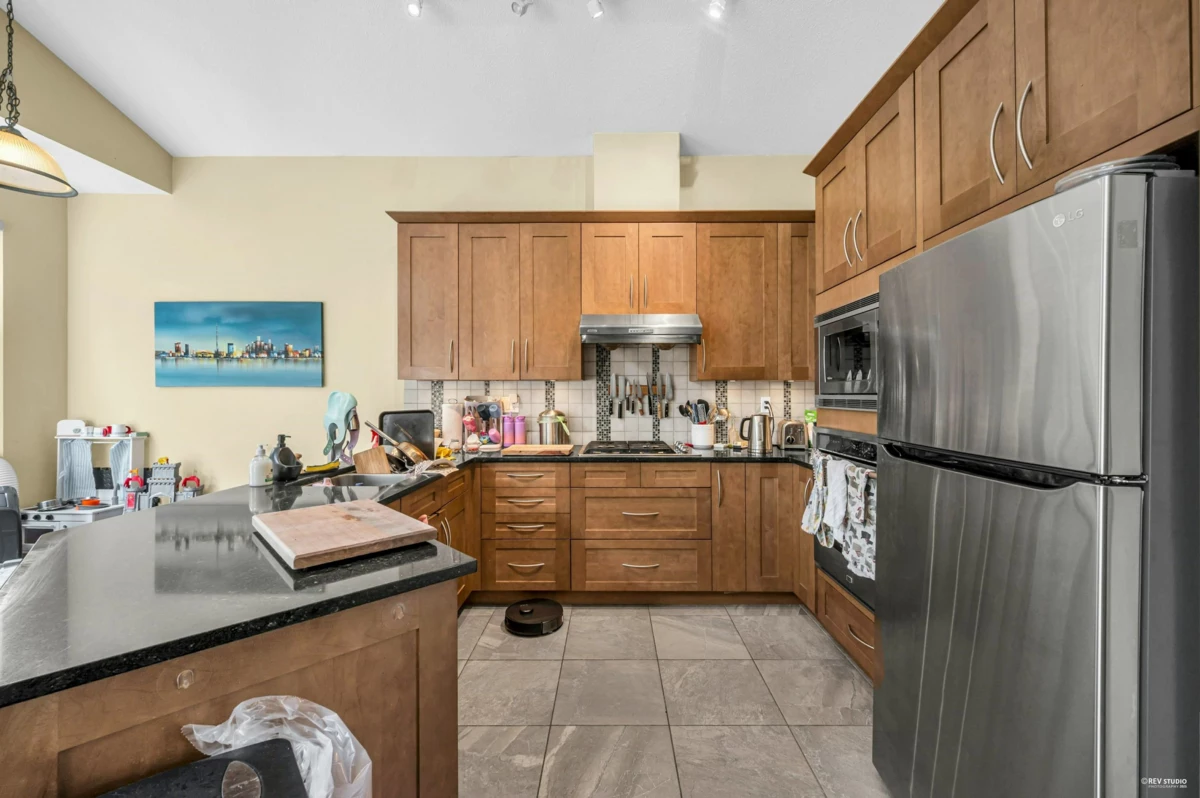 Prestigious gated community “Seasons by the Lake” beside Deer Lake trails! This fully renovated 2-level townhome offers 2,695 sq.ft. of luxury living w/ radiant in-floor heating & soaring 18-ft vaulted ceilings. Elegant living & dining, gourmet kitchen w/ SS appliances, breakfast nook & large balcony w/ lush views. Features 3 spacious bedrooms + versatile den (4th bdrm option), spa-inspired primary ensuite & an enormous rec/entertainment room ideal for theatre, gym or family use. Perfect location - mins to Metrotown, Skytrain & Hwy 1. Rare opportunity in sought-after Oakmount community!