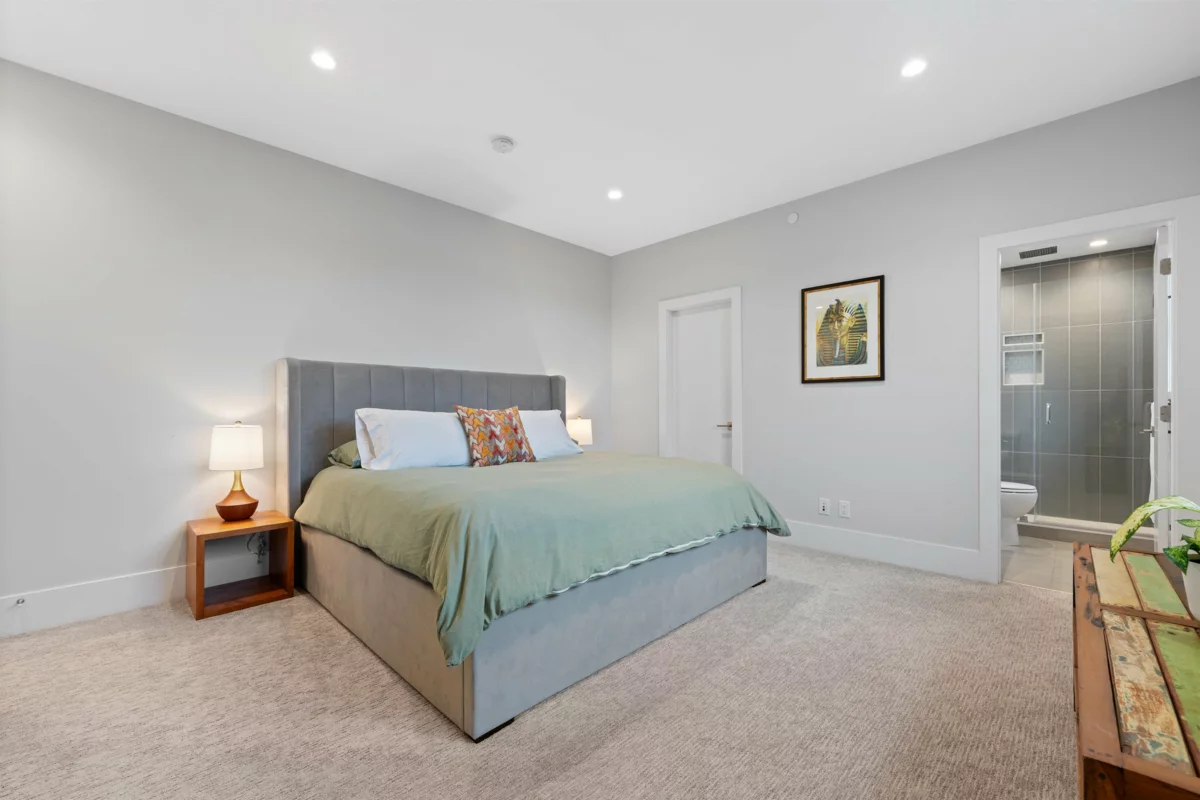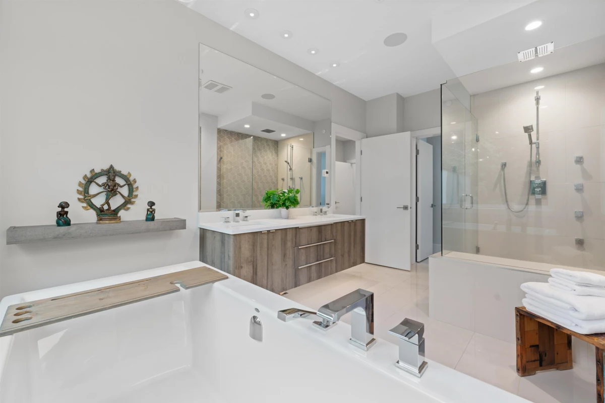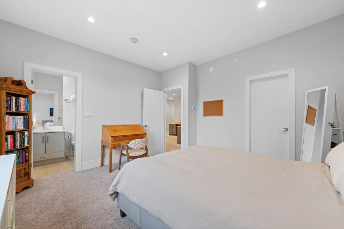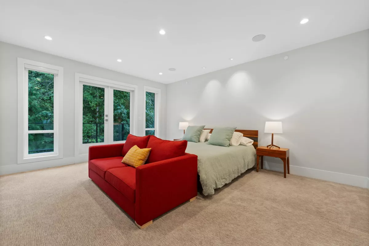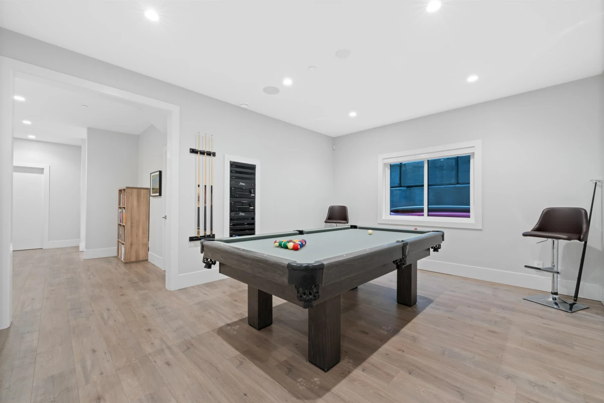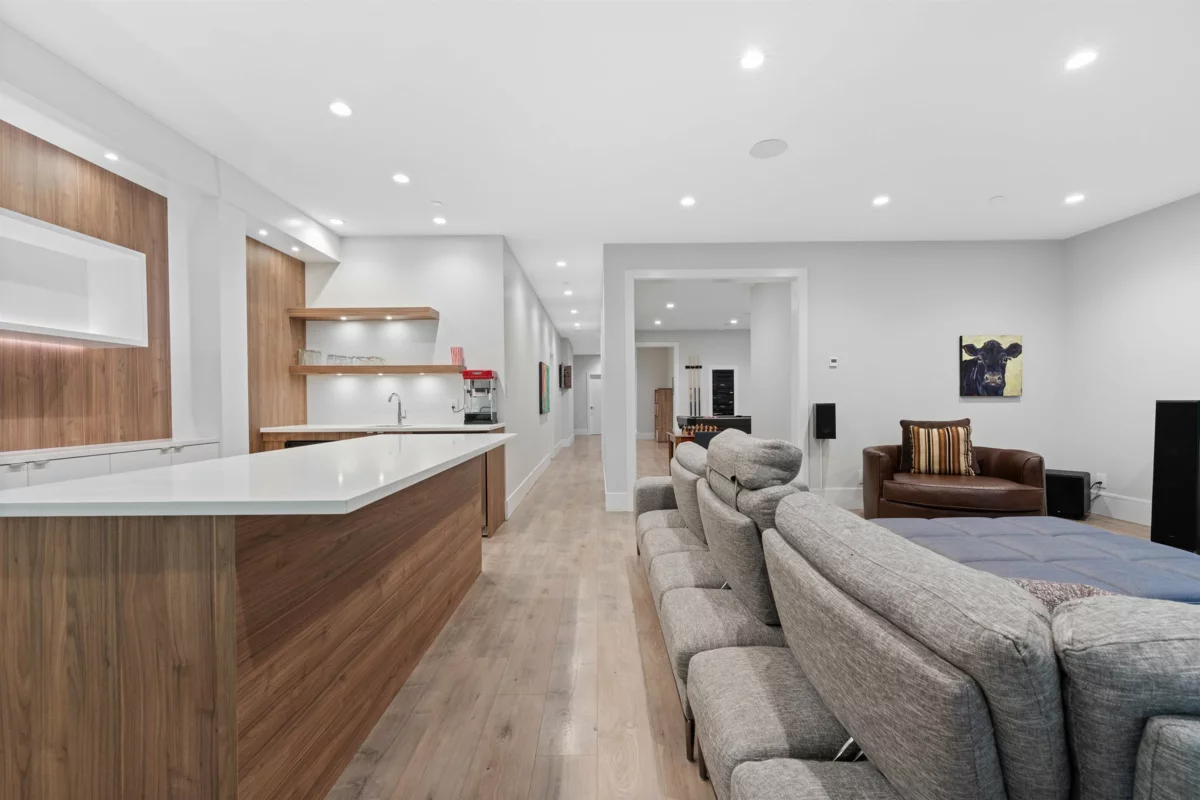 Experience luxury living in University Highlands! Set on a private 1/3-acre lot backing onto Ring Creek, this high-end home offers 4 bedrooms up, each with its own ensuite, including a spectacular primary with a dream walk-in closet and private deck. The main level features a second primary with sitting area, plus a chef-inspired kitchen with dual islands, a soaring 2-story custom concrete fireplace, and spacious dining. The lower level is built for entertaining with an included home theater system,gym area, games room, wet bar with dishwasher, steam shower, and abundant storage. Radiant floor heating, Control4 automation, and direct bike-in/bike-out access to world-class trails enhance the lifestyle. A legal 2-bedroom suite adds flexibility and income potential.