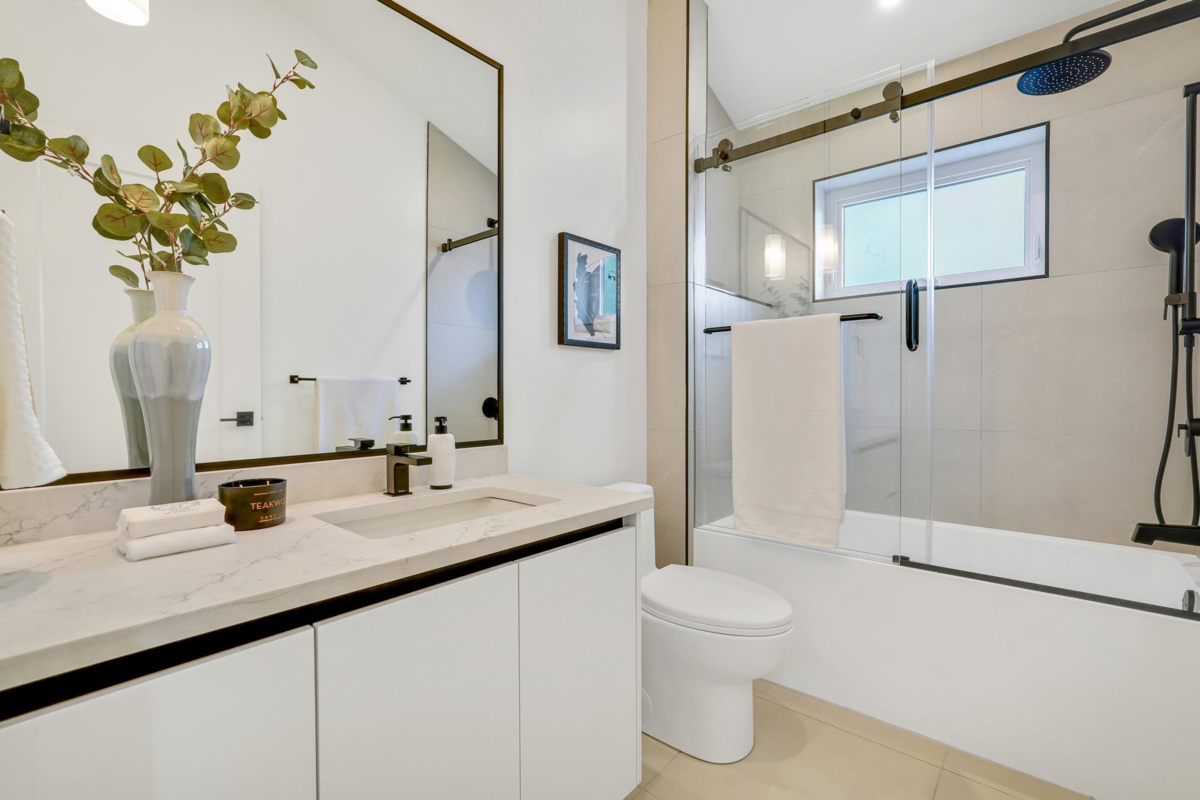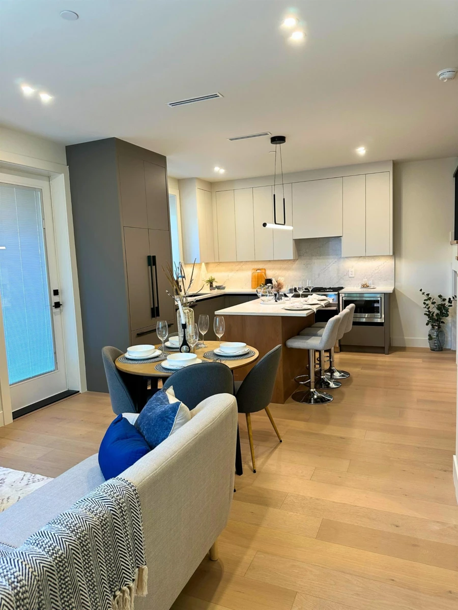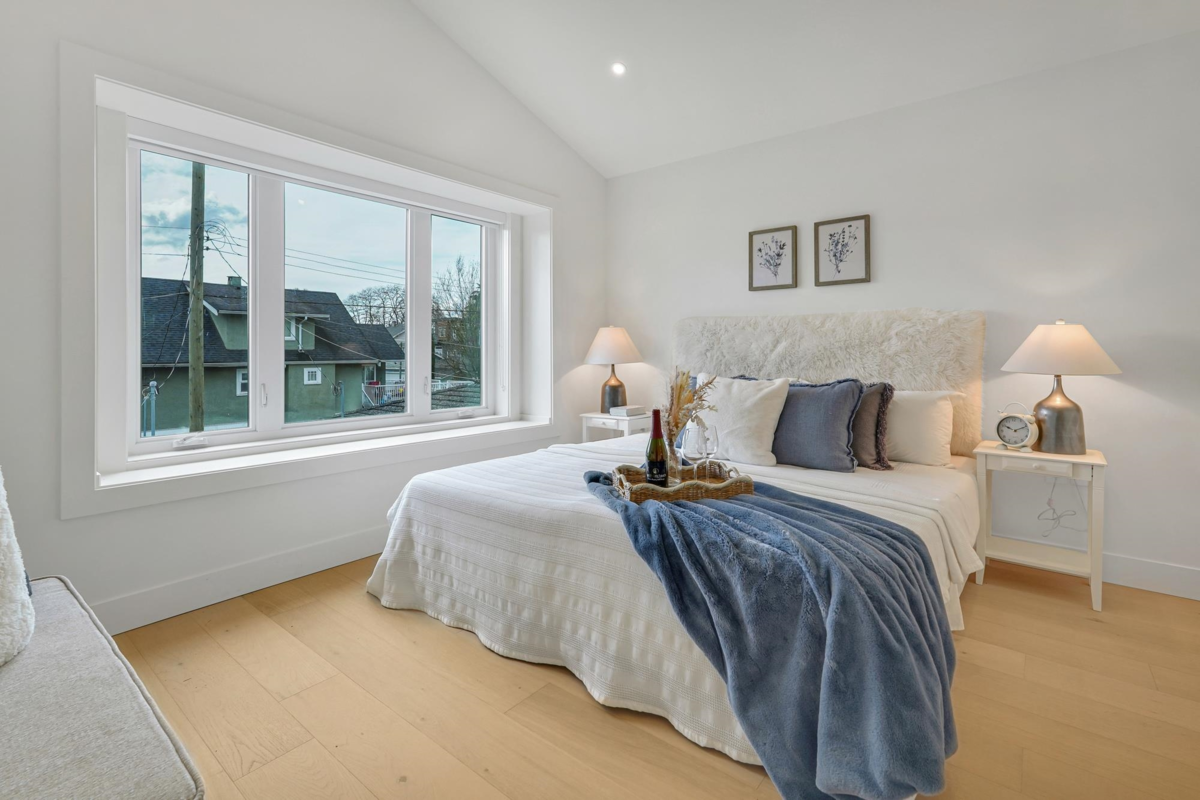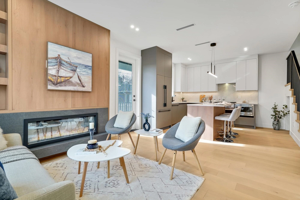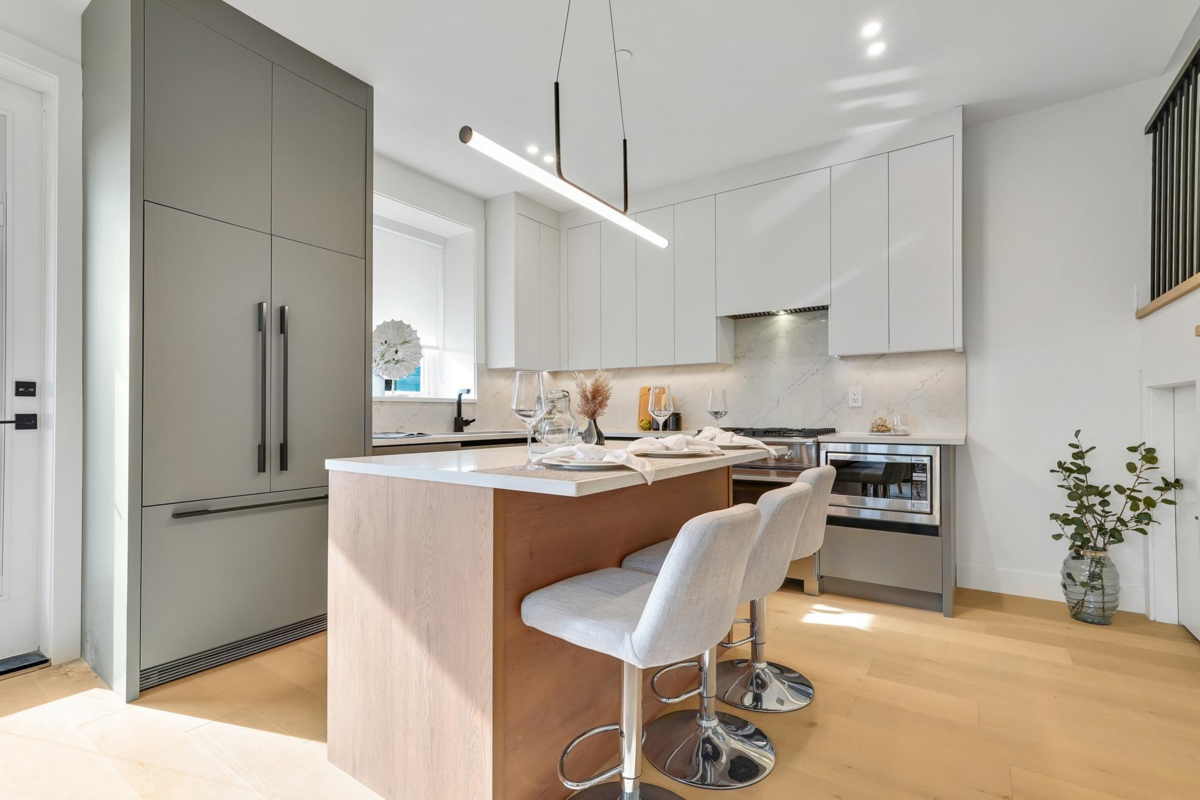 Welcome home to your exclusive boutique Renfrew Duplex. Discover this exceptionally elegant & modern home crafted w/ meticulous attention to detail. This home features 4 beds + 4 baths & a legal suite as a mortgage helper! Enjoy an open concept layout w/ custom millwork throughout, designer powder bathroom, abundant natural light from large window, a gourmet kitchen w/ integrated Fisher & Paykel appliances & floor to ceiling custom cabinetry. A/C, radiant heat, heat pump, security system, cameras add modern comfort. The 1 bedroom legal suite offers flexibility for guests or rental income. Gas BBQ on back deck, fully enclosed spacious yard offer ample room for entertaining. Garage is Level 2 EV Ready. Truly special! Come discover Vancouver's finest!