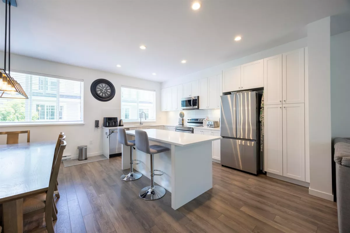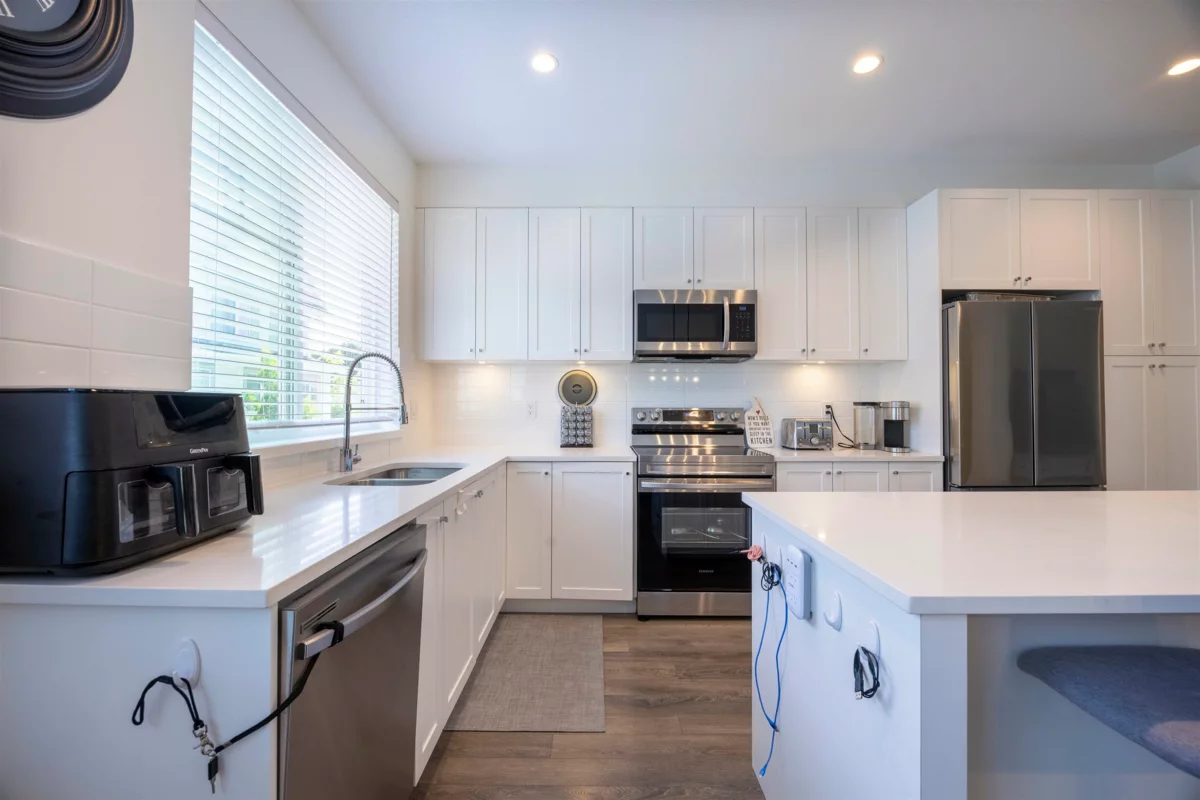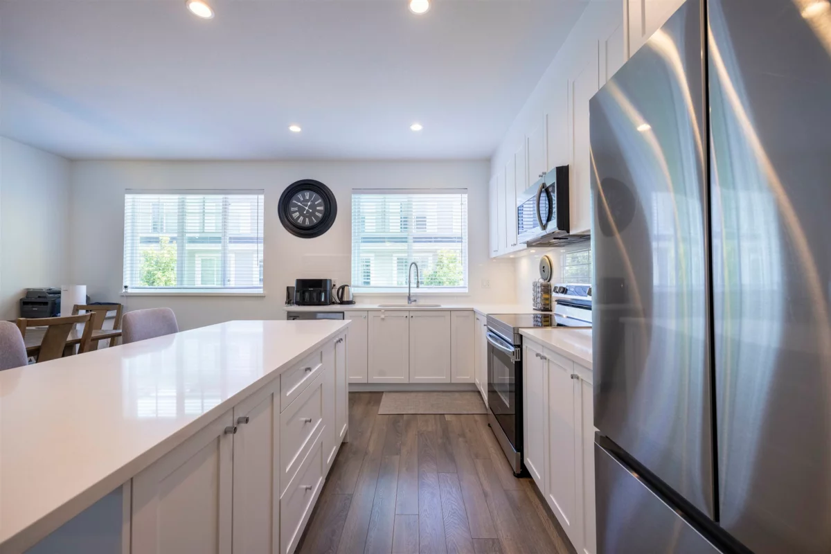 Location-Guildford Center! This beautifully maintained Low strata fee newer Largest Plan 4 bed 4 bath townhome built by renowned Dawson & Sawyer! This spacious home features a side-by-side car garage, east facing, a bright, wide open-concept layout with a modern kitchen granite countertops, high end appliances, generous dining area, cozy living room. The spacious ensuite bedroom on the ground level is a bonus for seniors. Conveniently located right in front of William F. Davidson Elementary, Johnston Heights Secondary with IB program, Lionel Courchene Park, Guildford Mall, T&T Supermarket, High ranked Private school Pacific Academy, library, various restaurants and clinics. Only a 5-minute drive to Highway 1.