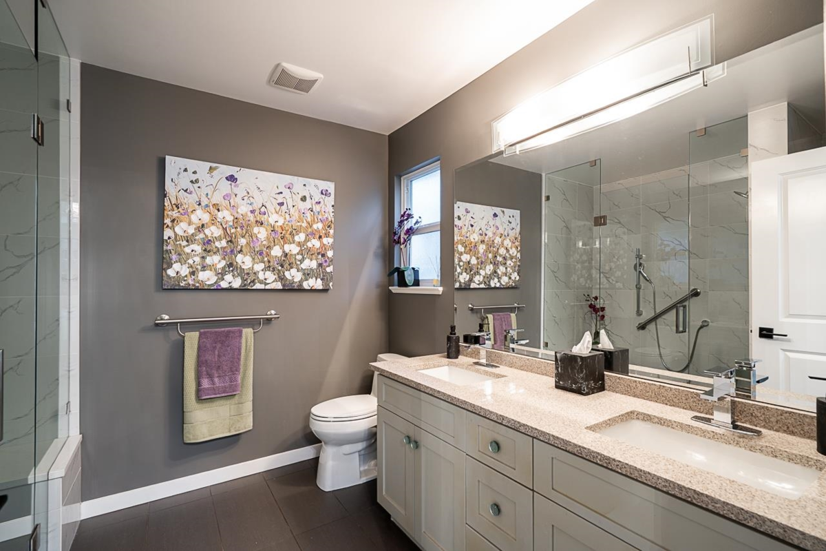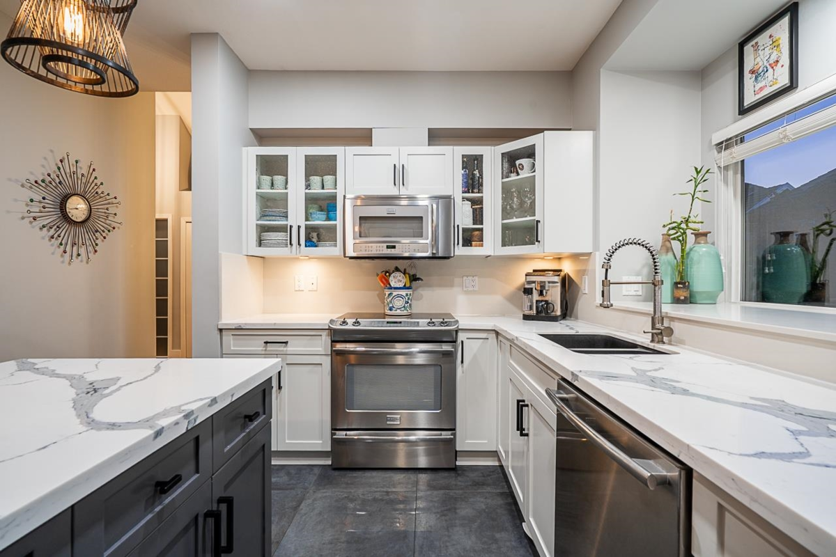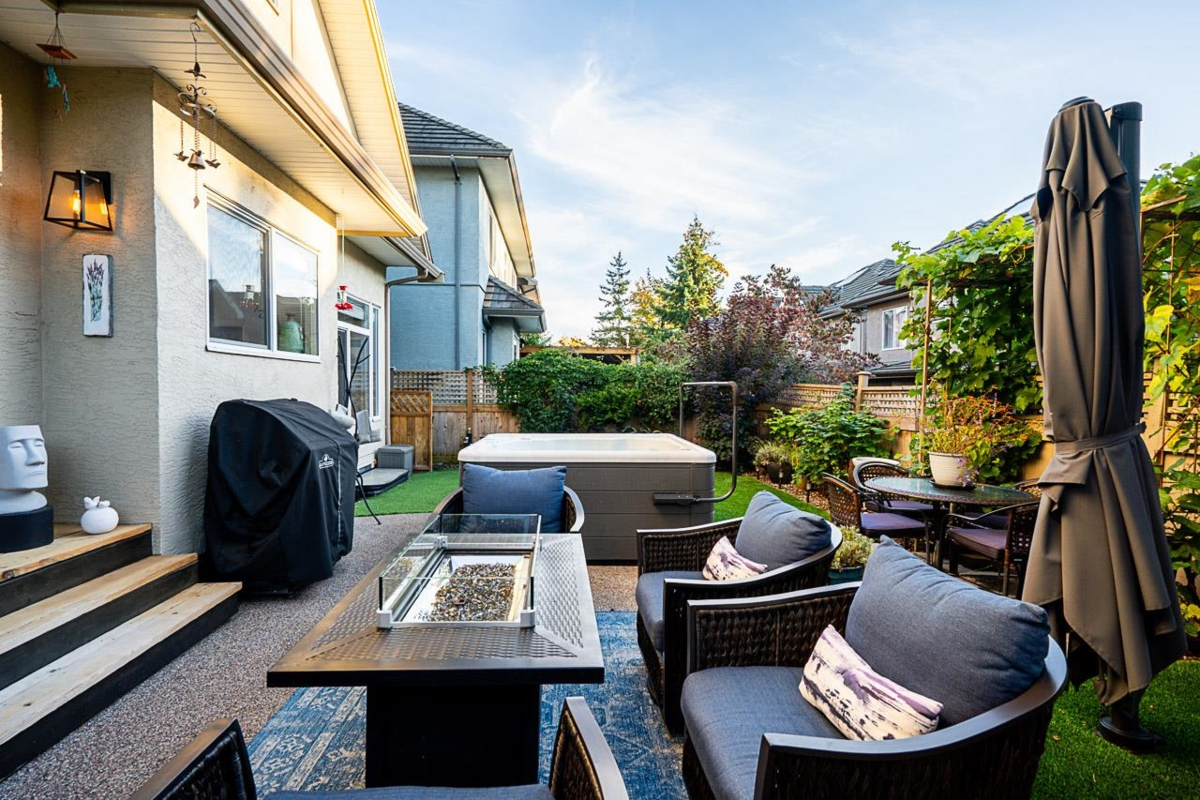 Beautifully RENOVATED FULLY DETACHED HOME in the sought-after Rockwell complex in Rosemary Heights! This spacious residence features 4 bedrooms / 3.5 baths, including 3 bedrooms on the upper floor & a fully finished basement with an additional bedroom, storage & rec room. UPDATES include: renovated bathrooms w/heated floors, newer flooring, newer carpets, quartz counters, painted cabinets w/pull out shelves, new door hardware, lockets & hinges, designer lighting, LED pot lights, linear fireplace w/custom surround, new appliances, ceiling fans, Heat Pump/AC, HWT, hot tub, security system & more. Exterior Upgrades feature extended Sierra Stone patio, basalt stone patio & metal arbor, extended cedar steps, artificial turf & new garden doors. An absolute must see property!