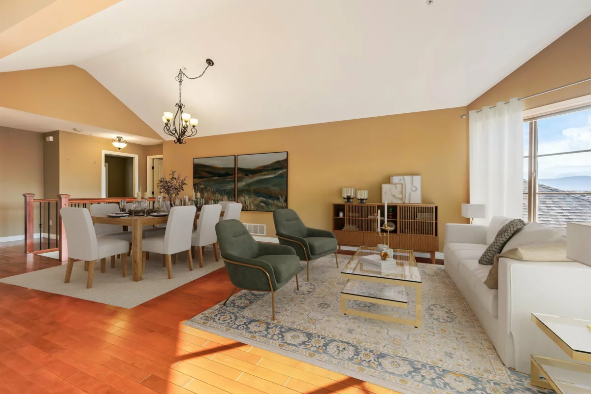 Perched high above the valley in the coveted gated community of Majestic Ridge, this luxurious townhouse offers breathtaking, ever-changing views of Mount Baker & the Fraser Valley. The pristinely maintained complex has seen recent upgrades including roof, exterior paint & decks, giving peace of mind for years to come. Surrounded by nature, Unit 35 enjoys a uniquely private setting that enjoys wildlife, soaring eagles & access to walking/hiking/biking trails - perfect for the outdoor enthusiast. Inside, expansive windows, vaulted ceilings & over 3,100 sqft create an airy, sunlit retreat, complemented by a new furnace & A/C. A beautifully appointed kitchen, inviting gathering areas, view decks perfect for relaxing & a convenient automated watering system make this home a welcoming escape.