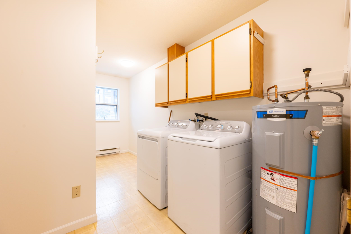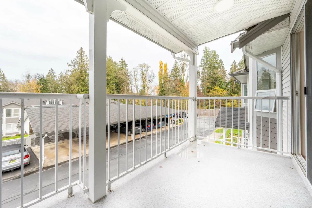 Set in a well-kept four-plex within a larger complex, this bright upper-level townhouse offers house-sized rooms and the ease of strata living. On the far side of the property, away from 224th Street, it enjoys quiet surroundings. Inside, generous rooms, great natural light, and windows on both north and south sides create excellent cross-ventilation. Recently repainted, the home is a blank canvas ready for new ideas. Two decks—one sunny south-facing, one covered with mountain and park views—extend the living space. A large laundry/utility room with a window offers options for an office or extra storage. 1 covered above-ground parking stall, shared storage, and attic access included. The proactive strata has a strong contingency fund and well-maintained common areas.