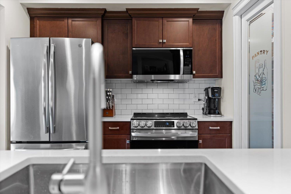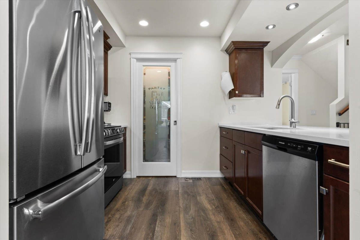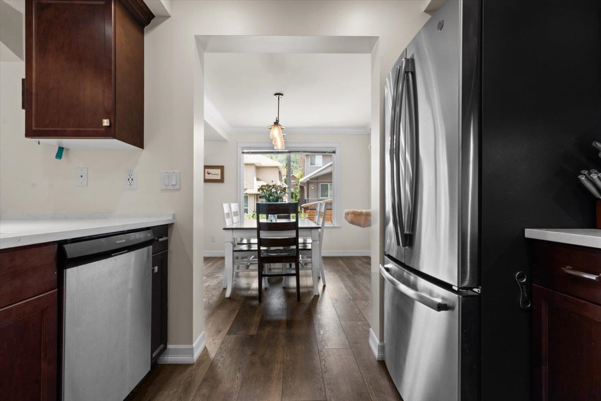 Your Search for a spacious family townhome ends at Cobblestone Terrace! Over 2100 sqft in popular Promontory. This spacious 4-bed (potential for 5th) townhome boasts a large bedroom with an ensuite (or could be flex space) on the main, bright open kitchen with quartz counters, new S/S appliances, large step-in pantry & stunning new vinyl floors. Enjoy tons of natural light, cozy gas fireplace & covered deck for year-round BBQs. Upstairs has 3 generous bedrooms with walk in closets, spa-like ensuite with soaker tub, in the PB and below you will find a family room that can be divided for a 5th bedroom plus a huge fenced yard, parking for 4, A/C & built-in vac! Must be seen to be appreciated ! No size restrictions for two of your furry friends and Rentals are allowed! Make your move today !
