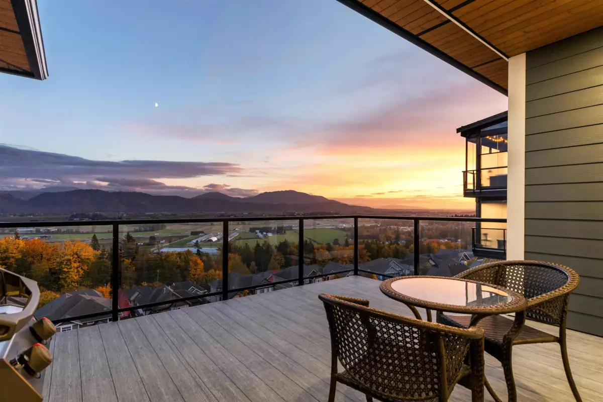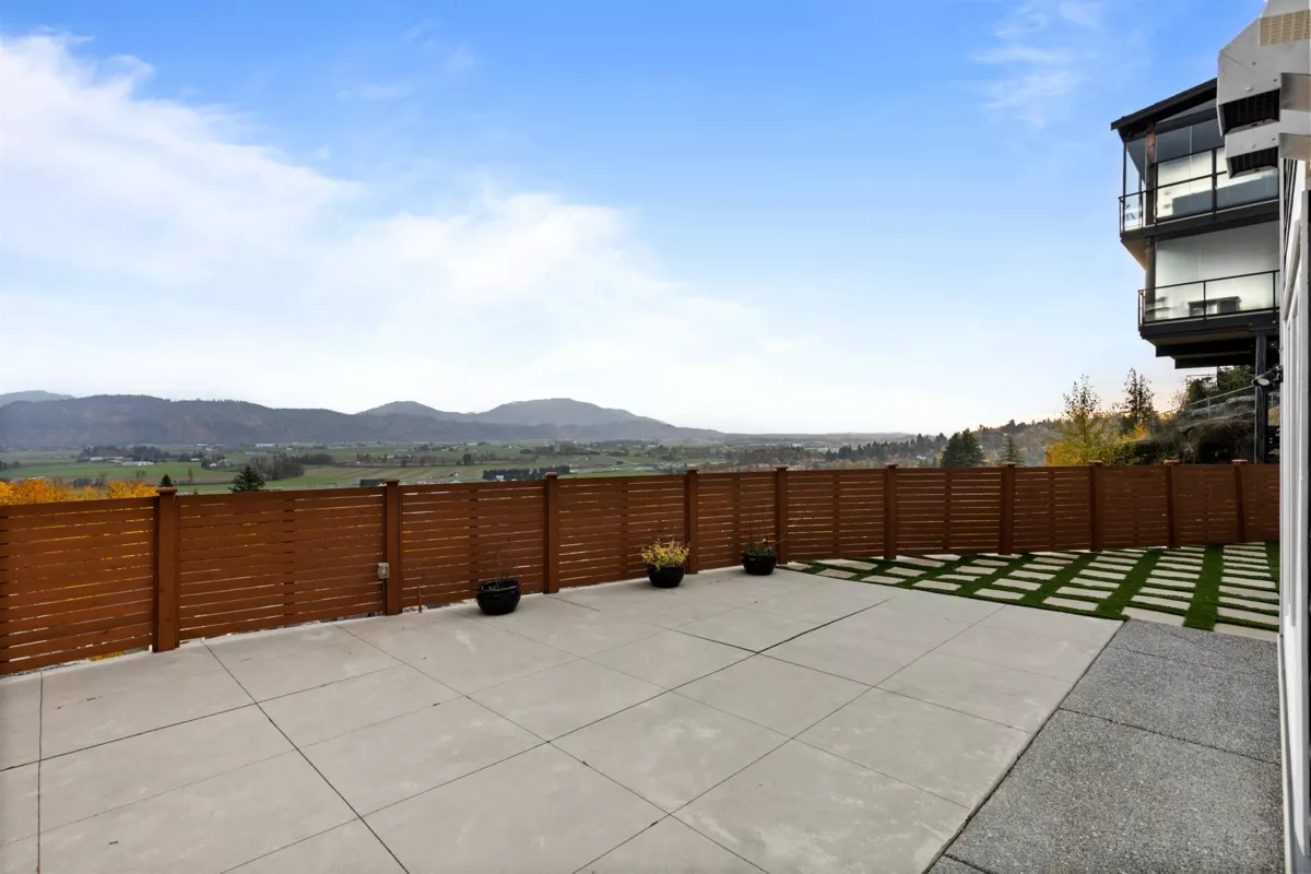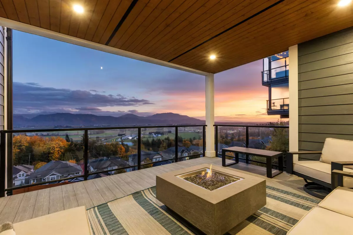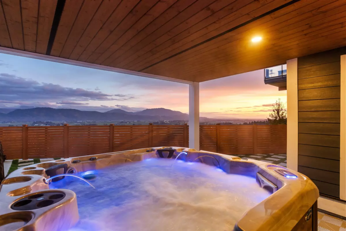 Experience luxury living here! Nearly 5,000 sqft reverse 2 storey+bsmt home with unobstructed Mt Baker & Valley views! The main floor features an open-concept design with a chef’s kitchen boasting Bosch appliances, custom cabinetry and gold accents along with a stunning primary bedroom with a spa-inspired ensuite with dual walk-ins, and a second bedroom/flex room perfect for an office or guest room. The lower level offers another primary bedroom with 2 additional rooms, full bath, large rec room with its own entry, and a covered balcony. The bottom level includes a media room with wet bar, full bathroom, and another walk-out access to the covered hot tub along with a private one bedroom suite with separate entry. Home also features A/C, triple car garage, irrigation, & low maintenance yard