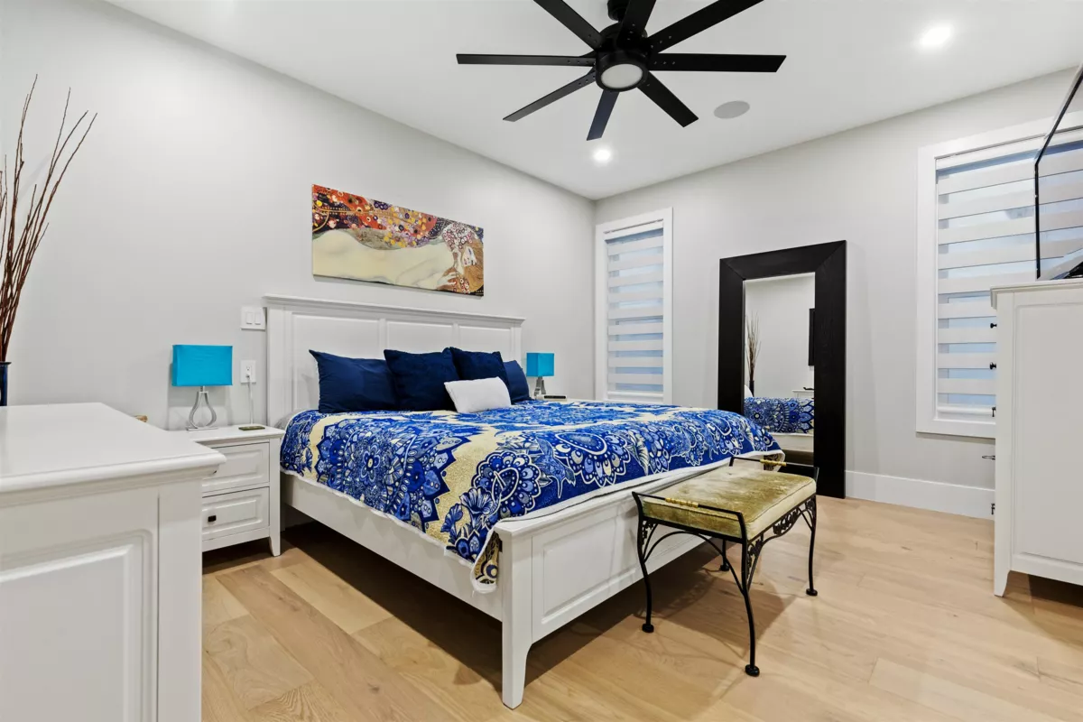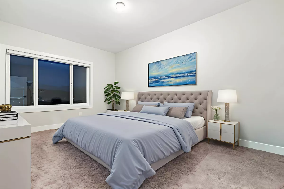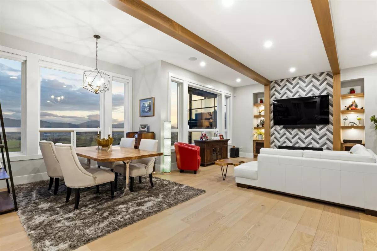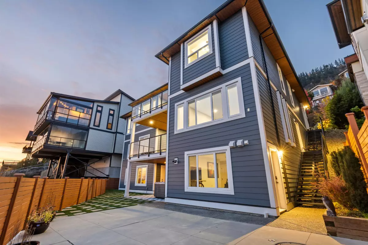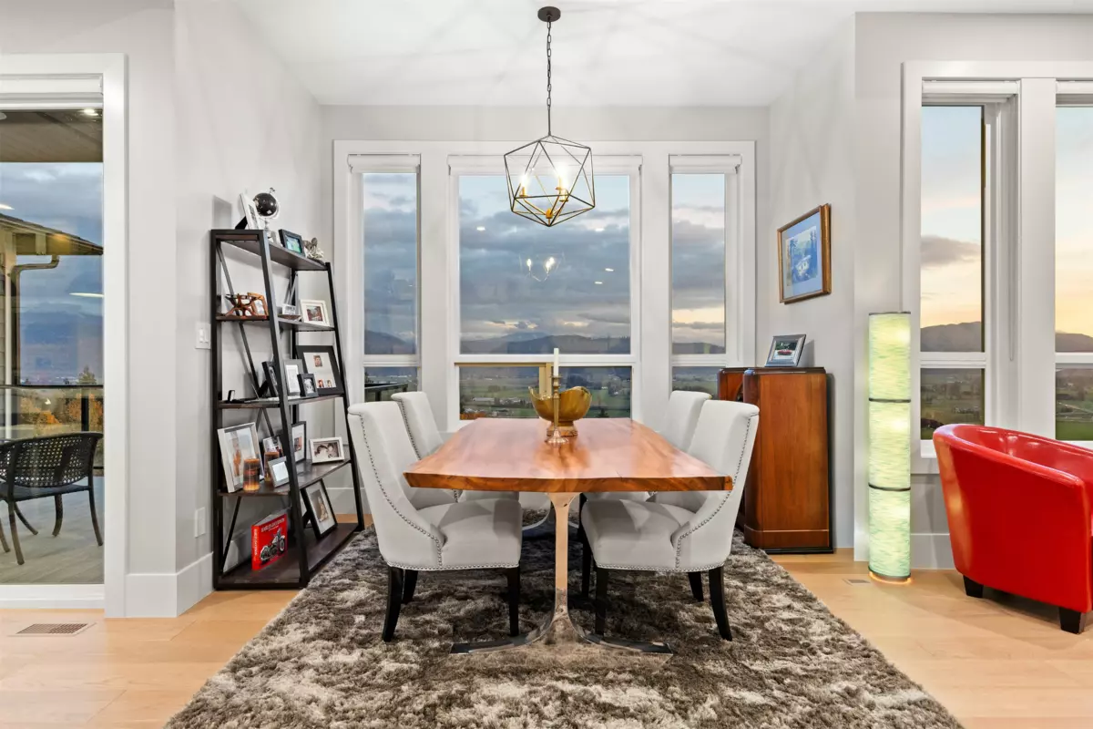 Experience luxury living here! Nearly 5,000 sqft reverse 2 storey+bsmt home with unobstructed Mt Baker & Valley views! The main floor features an open-concept design with a chef’s kitchen boasting Bosch appliances, custom cabinetry and gold accents along with a stunning primary bedroom with a spa-inspired ensuite with dual walk-ins, and a second bedroom/flex room perfect for an office or guest room. The lower level offers another primary bedroom with 2 additional rooms, full bath, large rec room with its own entry, and a covered balcony. The bottom level includes a media room with wet bar, full bathroom, and another walk-out access to the covered hot tub along with a private one bedroom suite with separate entry. Home also features A/C, triple car garage, irrigation, & low maintenance yard