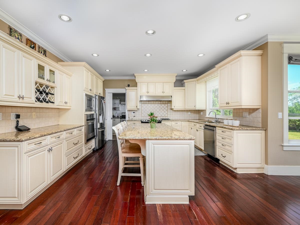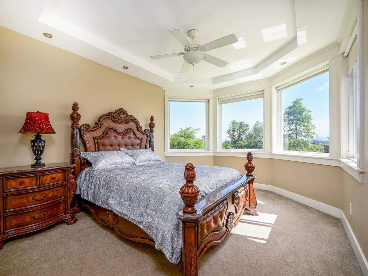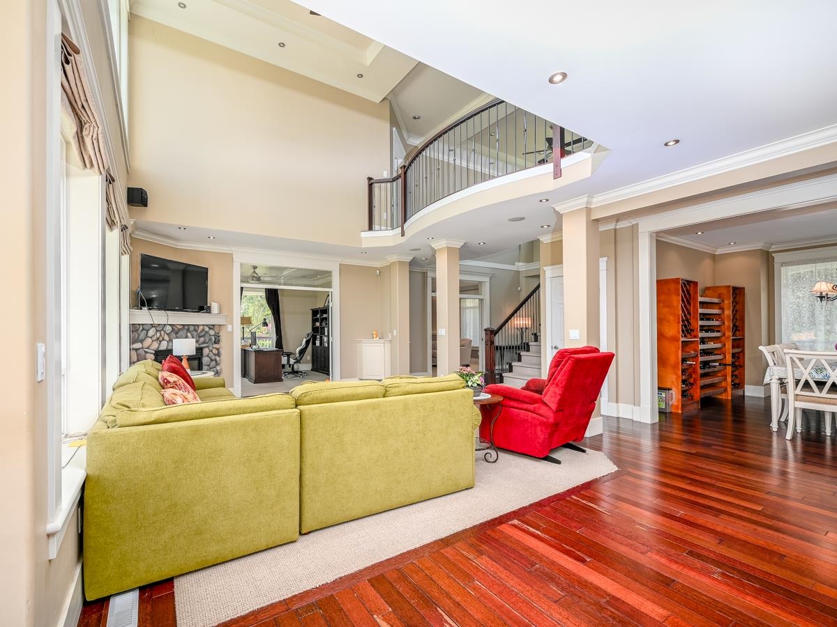 BC Assessment Value $4,054,000, Rarely found luxury 5905 sf home on 40554 sf lot, Huge yard with 180 degree mountain view in beautiful Morgan Creek community. SENSATIONAL SWEEPING PANORAMIC MOUNTAIN & PASTORAL VIEWS from large decks, patios, balconies and huge floor-ceiling view windows and kitchen! Stunning custom quality built 2 level & walkout daylight basement. Gourmet kitchen and wok kitchen with big granite island & stainless appliances. 19' & 9' ceiling, Brand new hardwood floor on Main floor. Newly renovated basement with huge family and media room.