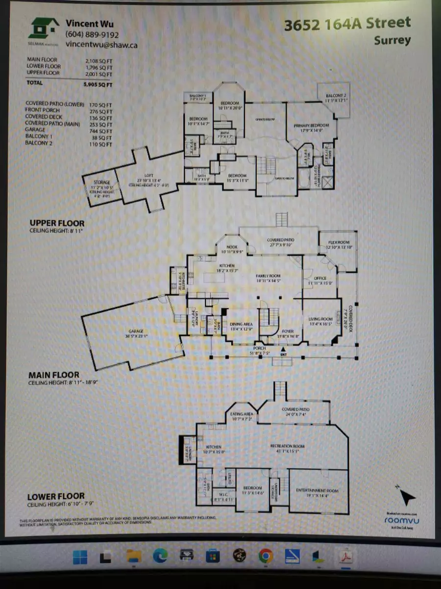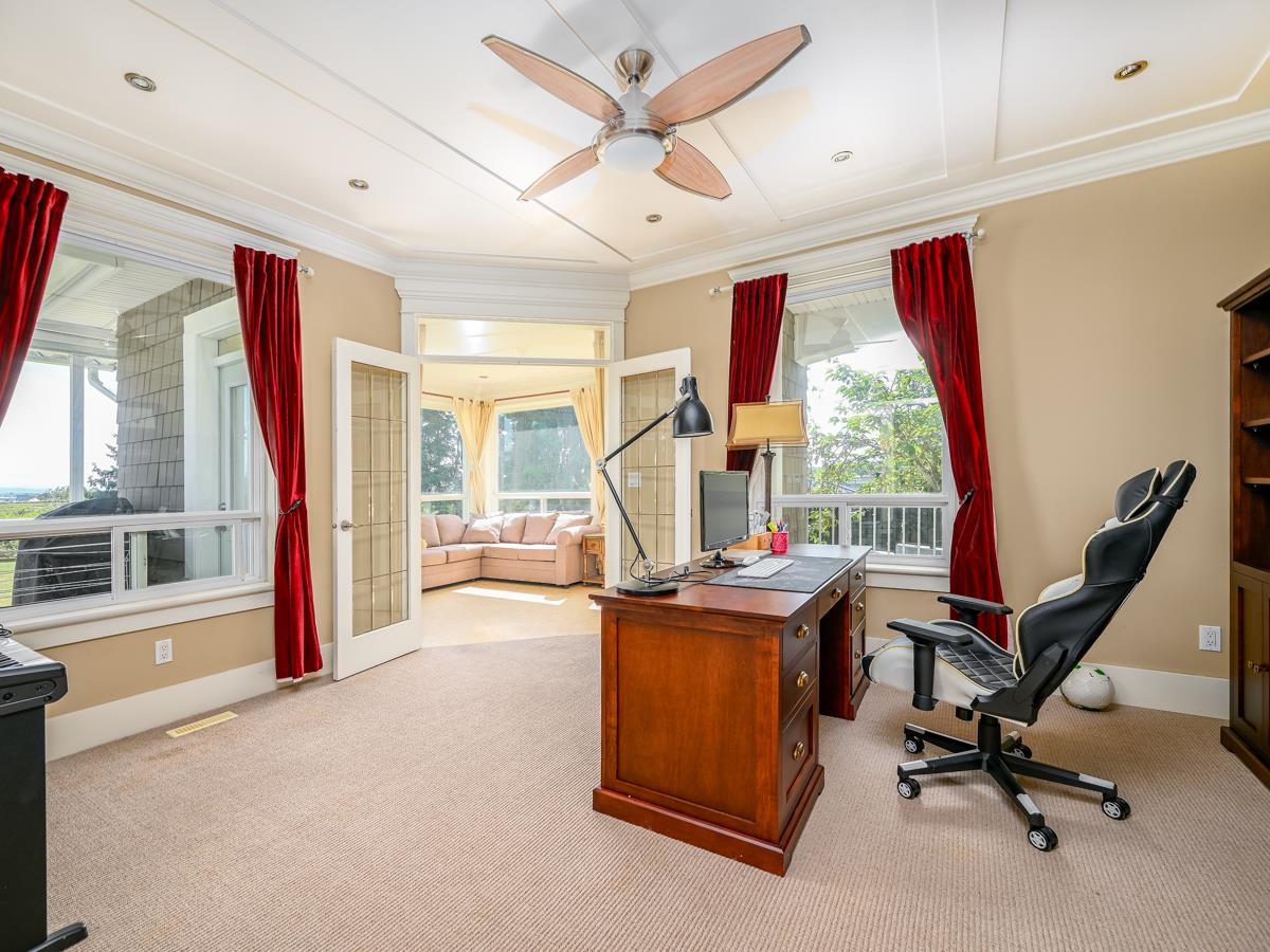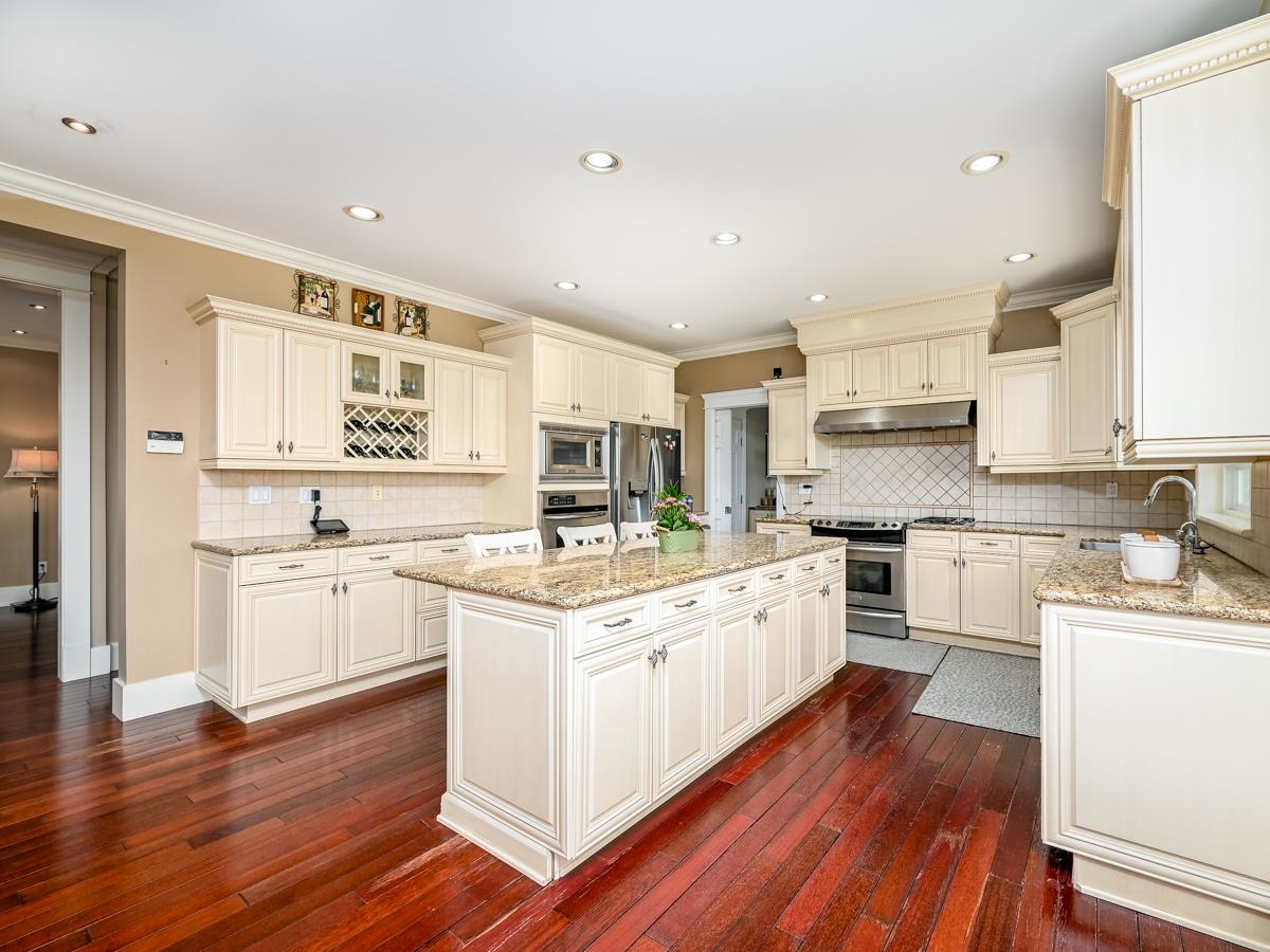BC Assessment Value $4,054,000, Rarely found luxury 5905 sf home on 40554 sf lot, Huge yard with 180 degree mountain view in beautiful Morgan Creek community. SENSATIONAL SWEEPING PANORAMIC MOUNTAIN & PASTORAL VIEWS from large decks, patios, balconies and huge floor-ceiling view windows and kitchen! Stunning custom quality built 2 level & walkout daylight basement. Gourmet kitchen and wok kitchen with big granite island & stainless appliances. 19' & 9' ceiling, Brand new hardwood floor on Main floor. Newly renovated basement with huge family and media room.