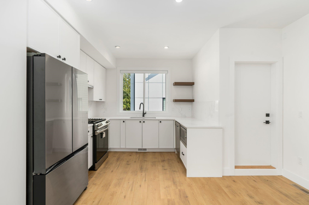 Welcome to JASPER a boutique townhome community designed by award winning Sarah Gallop. This spacious 1,673 sqft CORNER UNIT offers 4 beds, 3 baths, open living, a large kitchen and a SPICE KITCHEN. Enjoy an abundance of NATURAL LIGHT, 2 gas ranges, quartz counters, solid wood cabinetry, wide plank flooring, A/C, energy efficient gas furnace, SIDE BY SIDE GARAGE Upstairs you have three good sized bedrooms and a primary bedroom with a beautiful ensuite. Feels just like a single family home. Centrally located steps away from parks, schools, and transit. Shows 10/10! Book your private showing now.