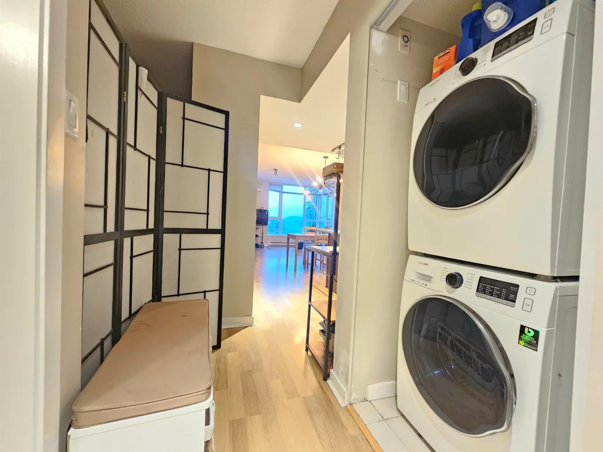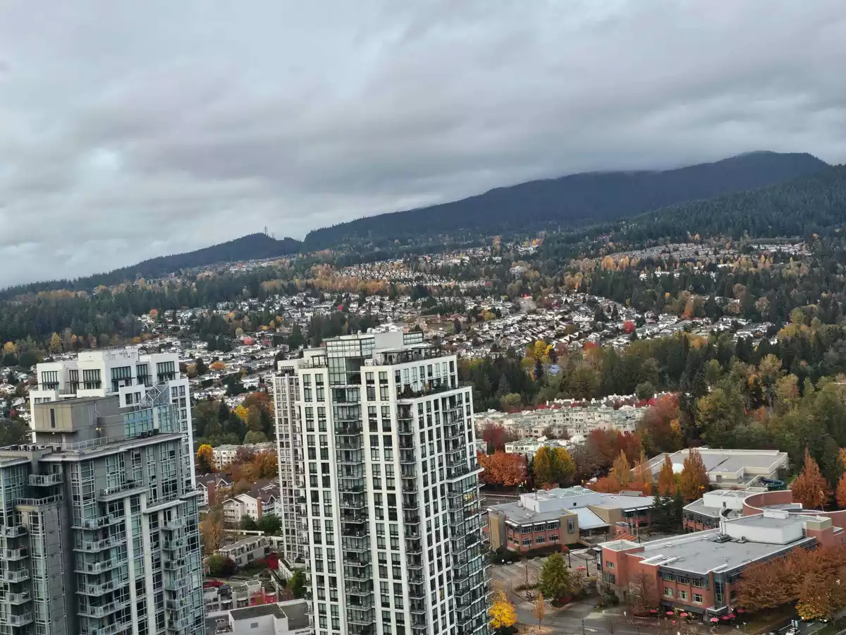 Welcome to Obelisk! Step into this bright and spacious 2-bedroom + den, 2-bathroom corner unit features an open-concept layout with floor-to-ceiling windows that flood the home with natural light and an air conditioning. The flxible den is perfect as a home office or third bedroom. Enjoy the large balcony with city and mountain views! Experience modern living with outstanding building amenities, including a fully equipped gym, sauna, and party room. Ideally situated in the heart of Coquitlam, just steps from Henderson Place, Coquitlam Centre, the library, schools, restaurants, public transit, and the SkyTrain. 2 parking stalls and 1 storage locker!