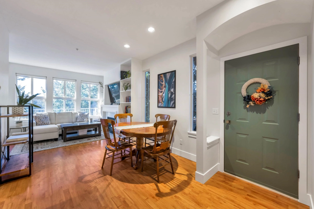 Welcome to The Falls in scenic East Abbotsford! This family friendly spacious 3-bed, 3-bath townhome features a well-designed main level with kitchen, dining, living, and one of the largest sun drenched south facing decks in the complex. Being an end townhome it has additional side windows. Upstairs offers a Spacious Mstr Bdrm with walk-in closet and ensuite, plus two more generous bdrms. The basement includes a large kid friendly rec room, laundry, bathroom, storage, and private patio. This townhome is has been recently renovated, spotless clean and move in ready. It's located very near 6 visitor parking stalls for your guests. Complete with a full size Double Garage including ceiling storage racks. Close to parks, schools, shopping, and more—this Townhome has it all and priced to sell!