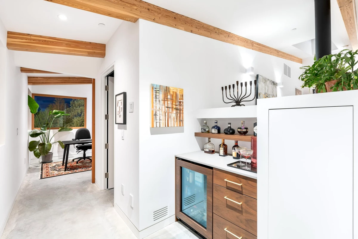Impressive Randy Bens designed 4732 SF residence, sophisticated design & cutting-edge functionality on 3 levels. Triple-glazed tilt & turn Josko windows w/durability & aesthetic appeal. Living & dining with floor-to-ceiling sliding doors, chef’s kitchen, top-of-the-line appliances incl Sub- Zero fridge & freezer, Fulgor range w/six burners, AEG steam oven, dual Asko dishwashers, black walnut cabinetry by Paradigm Kitchen Design. Enrique Morales nook & dining table, 4 bed incl primary, 6 bath, skylights add brightness & openness to upper level. Down incl family rm & 3 beds, radiant heating & A/C. Polished concrete floors, staircase w/black walnut steps & unique handrail, 9ft solid core doors. Outdoor amenities incl 15’ x 30’ pool w/spacious deck & grassy backyard. Architectural brilliance!