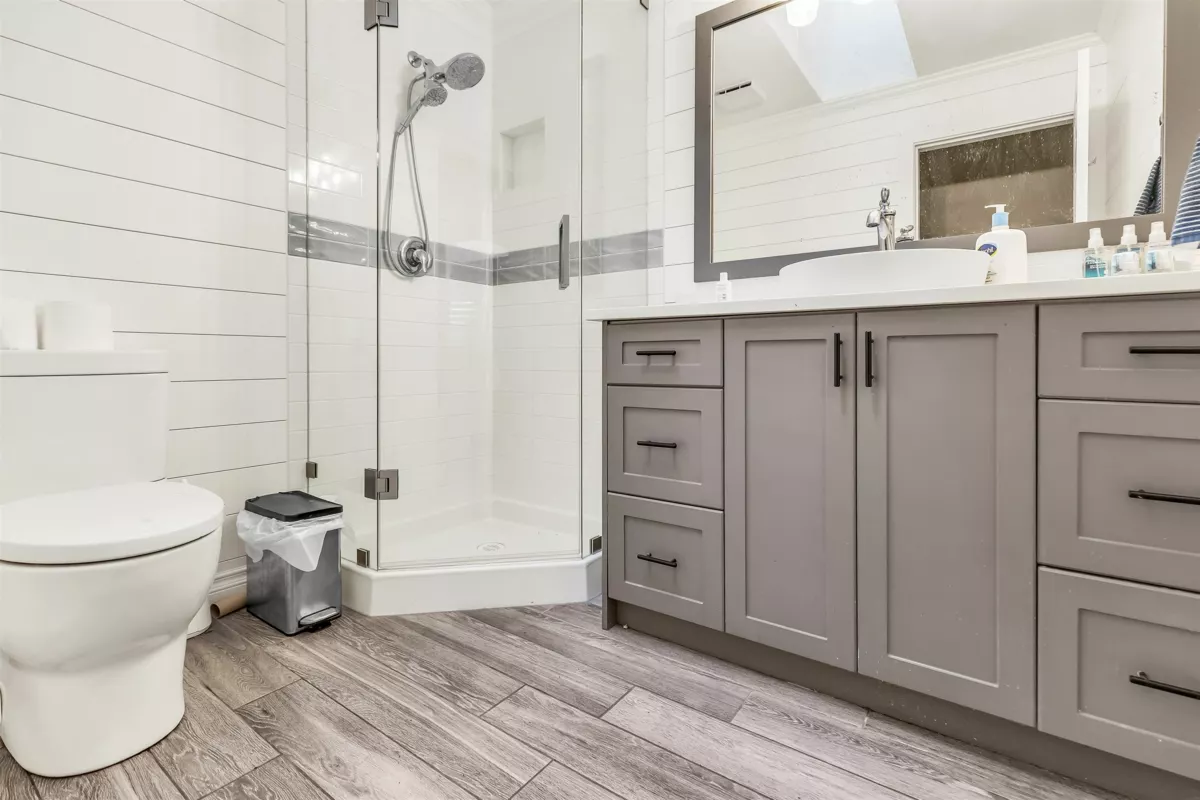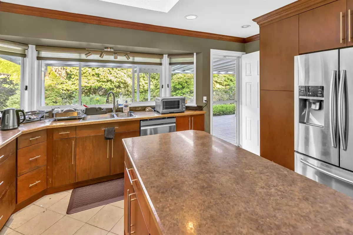 Located in one of East Abbotsford's best areas - Sandy Hill! Desirable Rancher on a corner lot with 2 road frontages featuring 3 Bedrooms + 2 Bathrooms and over 1,400 sq ft of living space - one level living! Open concept layout boasting a living room upon entry with gas fireplace, dining room, and an updated kitchen with S/S appliances including gas range, skylight, large island, and with a back door leading out the covered patio. Primary bedroom has a walk in closet and spa like ensuite with walk in tiled shower and separate soaker tub. 2nd + 3rd bedroom/ den with laundry and updated full bathroom with stand up shower. Expansive backyard with a storage shed and side yard for extra storage. 4' crawl space, HW on demand, AC, tongue and groove hardwood flooring, & more. Easy living here!