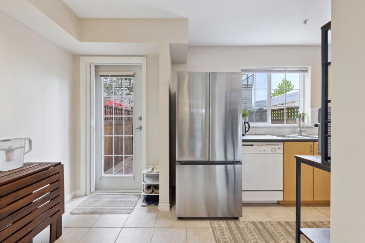 Welcome to Guildford Park Place — a well-managed community in a central Guildford location. This spacious 4-level townhome offers 3 bedrooms, 3 bathrooms and 1,435 SQFT of living space, with an extra DEN/ STR (4th bed) room conveniently located off the garage on the ground level. Updated FLOORING & Appli, the second level features a bright living and dining area, plus a south-facing patio off the kitchen—perfect for BBQs or pets. The private top floor is dedicated to the primary suite, complete with ensuite, walk-in closet & outdoor deck. Amenities including two outdoor pools, two tennis courts, and a fully equipped fitness centre. Walkable to schools, shopping, transit. ATTACHED GARAGE.