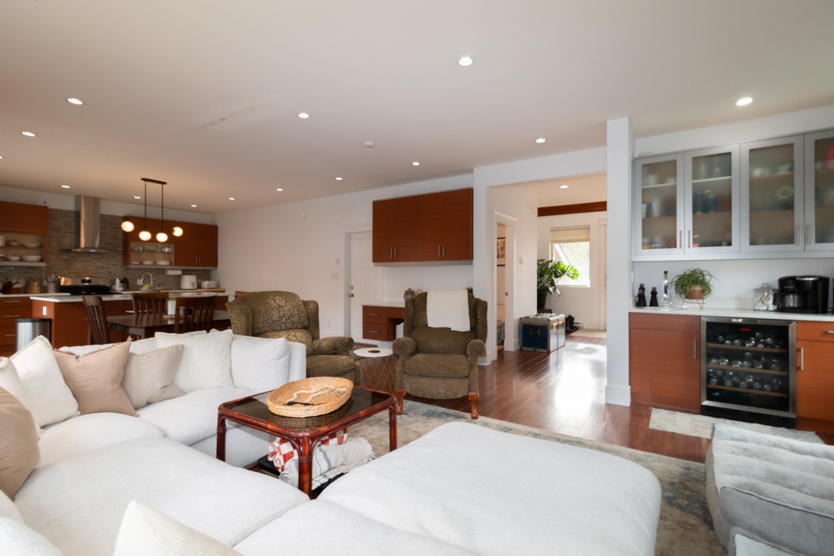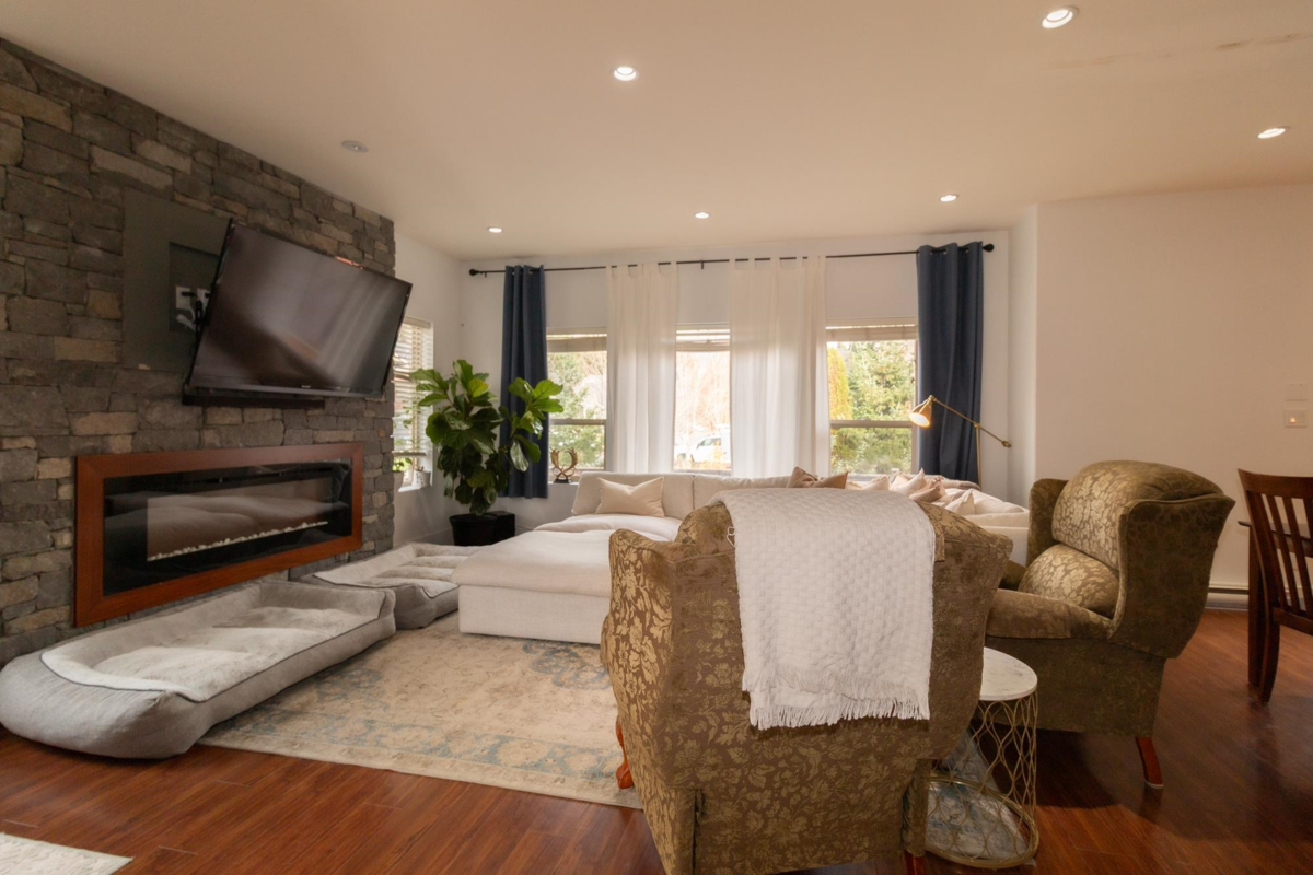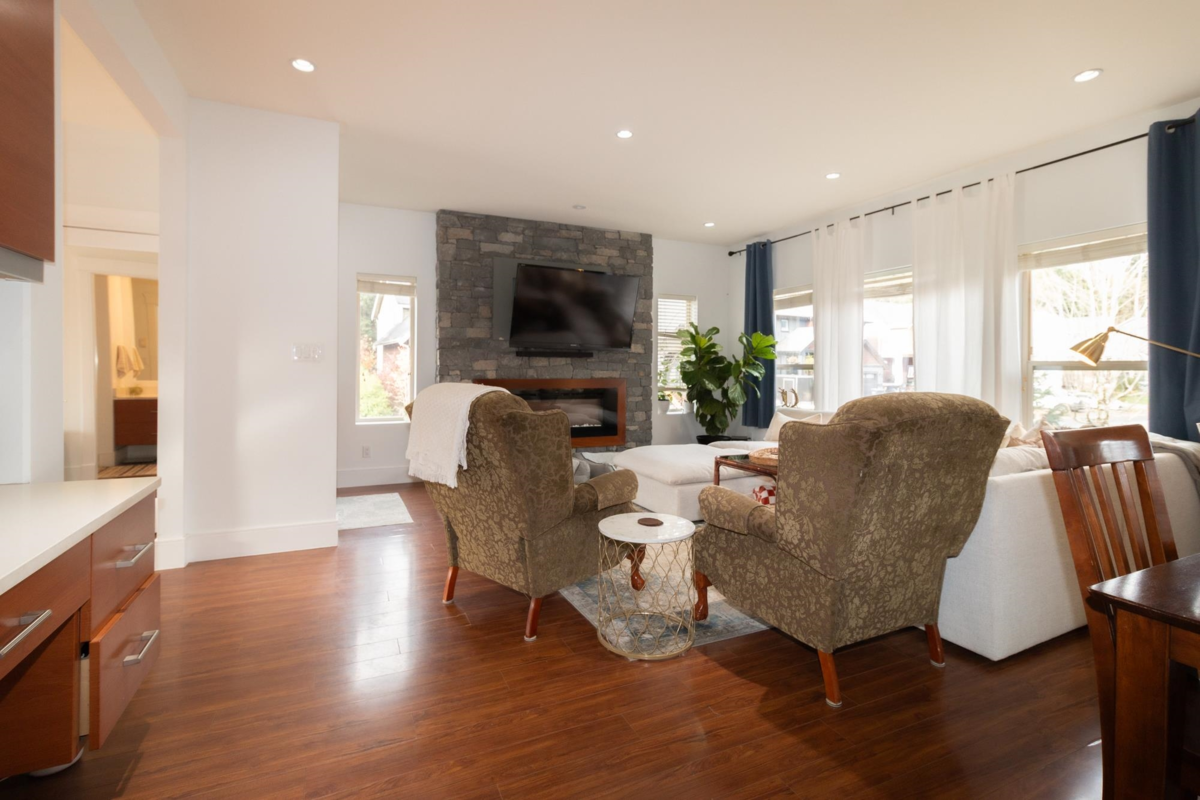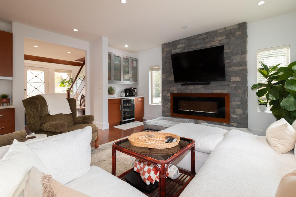 Located only steps from Brennan Park Recreation centre; this 3 bedrm, 3 bathrm plus large flex space detached home has a full sized driveway, large 2 car garage w/ ample storage throughout & in crawl space. The open flr plan effortlessly integrates the living, dining & kitchen areas, creating a seamless flow for both everyday living and entertaining guests. The main living area features natural stone fireplace, bar area including bar fridge & sink, the kitchen boasts stainless steel appliances, polished stone countertops, quality cabinetry, w/ oversized island. Step outside from from sliding glass doors onto private deck and enjoy the fully fenced private yard. Walking distance to soccer fields, baseball diamonds playgrounds, a BMX track, pickleball courts, shopping, restaurants & golf!