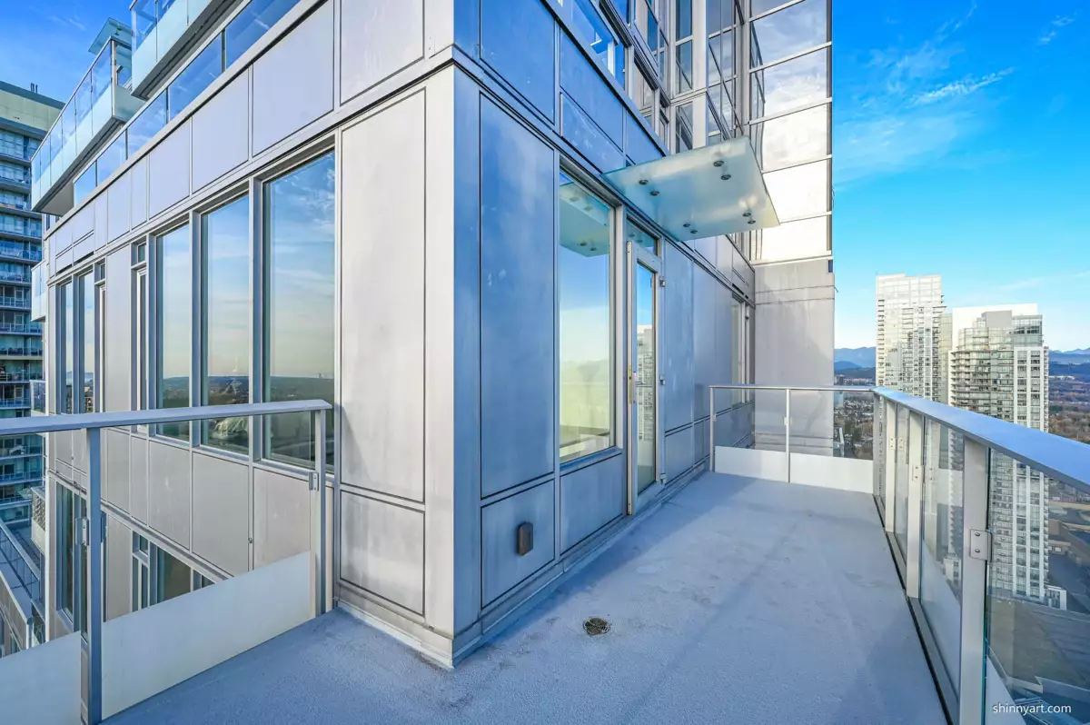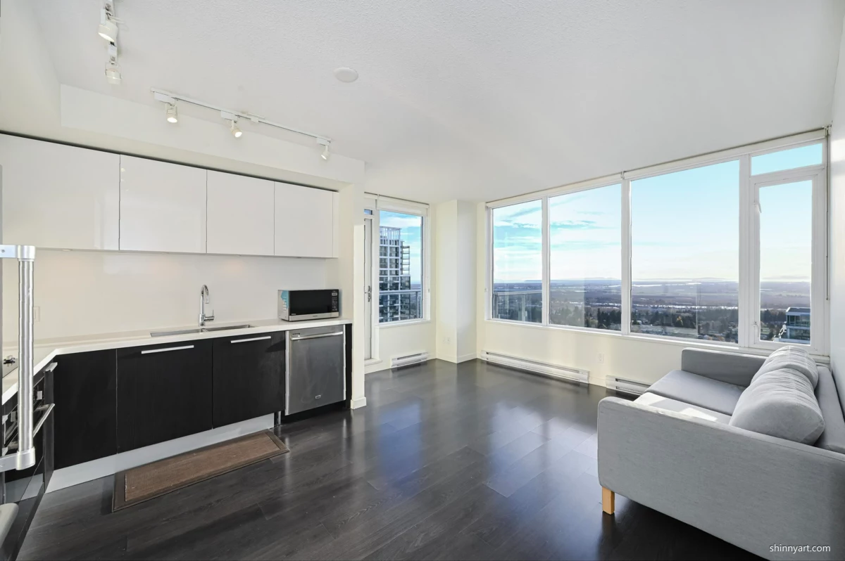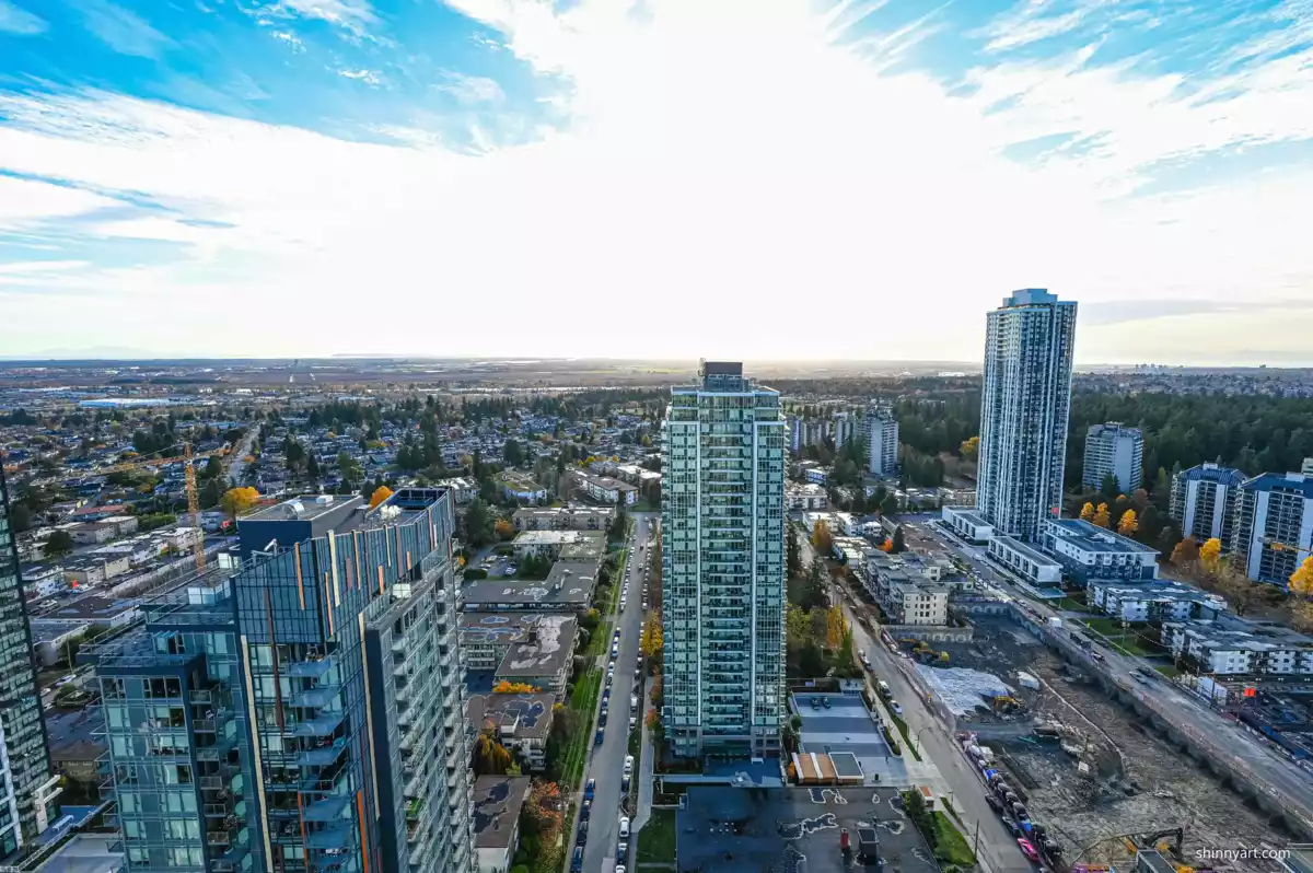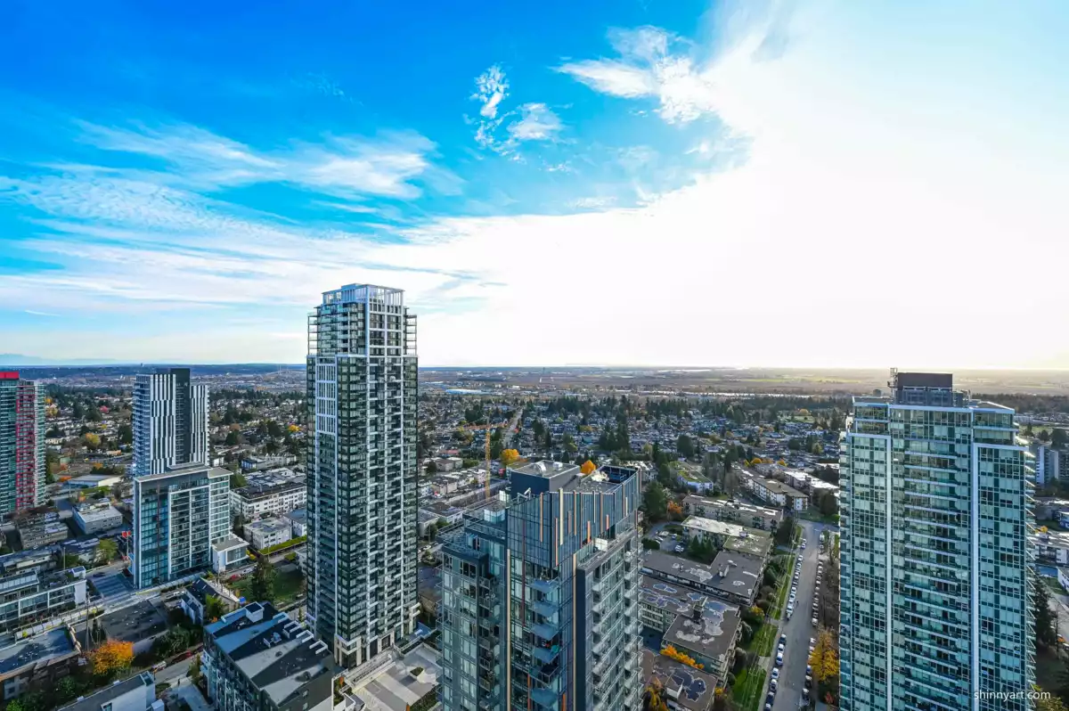 Welcome to Silver by Intracorp, a sought-after high-rise ideally located just steps from Metrotown SkyTrain Station. This bright southeast-facing 2-bedroom corner home sits high on the 39th floor. Positioned on the quiet side of the building, it provides a perfect balance of peaceful living and unbeatable urban convenience. Enjoy easy access to Metropolis at Metrotown, Crystal Mall, shops, dining, parks, and transit-all within a short walk.