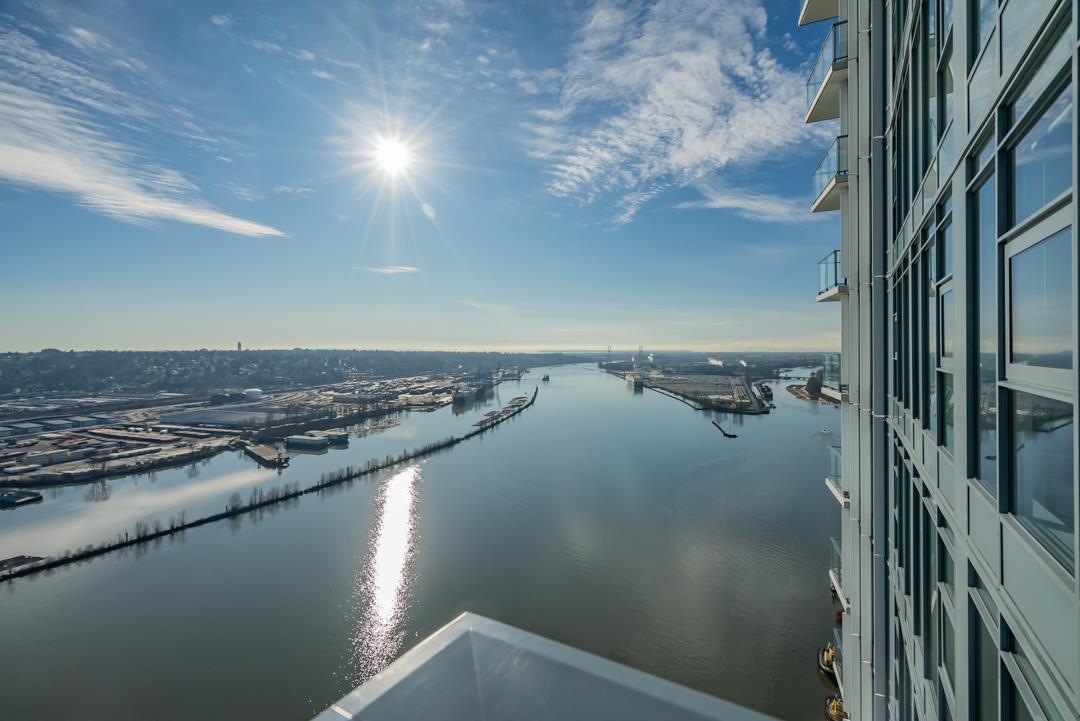 Pier West – Spectacular Corner Unit with Panoramic Unobstructed 270 degree Views of the of the Fraser River, City Lights, & North Shore Mountains! This stunning 2 Bedroom + Den corner home boasts Floor-to-ceiling windows flooding the space with natural light and showcases breathtaking scenery from every room. Enjoy the perfect blend of style and function with a spacious open-concept layout. The chef-inspired kitchen features premium Bosch appliances, sleek cabinetry, and ample storage. Located in New Westminster’s vibrant waterfront district, just steps to shopping, dining, entertainment, SkyTrain, and scenic riverfront walks. Resort-style amenities include: * 24-hour Concierge * Fully Equipped Gym * Sauna & Steam Rooms * Lounge with Kitchen + Outdoor Terrace * Private Dining Room
