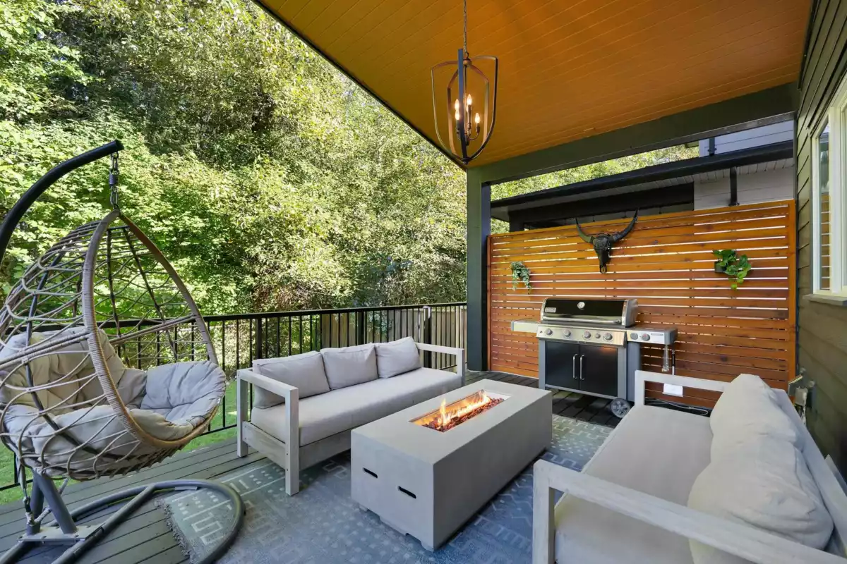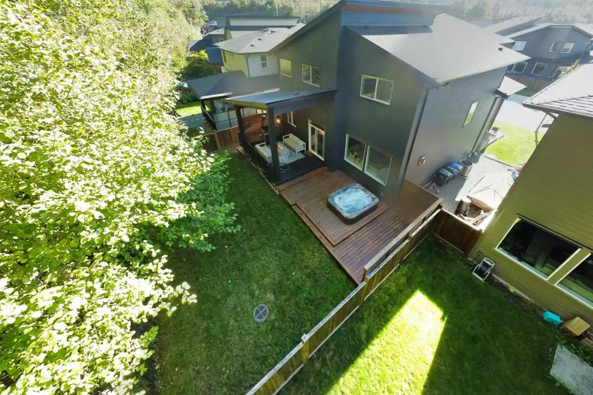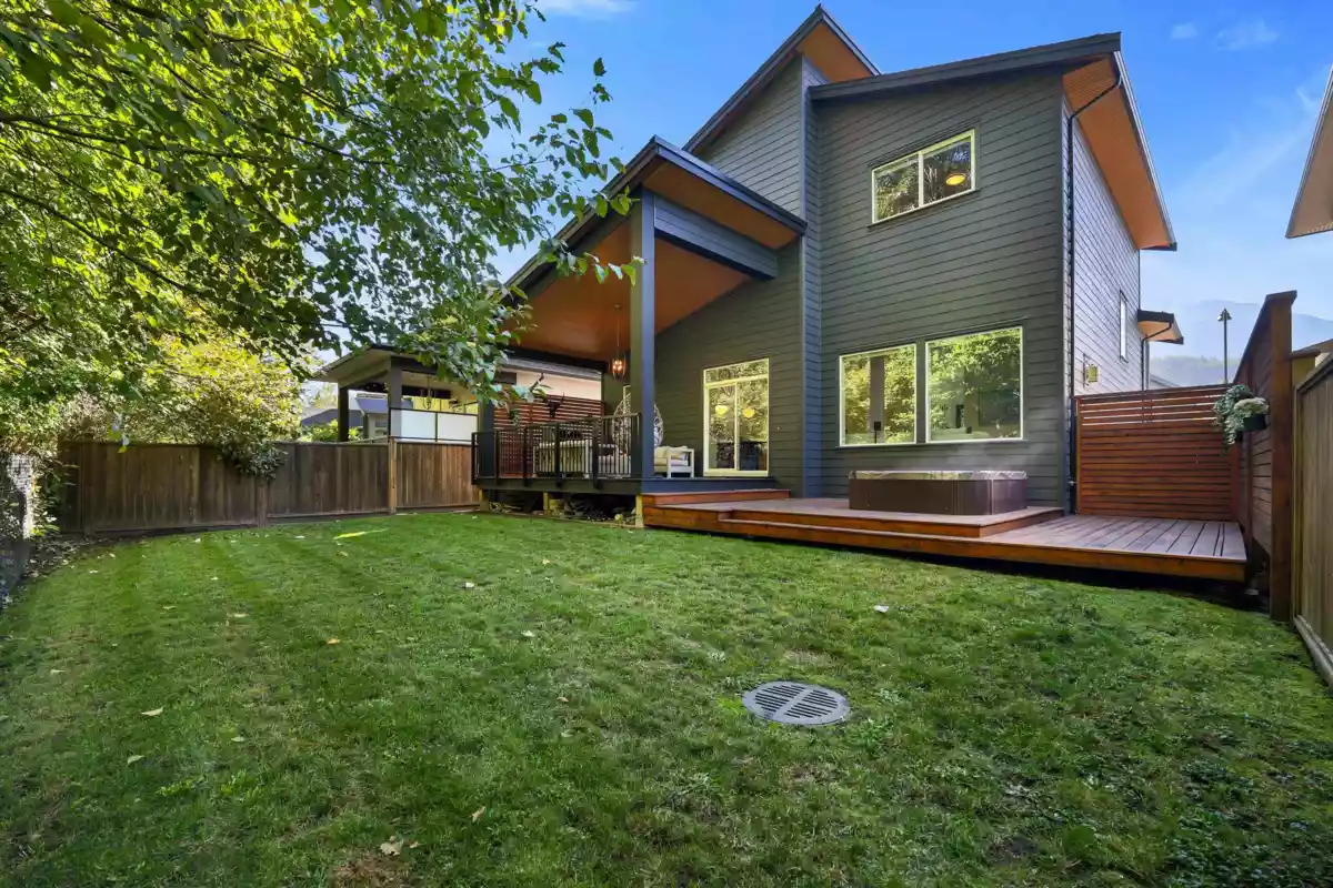 Welcome to Ravenswood, one of Squamish’s most desirable family neighbourhoods, quietly tucked away just steps from Brennan Park, fields, trails, and schools. Designed for privacy and comfort, this modern 4-bed, 2.5-bath home backs onto protected green space, offering a tranquil natural outlook and rare sense of separation. Bright open living spaces, high ceilings, and premium finishes flow throughout. Enjoy evenings on the covered patio, unwind in the hot tub beneath the trees, or gather around the oversized kitchen island after a day outdoors. Smart-home integrations, a widened driveway, upgraded deck, and a custom mud room, wine fridge, and garage storage system make daily life effortless. The perfect balance of connection and calm—this is Squamish living.