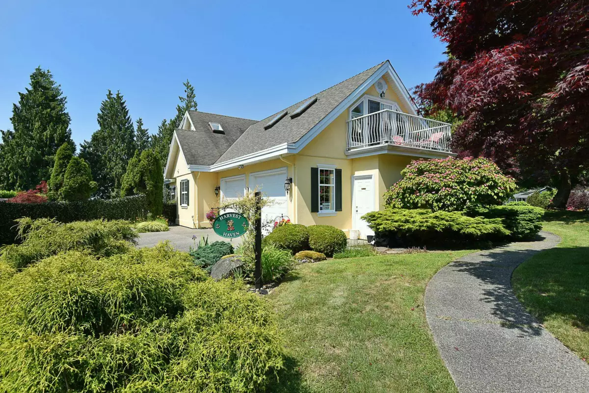 This well-appointed executive view home is in a highly sought after area of quality homes & offers a flexible floorplan. Live entirely on the level rambling main floor with glorious high ceilings, bright open kitchen/dining/familyroom, formal living room, den, ½ bath, large primary bdrm, ensuite & private patios. The upper floor once a popular VRBO with its own entrance can be separate or part of the main home, has two mirrored bdrms, a shared balcony & each their own full bath. A large flex/hobby room & mini self-serve bar is perfect for guests/family to grab a coffee in the AM. Enjoy the ocean views, breathtaking gardens, 5 gas fireplaces, hot tub, chef’s kitchen, double garage, & being only minutes to the famous Bonniebrook sandy beach! This home is even more impressive in person!