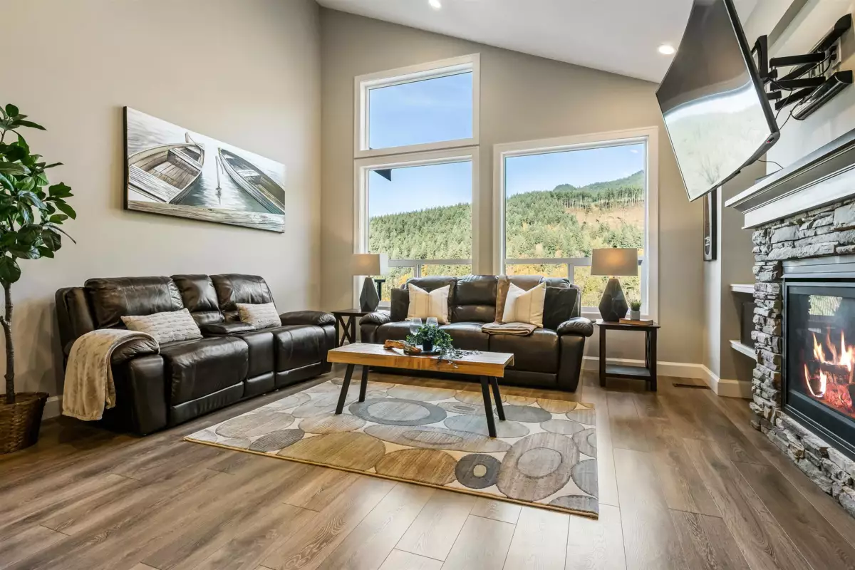 Harrison Highlands’ hidden gem! Stunning 5 Bed 4 Bath RANCHER with Loft and Walk-Out Basement w/ nearly 4,000 sqft nestled against the mountains with breathtaking views in private gated cul-de-sac. MAIN-FLOOR LIVING w/ vaulted ceilings, GAS F/P, upgraded kitchen w/ GAS RANGE, large island, and access to covered deck with panoramic views. Primary has vaulted ceilings, ensuite w/ heated floors, W/I SHOWER, double sinks, soaker tub, W/I closet & deck access. Upstairs offers 2 bedrooms, a full bath, and a bright large bonus room. VERSATILE WALK-OUT BASEMENT has 2 bedrooms, a den, and a HUGE REC ROOM w/ access to SALT WATER HOT TUB great for guests or suite. Double garage, long driveway, low-maintenance yard & A/C HEAT PUMP. Minutes from Sandpiper Golf Course, Harrison Hot Springs & Hemlock.