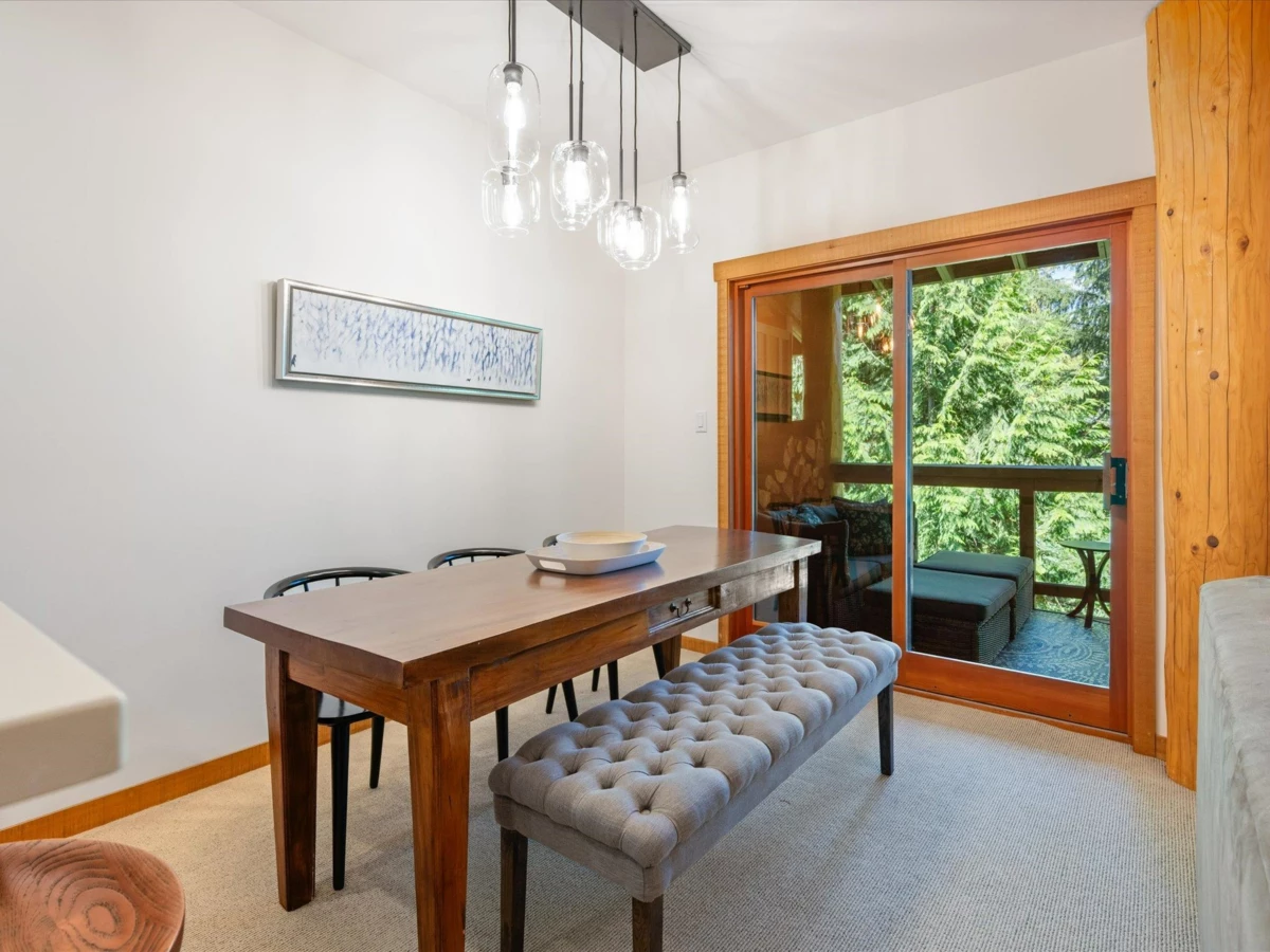 Ski-in, ski-out! This beautifully maintained townhome has an enviable position in Taluswood, a quiet neighborhood with outdoor pool and hot tub located directly beside Whistler Mountain slopes. At just over 1,400 sq.ft., this is the largest two bedroom available in Whistler. Impressive timber posts and beams frame a fresh open living area with vaulted ceilings and a wood burning fireplace. Two spacious bedrooms are located on the upper level and feature full ensuite bathrooms. Some of the many recent updates include a new furnace, washer/dryer, furniture refresh, and painting throughout. A bonus powder room, private covered deck, ample storage, and attached garage complete the package. This unique property has short-term rental zoning however it has never been rented. Come have a look!