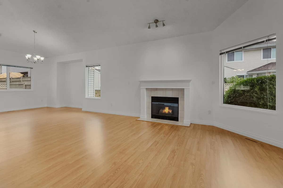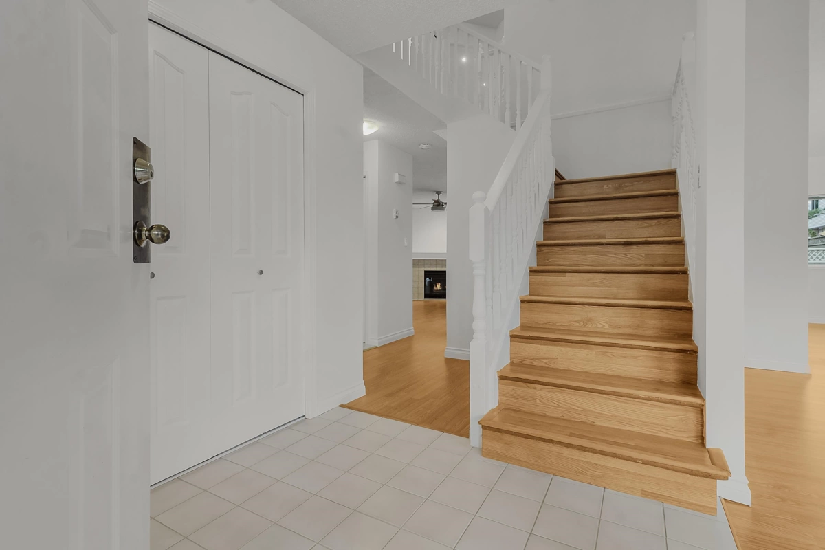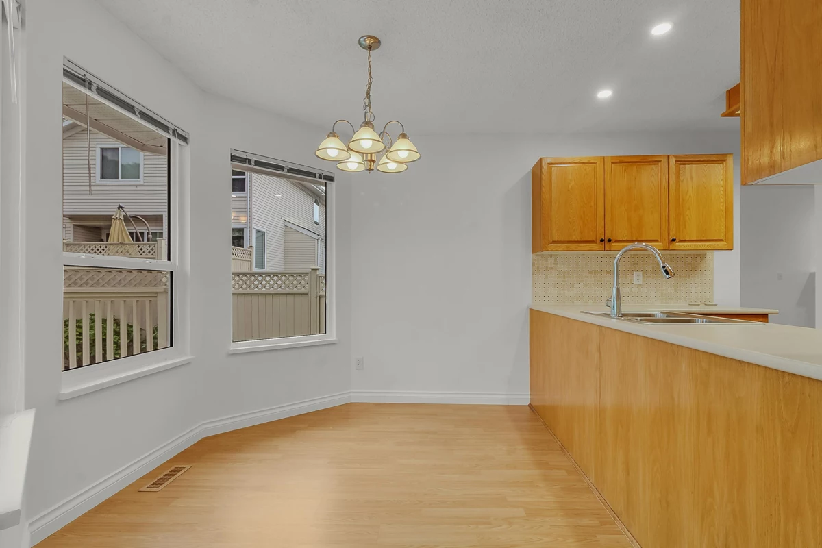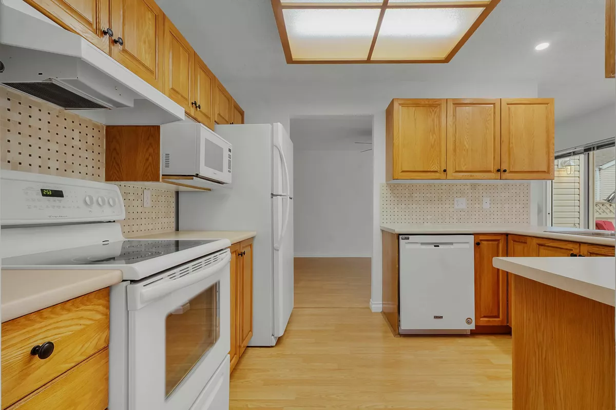 This 2 storey 3-bedroom, 3-bath end unit is one of the largest homes in the complex and offers a thoughtfully designed layout perfect for comfortable family living. It features vaulted ceilings in the living room, skylights that fill the space with natural light, and two cozy gas fireplaces. The spacious family room adds extra living space, while the large master suite boasts a luxurious ensuite with a soaker tub and separate shower. Additional highlights include a private fenced yard, double garage, and a built-in security system. With its exceptional features and generous layout, this home is a rare find.