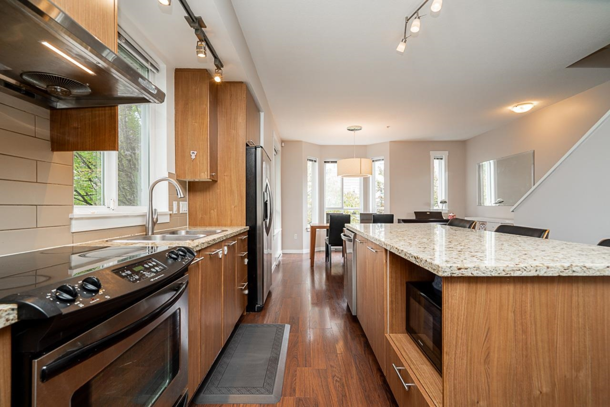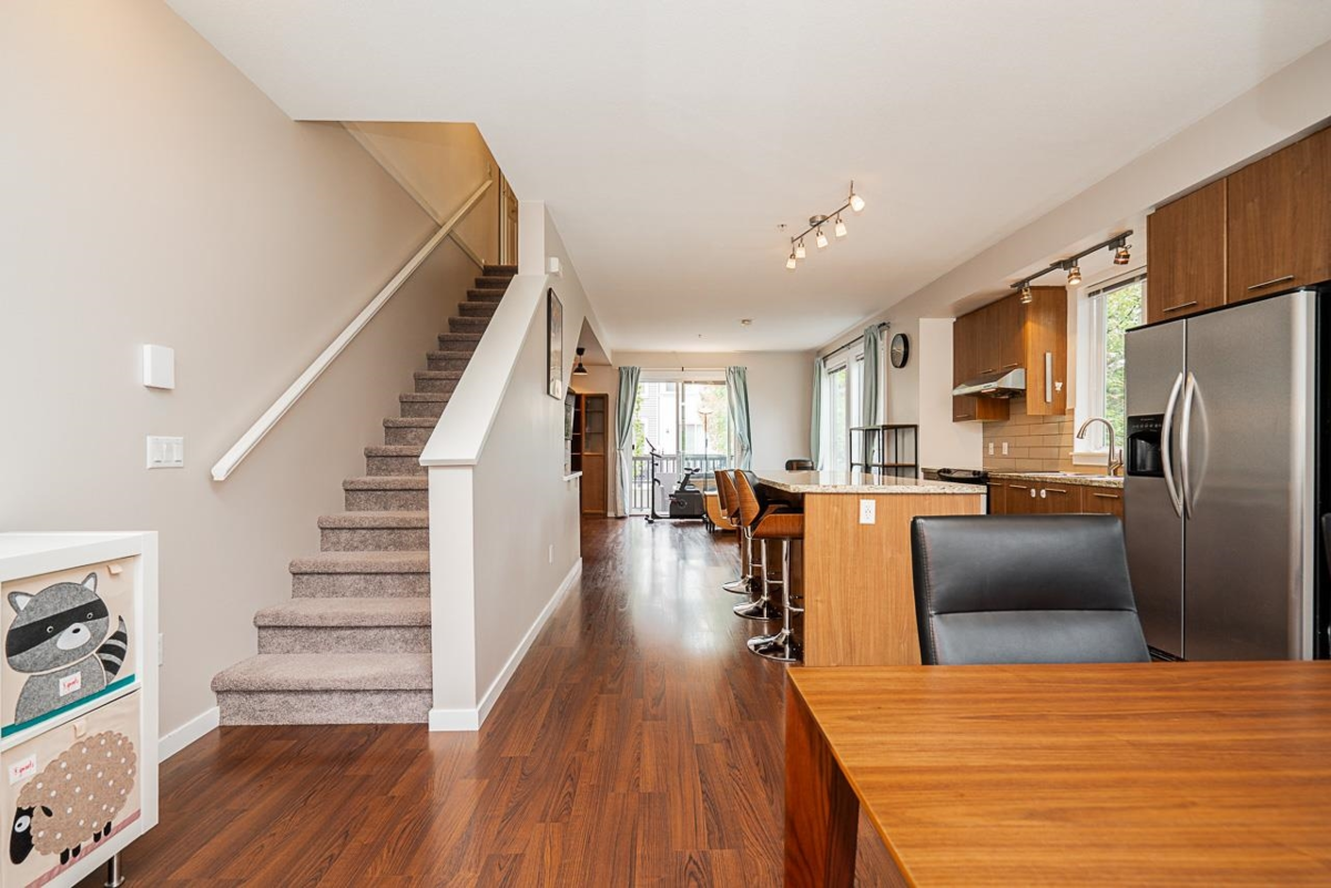Bright and Rarely Available End Unit at Links by Mosaic! This spacious 3-bed, 3-bath home features windows on three sides for an abundance of natural light. The kitchen offers granite countertops, stainless steel appliances, and very solid finishes throughout. Upper level laminate flooring was completed in Sept 2025 and a new washer/dryer tower and dishwasher were purchased in Dec 2024. Ideally situated within the complex—quiet yet just steps to Fremont Village with Save-On-Foods, Costco, Home Depot, Walmart, and more. Walking distance to schools: Blakeburn Elementary, Terry Fox Secondary, and Archbishop Carney. NEW ROOF DONE in June 2025. A move-in-ready home in a highly sought-after location!