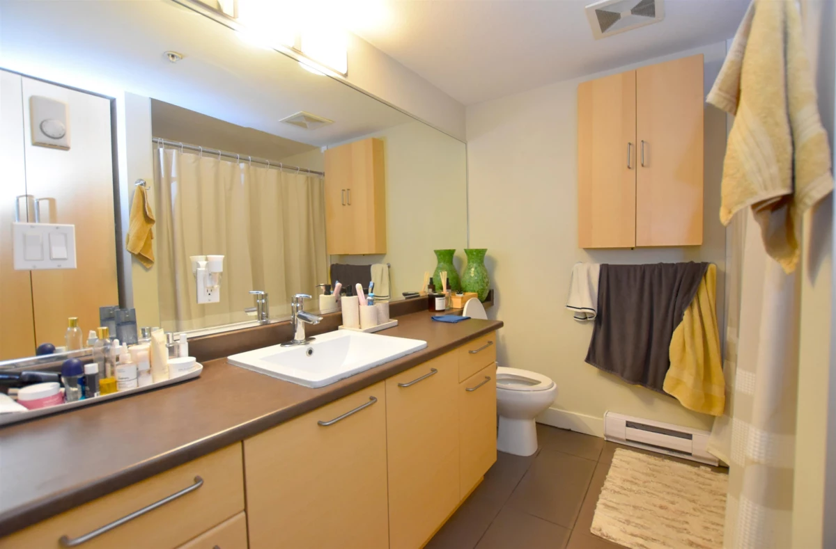 Move in ready home is conveniently located across Nesters Market and Shoppers Drug Mart, with quick access to Gateway station, Central City and SFU. This 2 bedroom 2 bathroom East facing top floor unit features a bright and spacious layout, high ceilings, stainless steel appliances, granite counter tops and a large balcony perfect for BBQ. Unit includes 1 parking one a storage locker. Generous amenities include a gym, club house, pool table, hot tub and sauna. Measurements approximate & info not guaranteed, buyers to verify if deemed important.