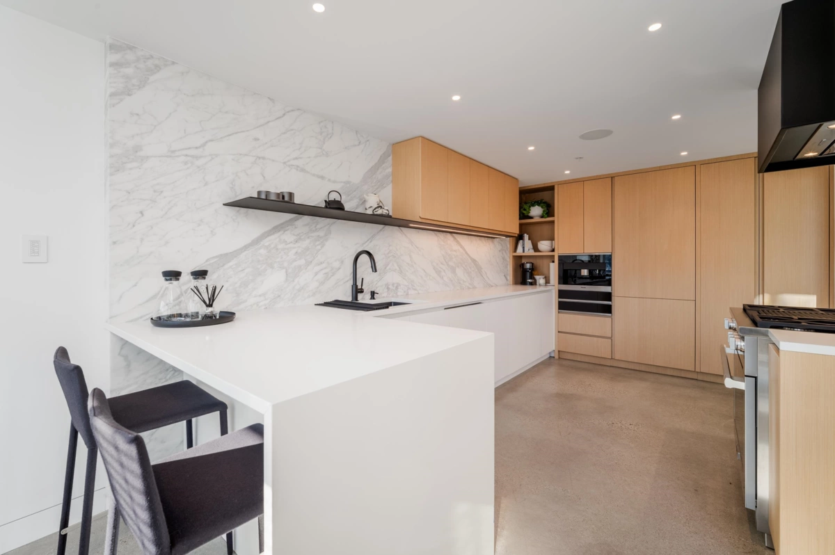MODERN ART MEETS WARM, LUXURY LIVING: 2 LEVEL PENTHOUSE in West Point Grey top floor, One-of-a-kind 2 bed, 3 bath, 1,675 sq. ft. TROPHY HOME! Light, welcoming dramatic floor to ceiling windows & soaring ceilings, has seen a COMPLETE (2021 @ $1.37M) transformation to a modern sanctuary (designed by Shift), combining a serene palette with a stylish aesthetic, & the latest in home tech. High end finish & clever seamless storage solutions throughout. Outstanding features include custom oak veneer cabinetry, marble walls & countertops in kitchen & bathrooms, top of the line Miele appliances, motorized blinds, ethanol fireplace, ribbon & recessed lighting, exceptional millwork, & more. Surrounded by best schools, trails, & shops. Showings by appointment. Open house: Sun, Nov 30, 1 to 2:30 pm.