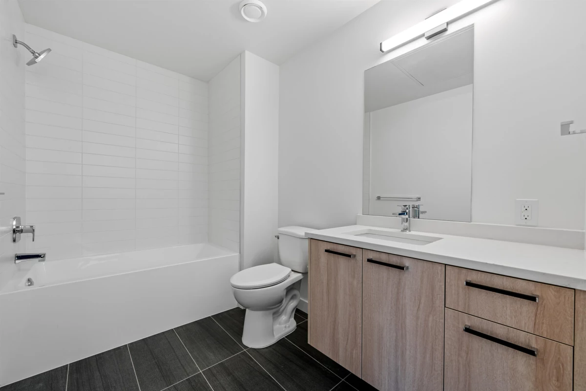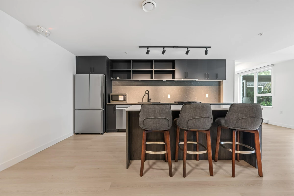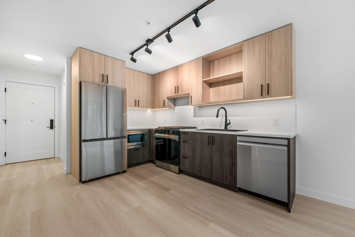 Anchor by Bold Properties in Port Moody. This brand-new junior 2 bedroom, 1 bathroom home features a bright open-concept layout with 9' ceilings. A nicely appointed kitchen with two tone cabinets, gas stove, quartz counters and stainless appliances. A great layout with separated bedrooms and ample storage space. Building amenities include a gym, multipurpose lounge, rooftop deck with stunning views and outdoor kitchen, courtyards with playground, dog wash station, EV parking & Carshare. A hop, skip and a jump to Brewer's Row, Rocky Point Park Evergreen SkyTrain, and elementary and high schools. This is the perfect place to call home. 1 Parking and 1 Locker Included.